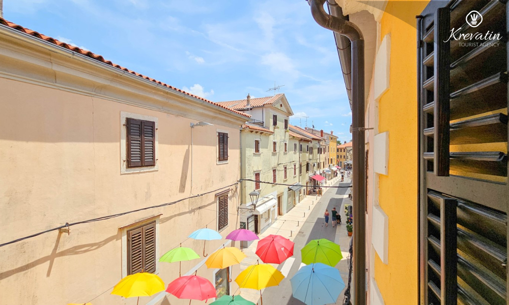 Situato al secondo piano di un'incantevole casa nel centro storico di Cittanova, questo appartamento per due persone è ideale per chi desidera unire l'autentica atmosfera mediterranea alla vicinanza al mare. A pochi passi dalla passeggiata lungomare, la vista dalla camera da letto conduce direttamente a una strada colorata e piena di ombrelloni, perfetta per rilassarsi e trovare ispirazione.