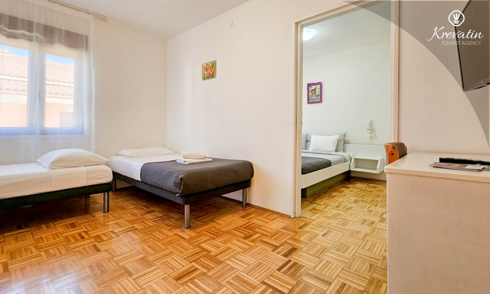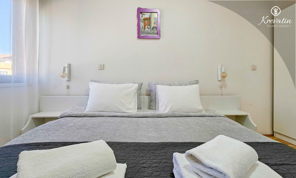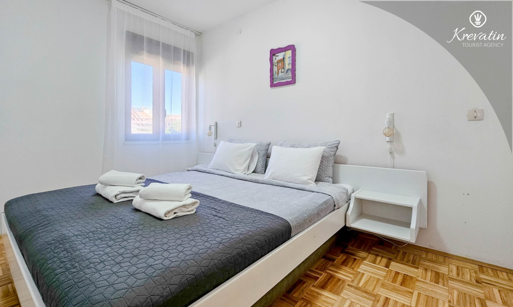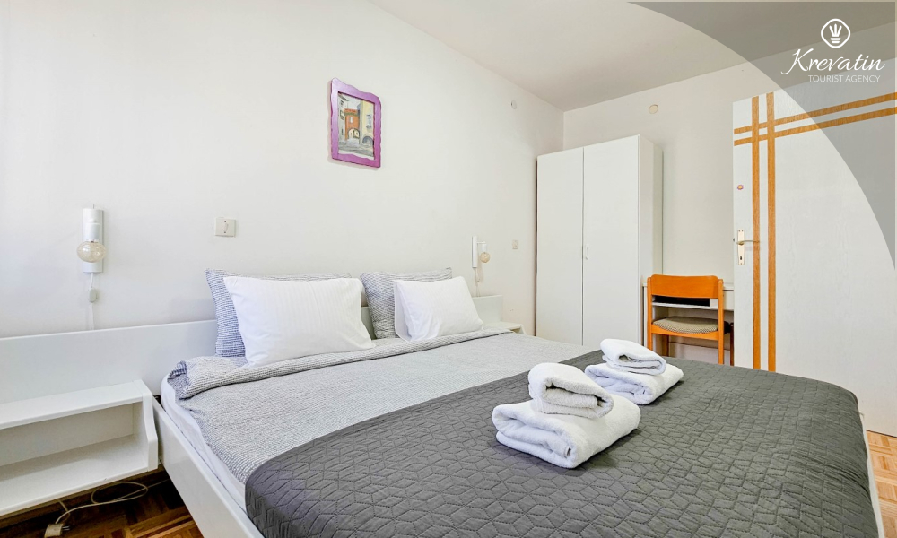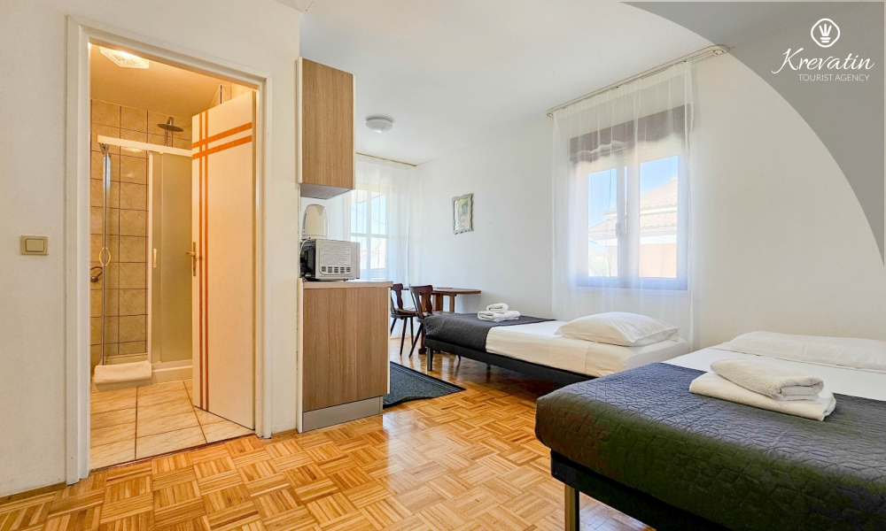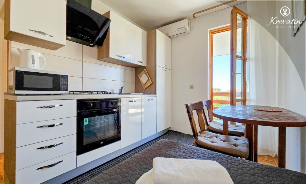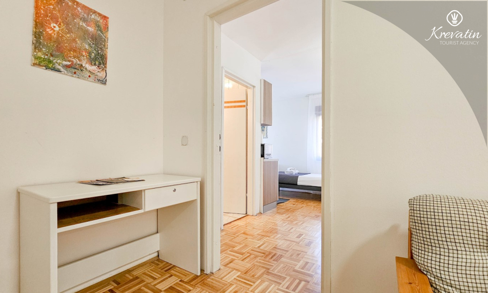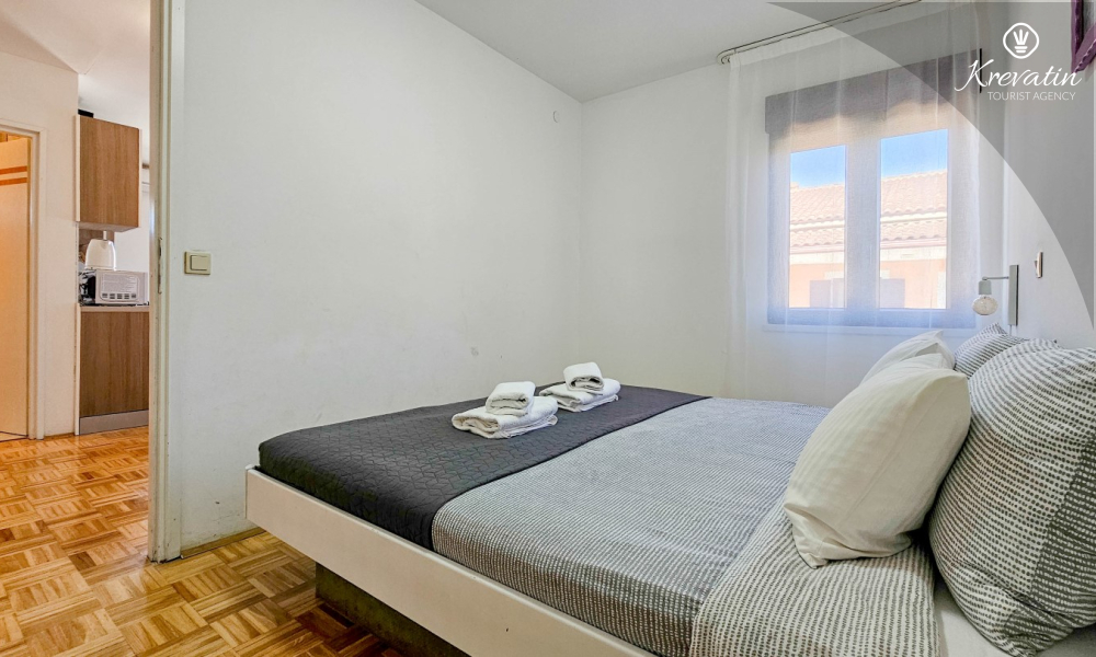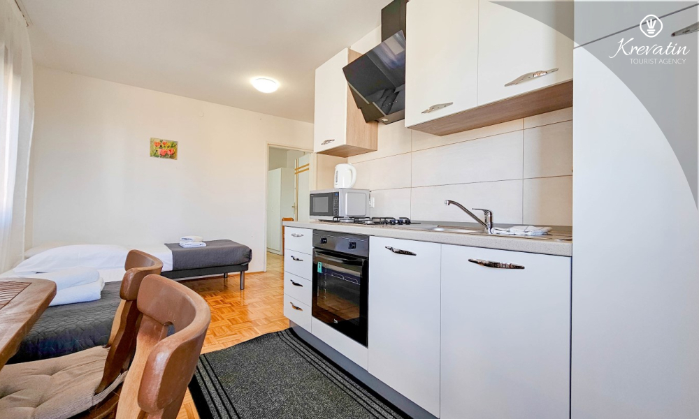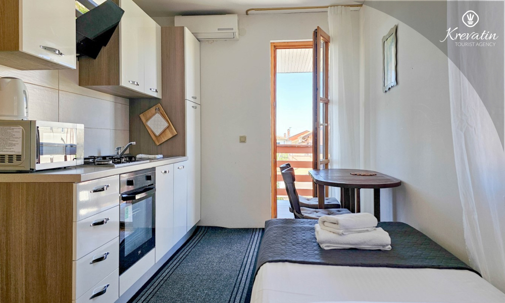 È composto da una camera da letto con letto matrimoniale, una zona cucina con un letto aggiuntivo e un bagno con doccia. La cucina è attrezzata con gli utensili di base per preparare i pasti e c'è anche un balcone con vista sulla città, il luogo ideale per un caffè mattutino o per rilassarsi la sera.