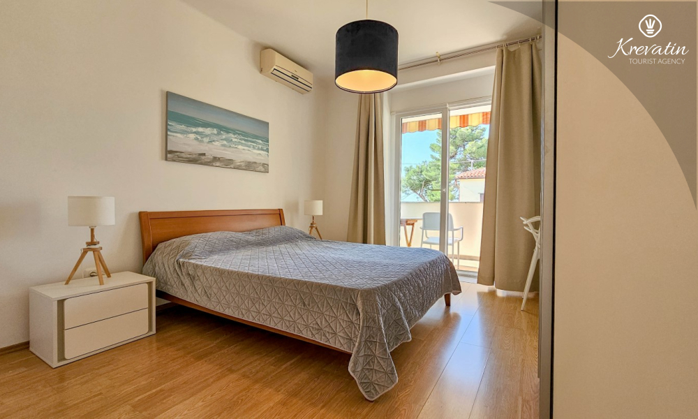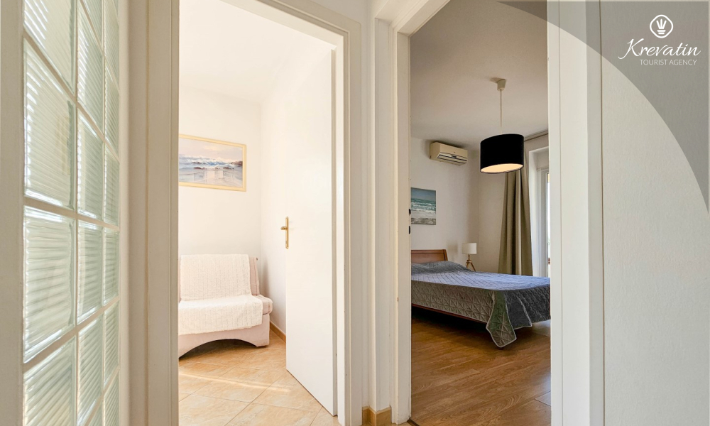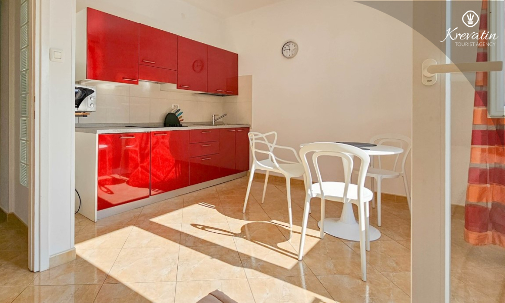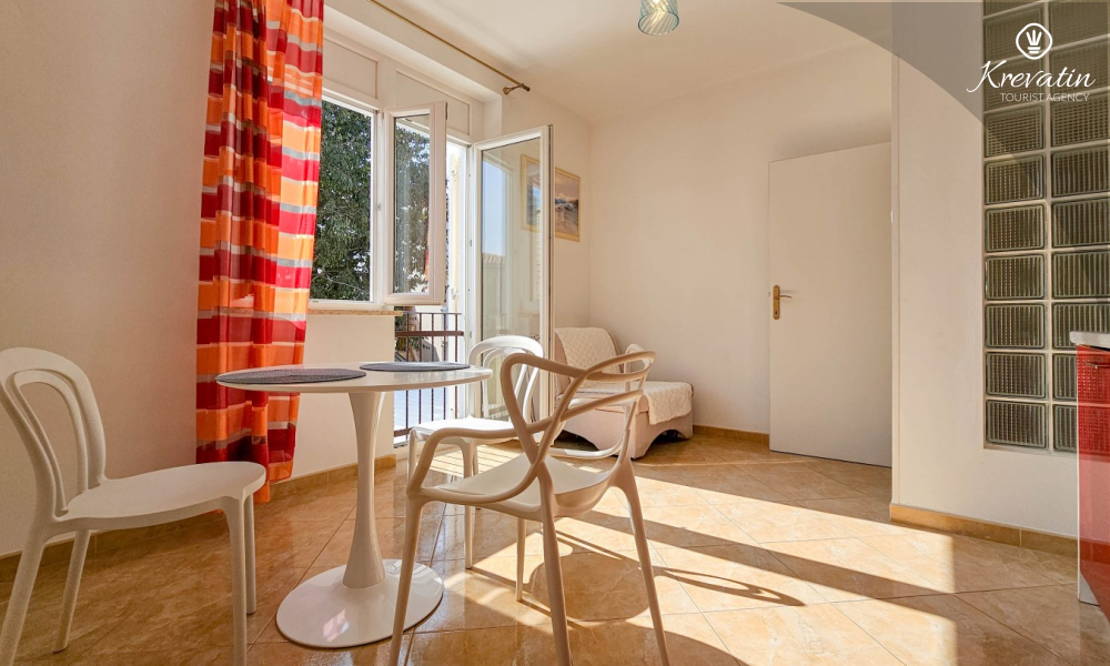 Situato al primo piano di una casa familiare, è composto da una camera da letto con letto matrimoniale, una cucina funzionale dotata di comfort di base e un bagno con doccia e WC. Sul balcone, arredato con tavolo e sedie, potrete gustare il caffè del mattino o un bicchiere di vino la sera, ammirando la vista sulla tranquillità dei dintorni.