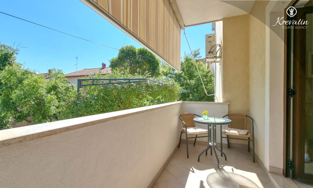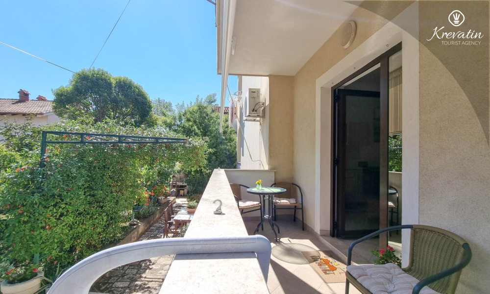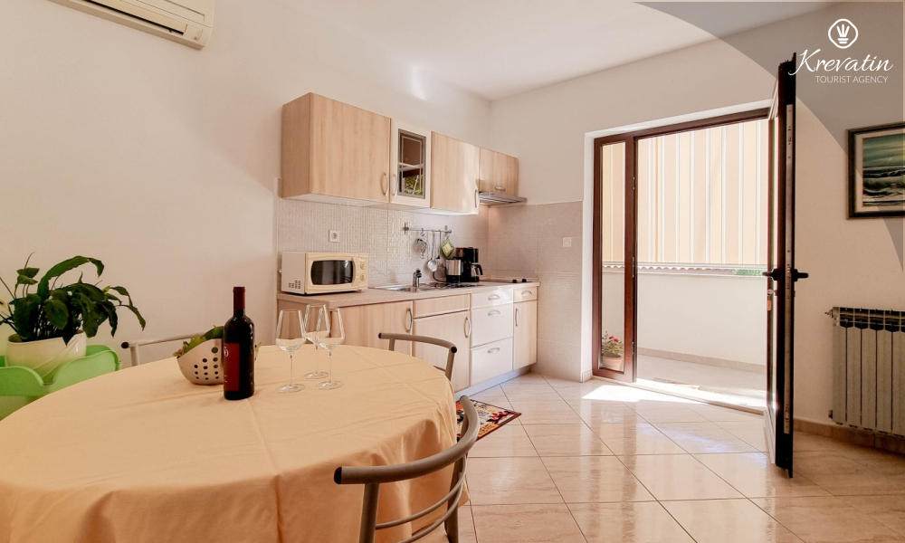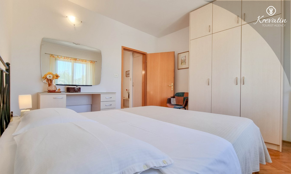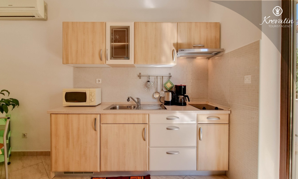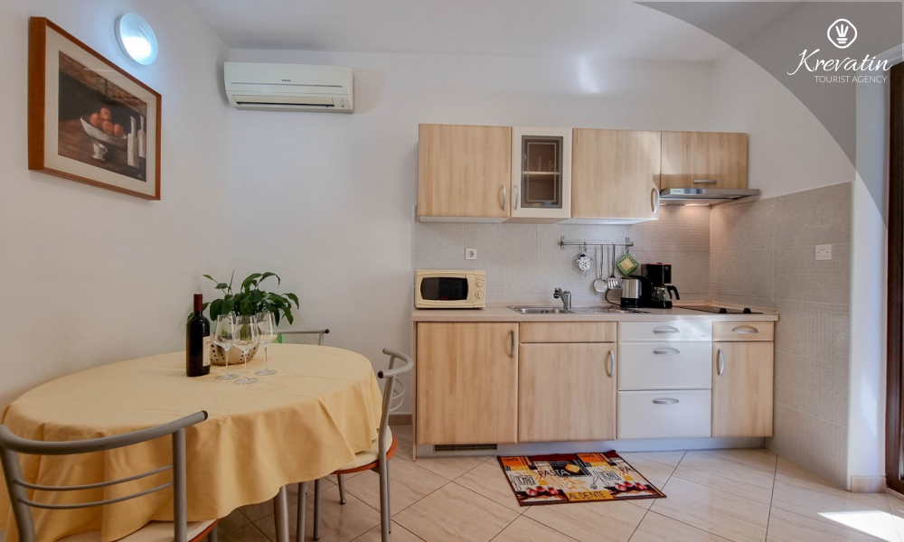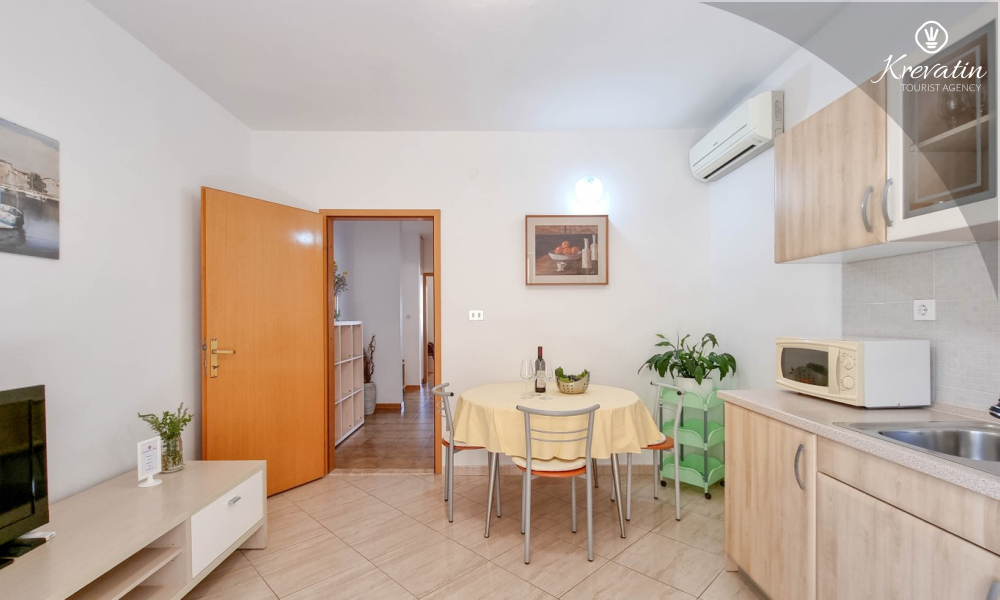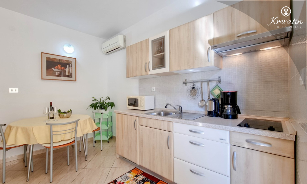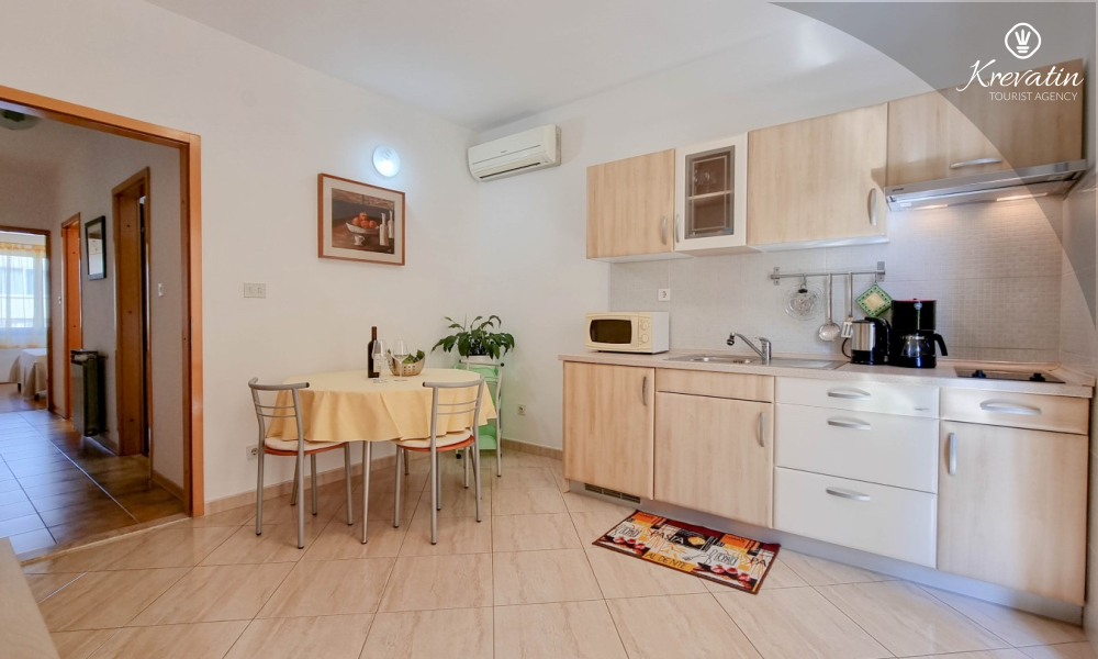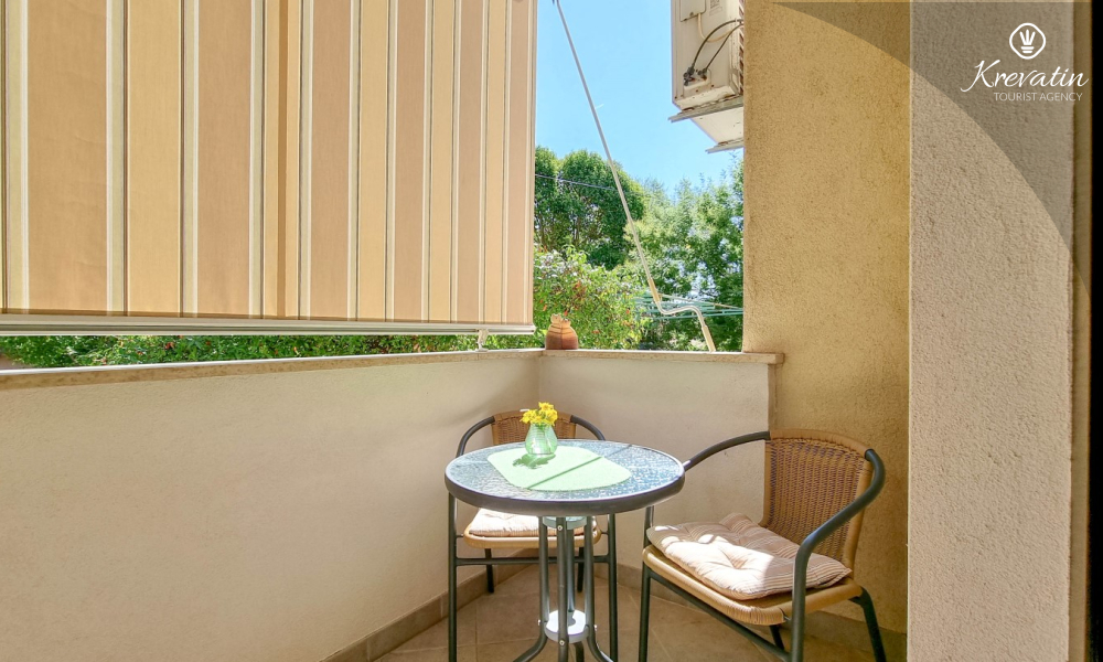 Questo appartamento per 2 fino a 3 persone, situato al piano terra, è composto da due camere da letto e una cucina. La cucina è attrezzata con piano cottura elettrico, forno a microonde, frigorifero e macchina per il caffè. C'è anche un bagno con vasca e una terrazza con mobili. SAT-TV, aria condizionata, WLAN, lenzuola e asciugamani sono inclusi nel prezzo. Animali domestici non sono ammessi.
