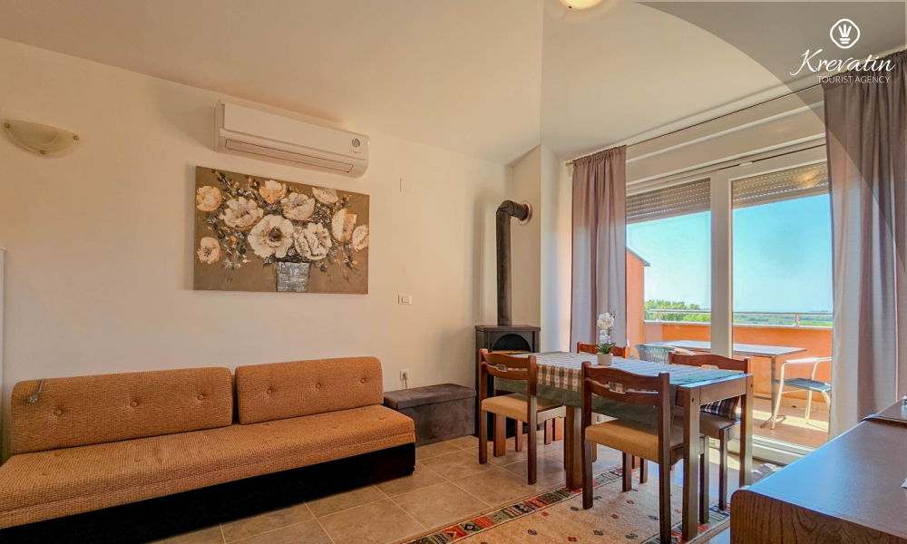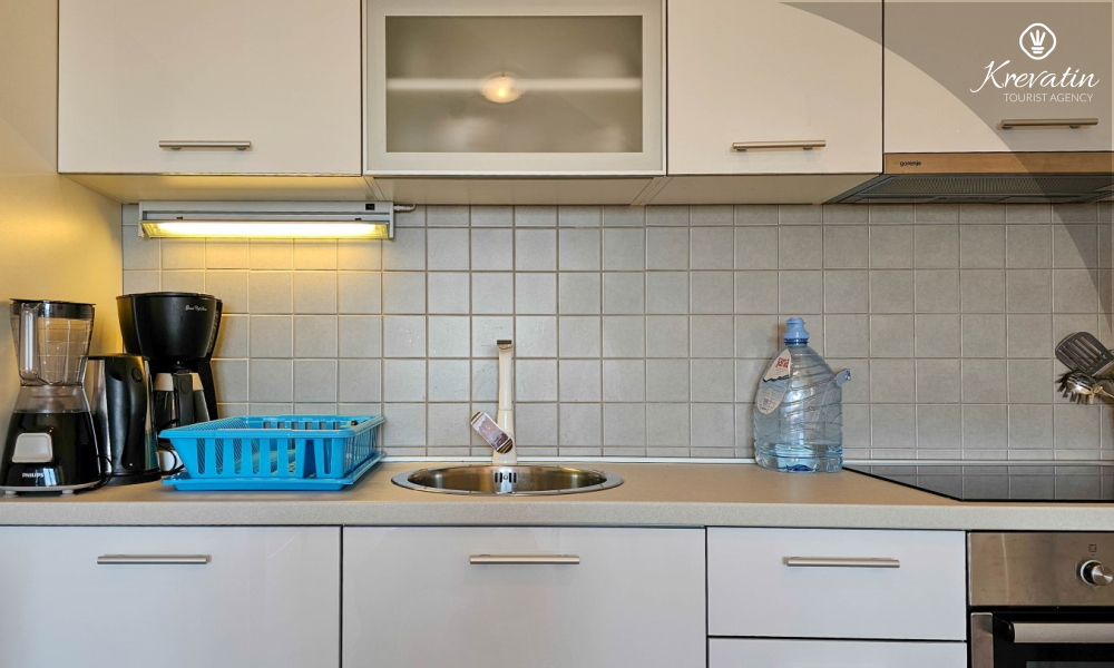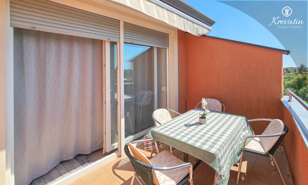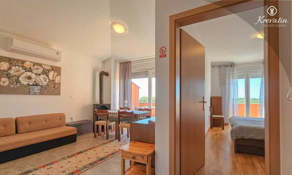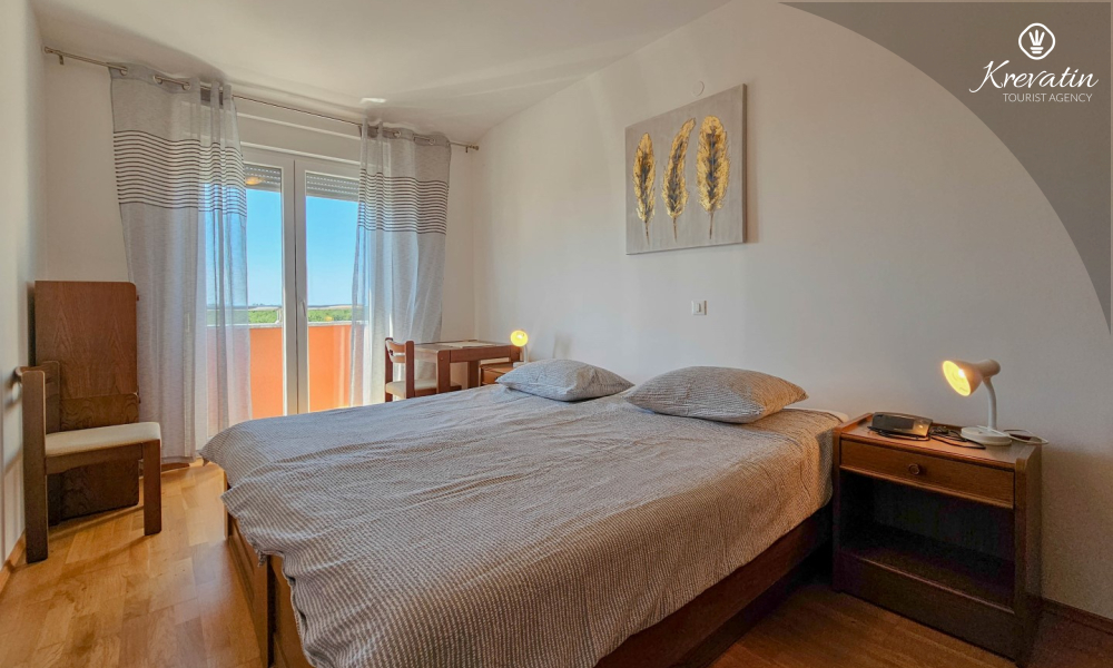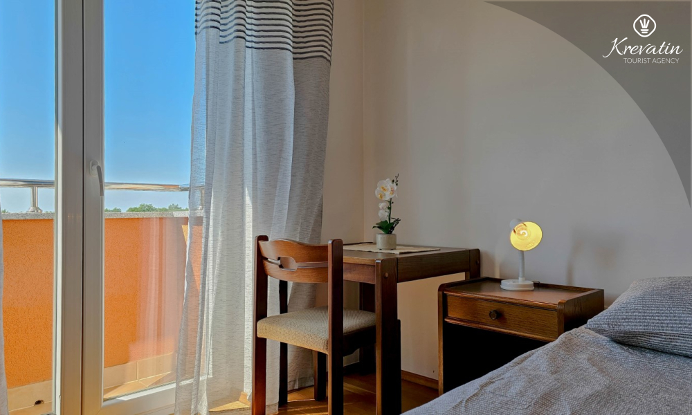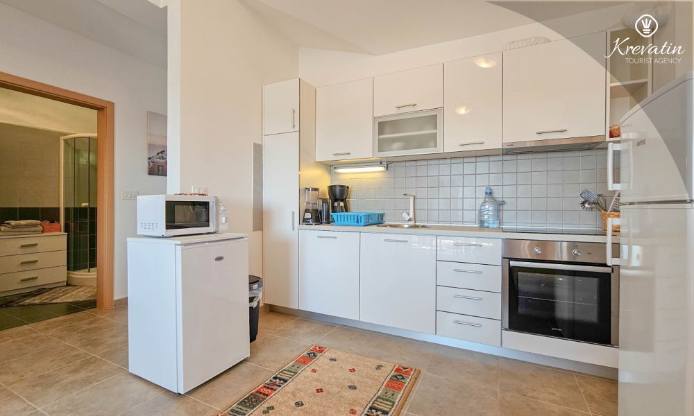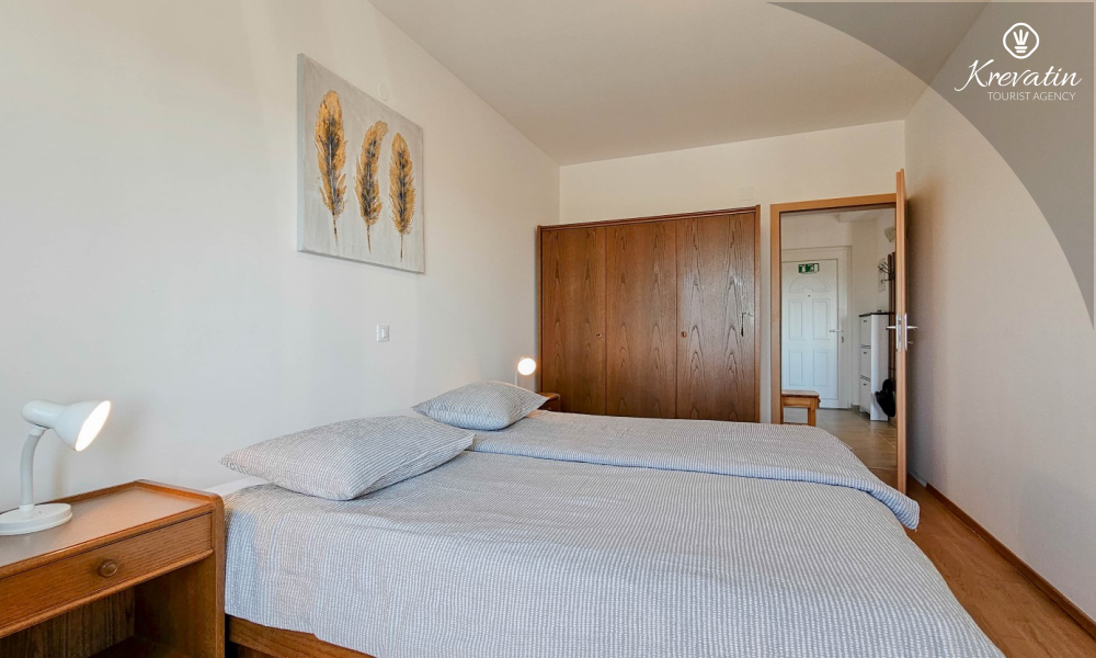 Questo appartamento da 2 a 4 persone si trova al terzo piano ed è composto da una camera da letto, un soggiorno con divano letto e una cucina. La cucina è dotata di piano cottura elettrico, forno, frigorifero e macchina per il caffè. Inoltre, c'è un bagno con doccia e WC e un bel balcone con mobili. SAT-TV, aria condizionata, lenzuola e asciugamani sono inclusi nel prezzo.
