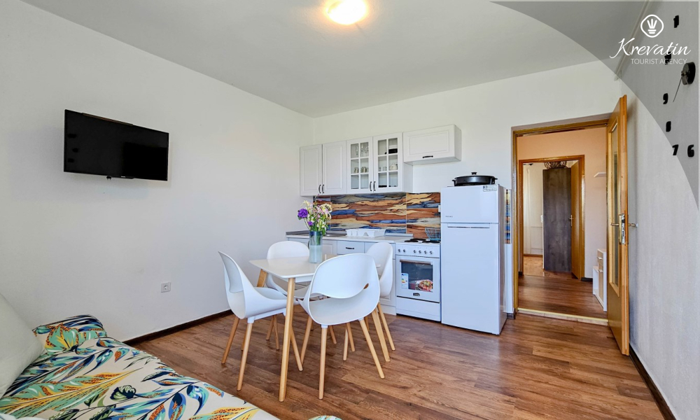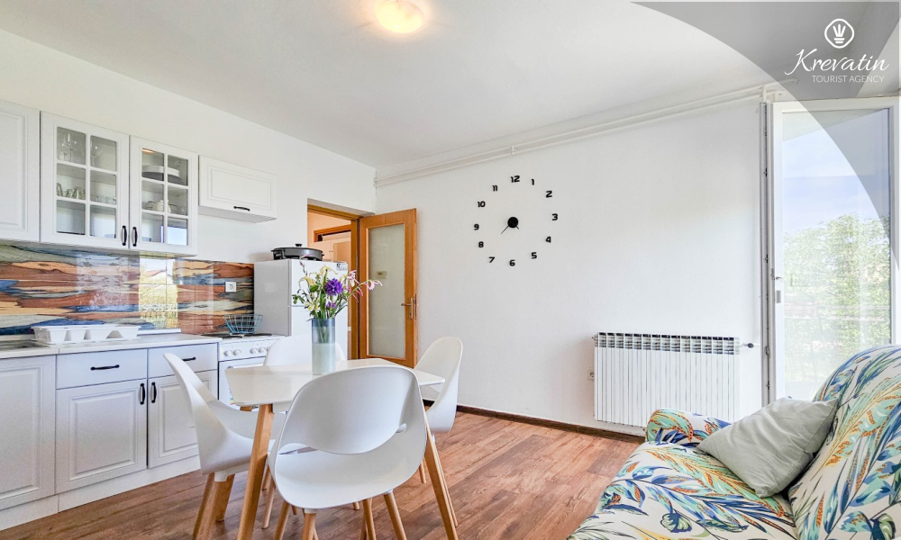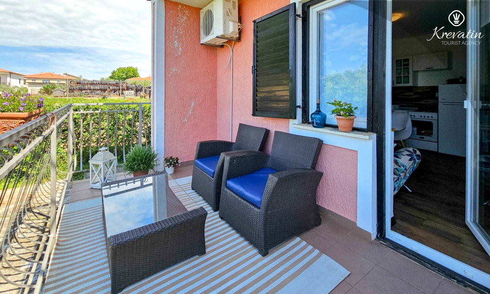 Questo confortevole appartamento per 2 persone si trova al piano rialzato di una casa privata, in una posizione tranquilla a circa 2,5 km dal centro di Cittanova e dalle spiagge. È ideale per gli ospiti che desiderano combinare il relax in silenzio con la possibilità di raggiungere rapidamente il mare e la città.