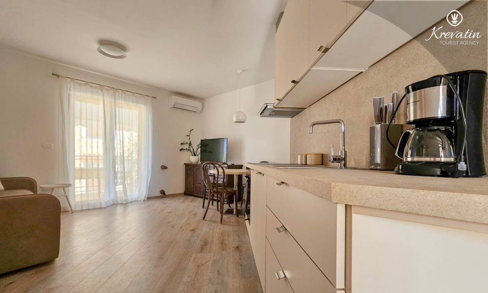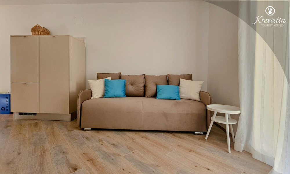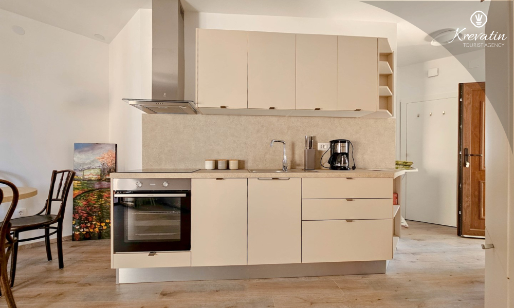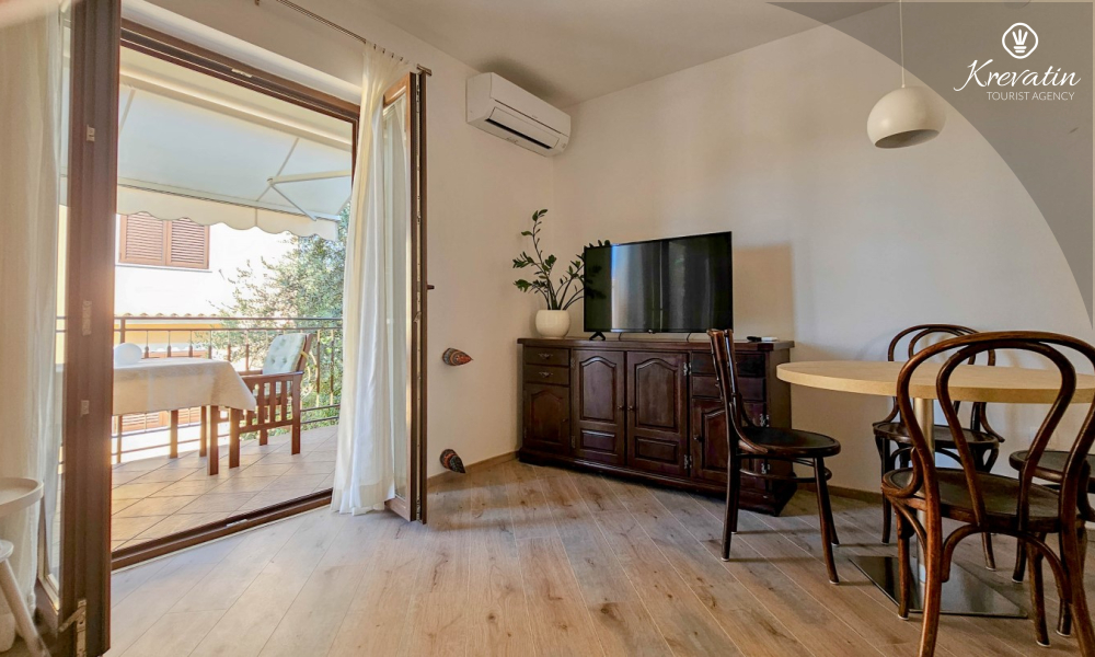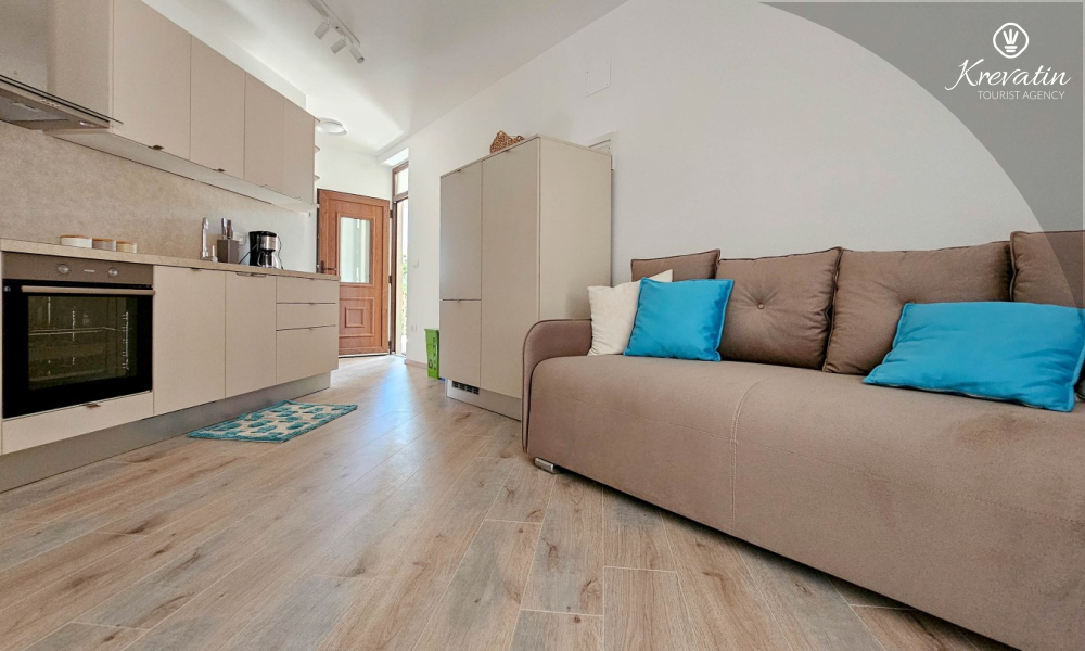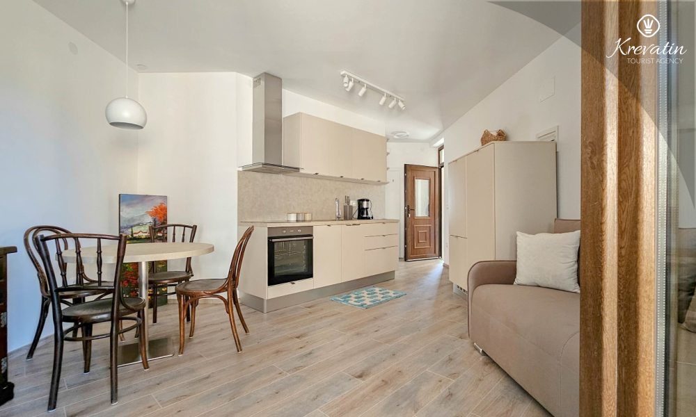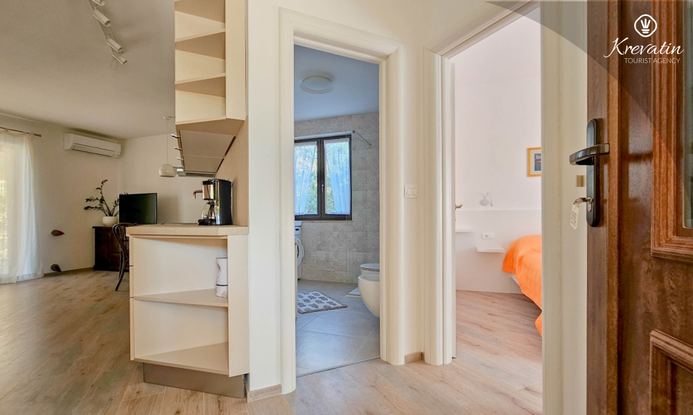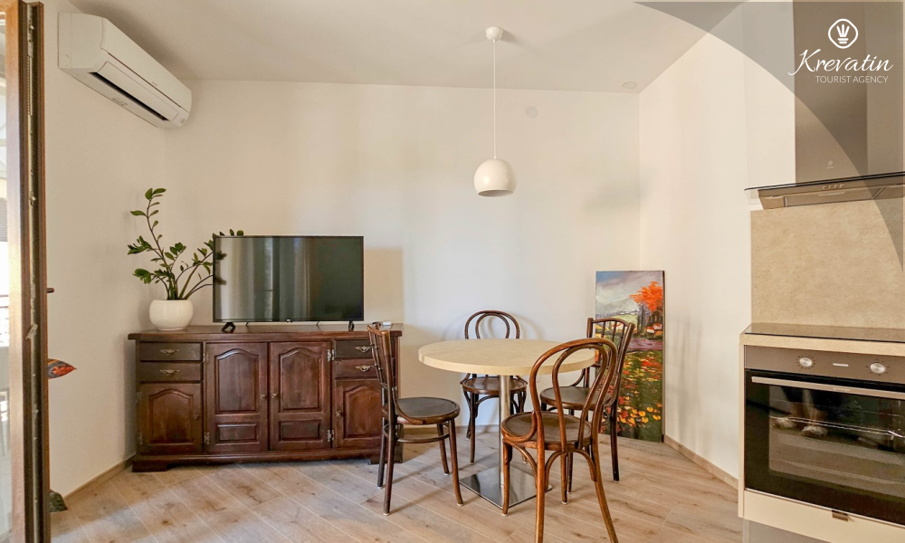 L'appartamento si trova al primo piano di una casa familiare e offre una sistemazione confortevole per due persone.