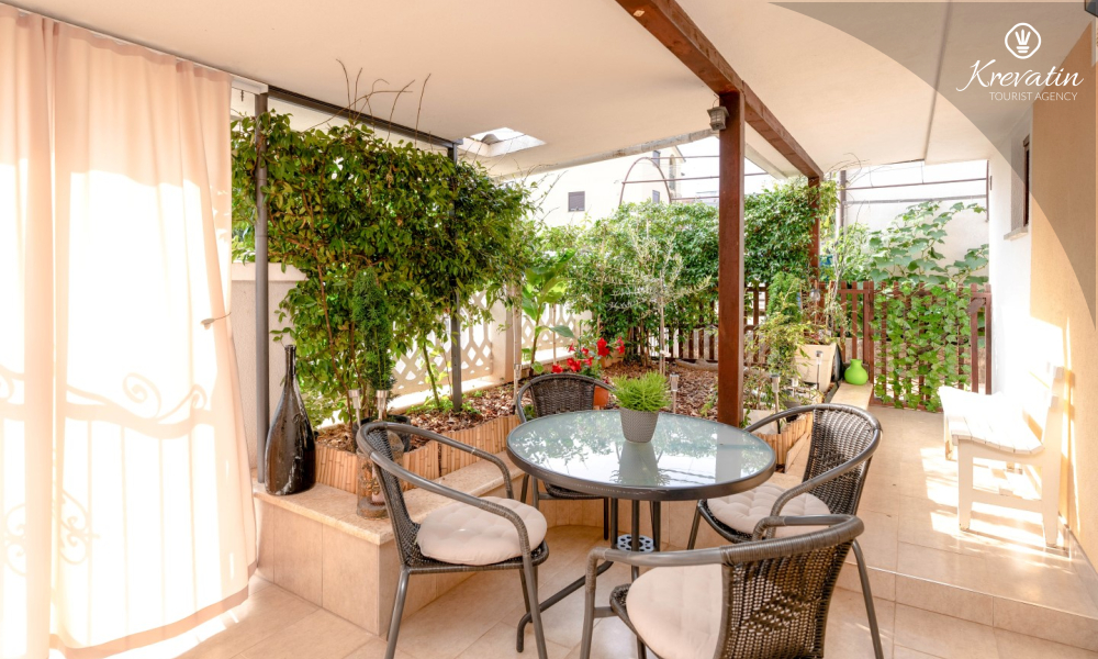 L'appartamento Adriatic si trova in una zona tranquilla di Cittanova ed è ideale per le coppie che desiderano godersi un ambiente tranquillo. Si trova al piano terra, il che lo rende facilmente raggiungibile e comodo.