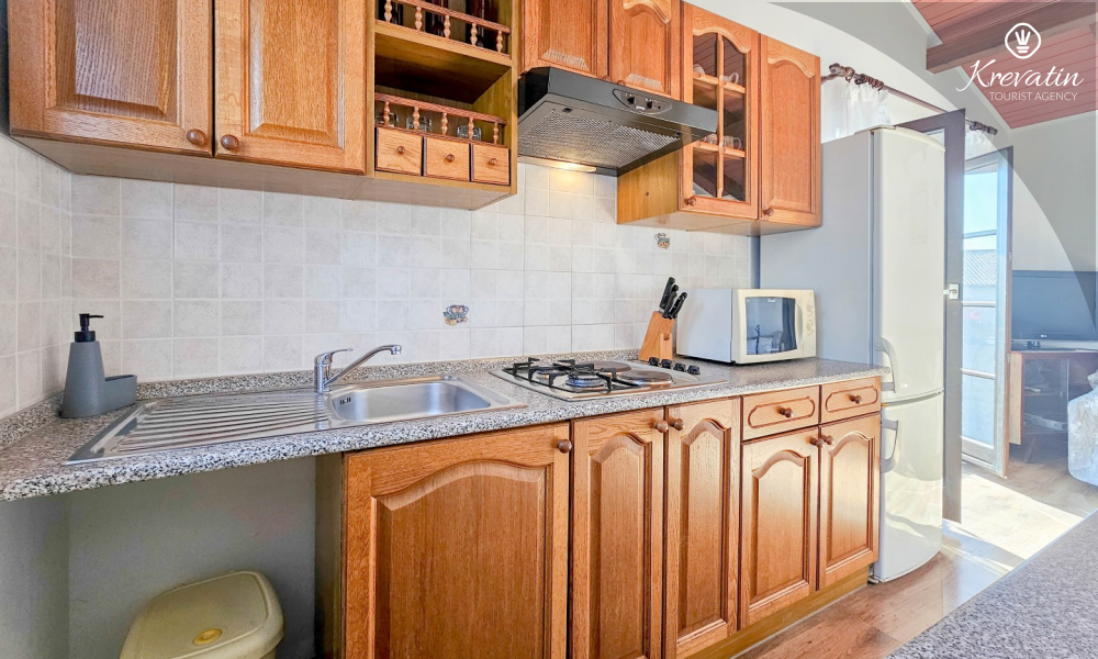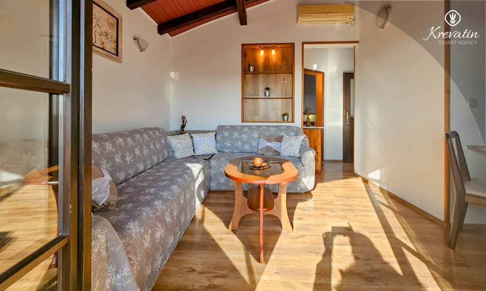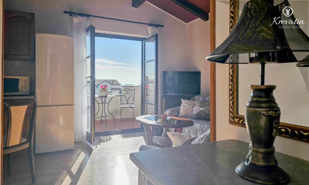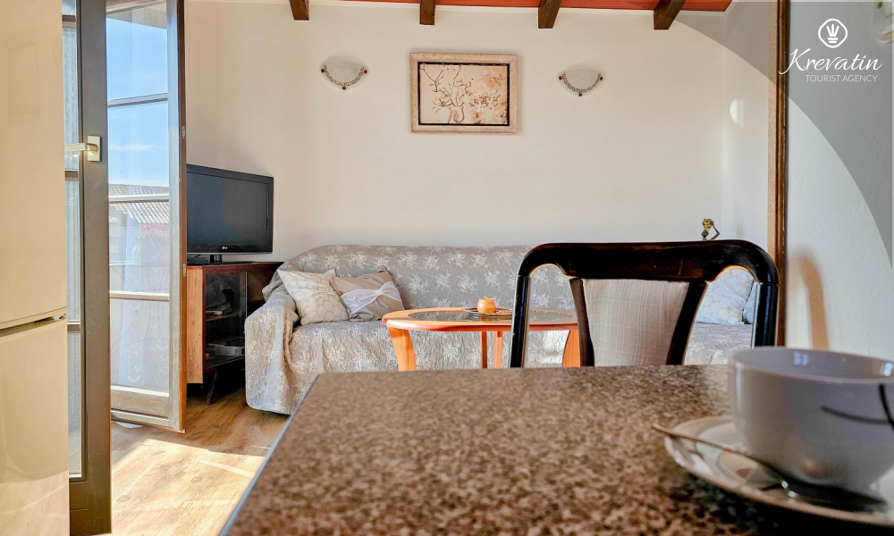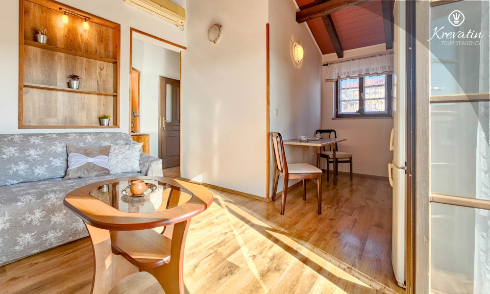 Il nostro appartamento può ospitare fino a due persone e offre tutto il necessario per un piacevole soggiorno. La cucina attrezzata vi permette di preparare i vostri pasti, mentre il soggiorno con una comoda area salotto e televisione offre il luogo perfetto per rilassarsi. Il soggiorno si apre su un balcone soleggiato, dove potrete godervi il caffè mattutino o il tramonto serale.
