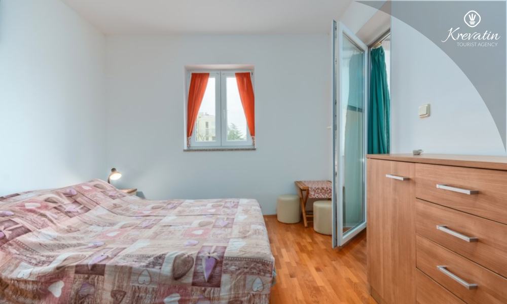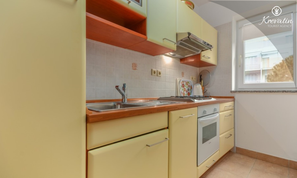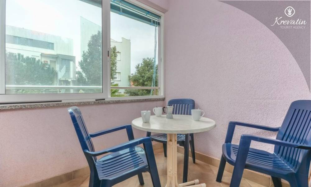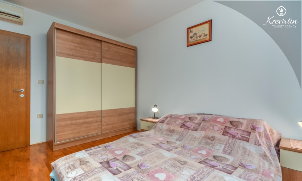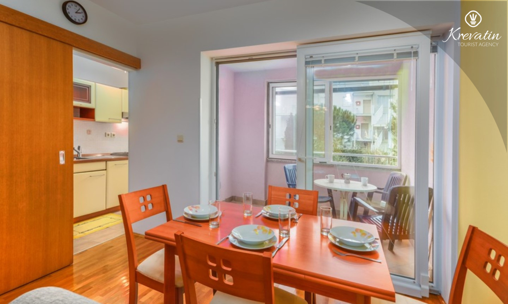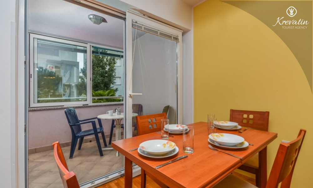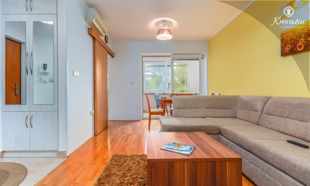 L'appartamento offre un soggiorno confortevole per un massimo di quattro persone. E' posizionato al piano terra di un edificio residenziale e garantisce un perfetto connubio tra comfort e praticità. Si compone di una camera da letto, cucina, soggiorno con sala da pranzo e bagno. La camera da letto è dotata di un letto matrimoniale e un armadio e ha accesso ad una terrazza chiusa. Il soggiorno offre ulteriore spazio per dormire su una comoda zona salotto che può essere facilmente trasformata in un letto per due persone.