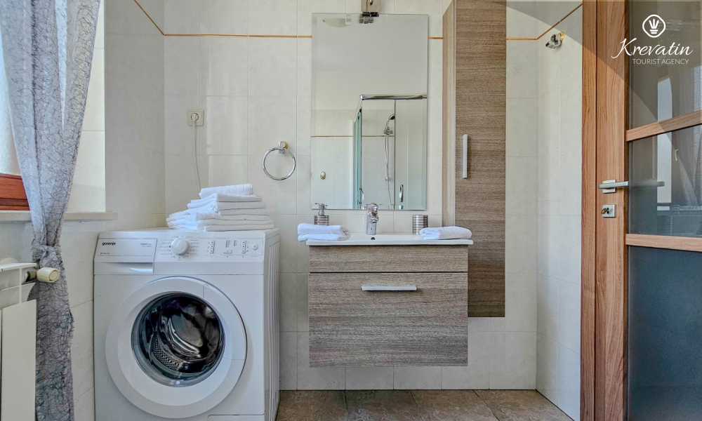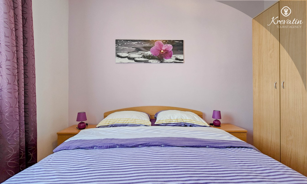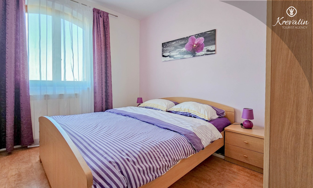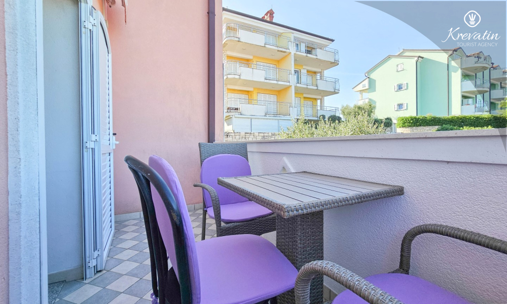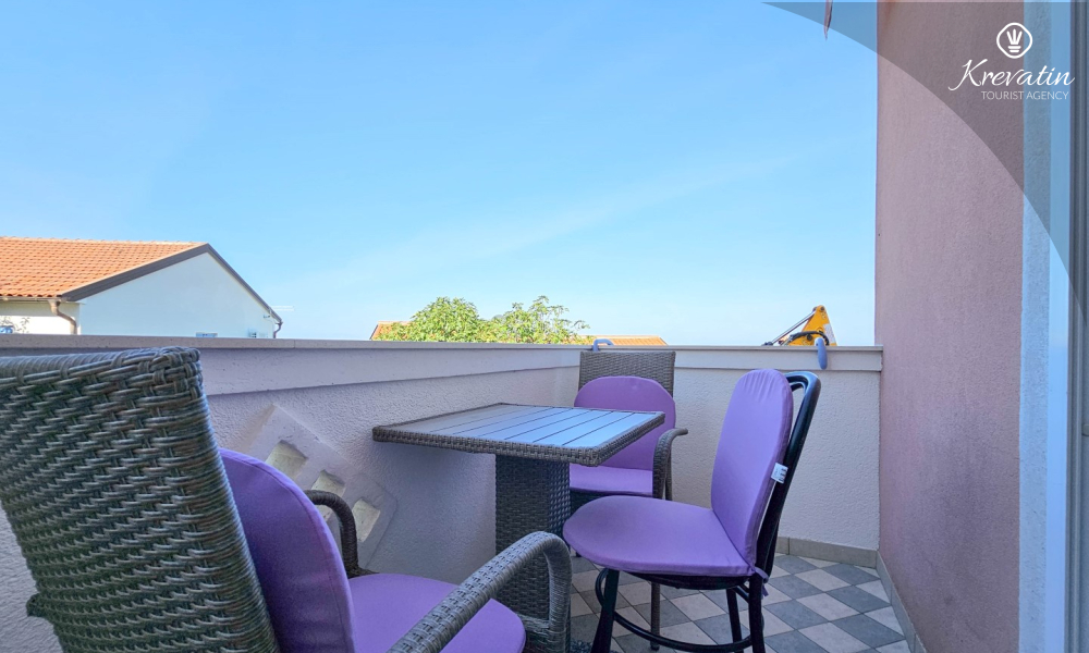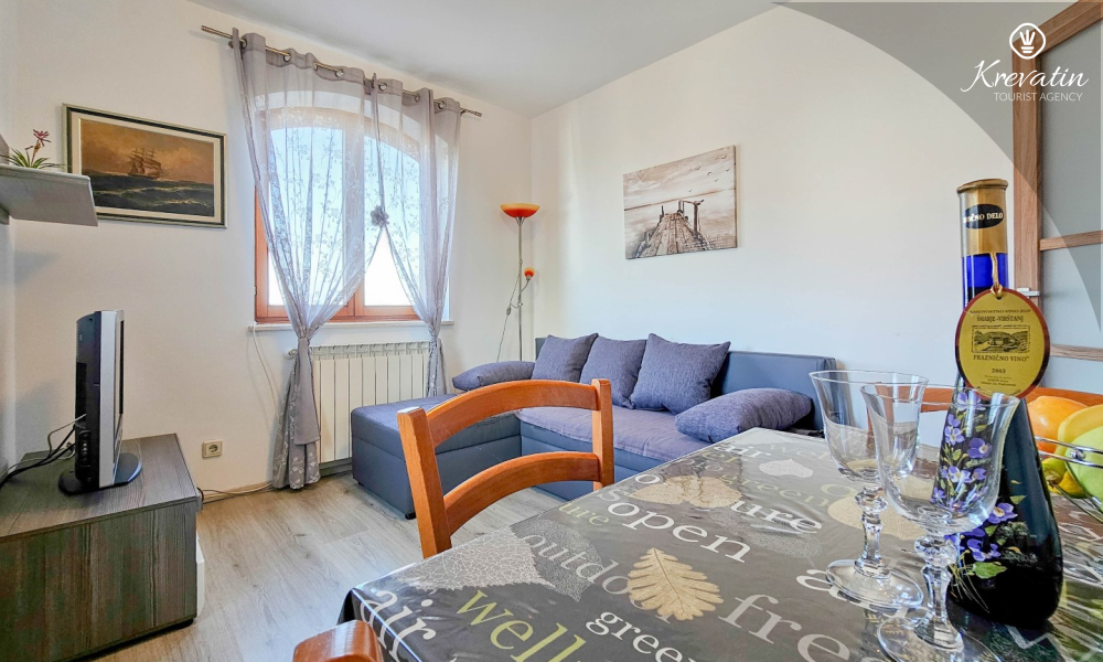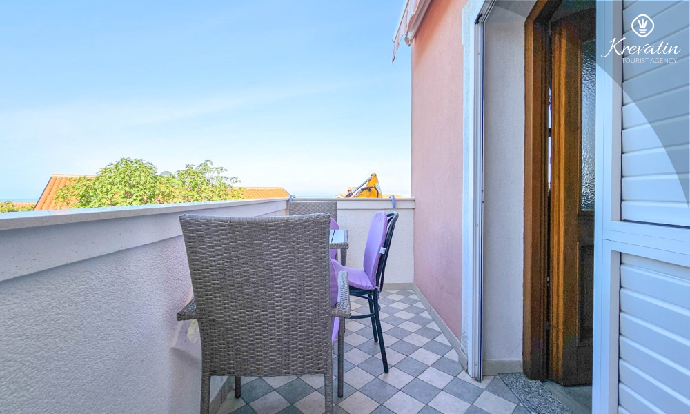 L'appartamento può ospitare fino a 3 persone e offre tutto il necessario per una vacanza rilassante. La cucina è attrezzata con le cose basilari, e l'ampio soggiorno con sala da pranzo dispone di TV e accesso al balcone con vista sul mare. Il balcone è il luogo ideale per un caffè mattutino o per il relax serale. L'appartamento è dotato di aria condizionata, internet e TV satellitare, oltre ad un pratico bagno con doccia, e la biancheria da letto e da bagno è inclusa nel prezzo.