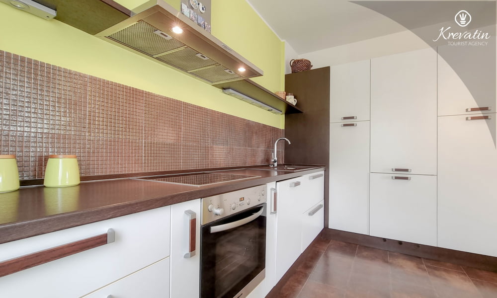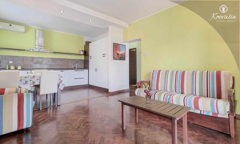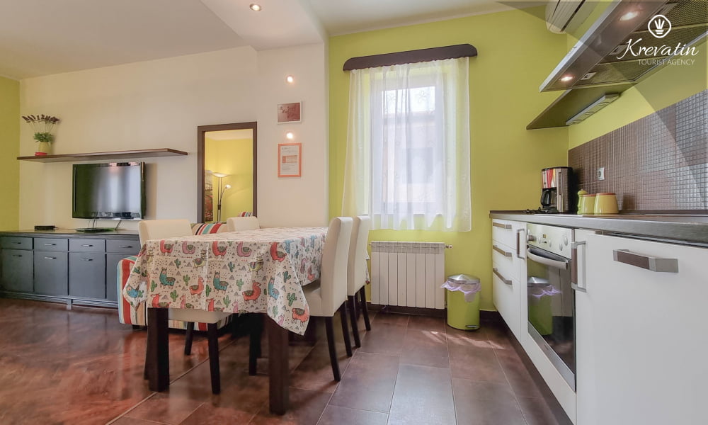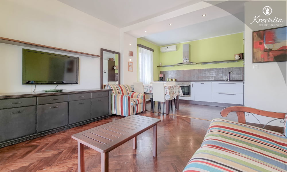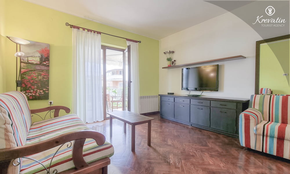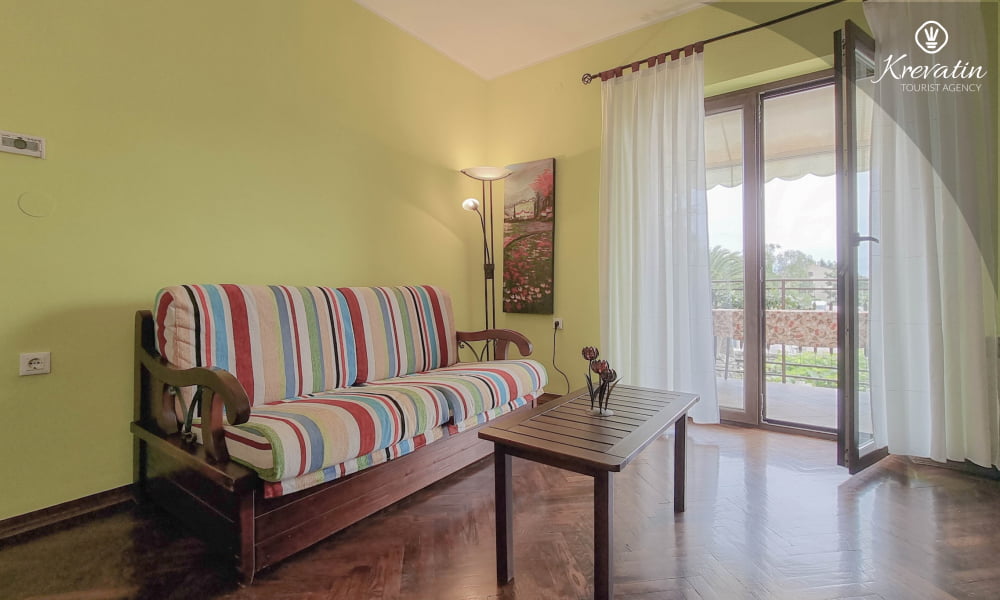 L'appartamento si trova al primo piano di una casa familiare e offre una sistemazione confortevole per due persone.