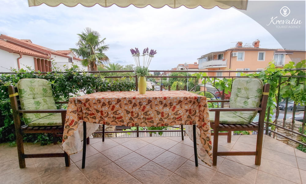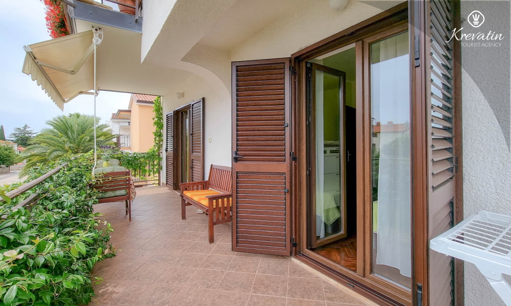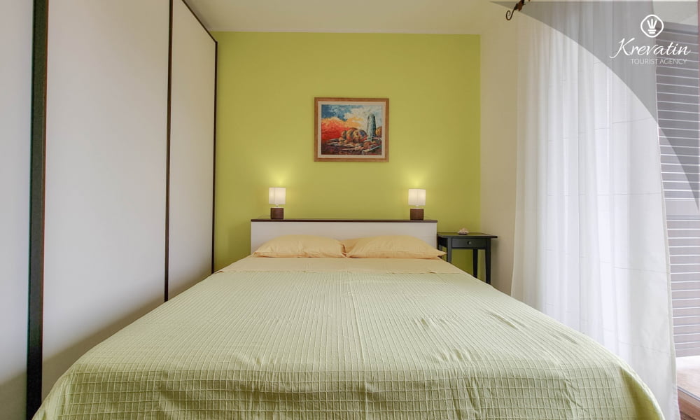 È composto da una camera da letto con letto matrimoniale e un soggiorno con cucina attrezzata con utensili di base per la preparazione dei pasti. Il bagno è dotato di doccia e WC e un balcone arredato è ideale per rilassarsi all'aria aperta.