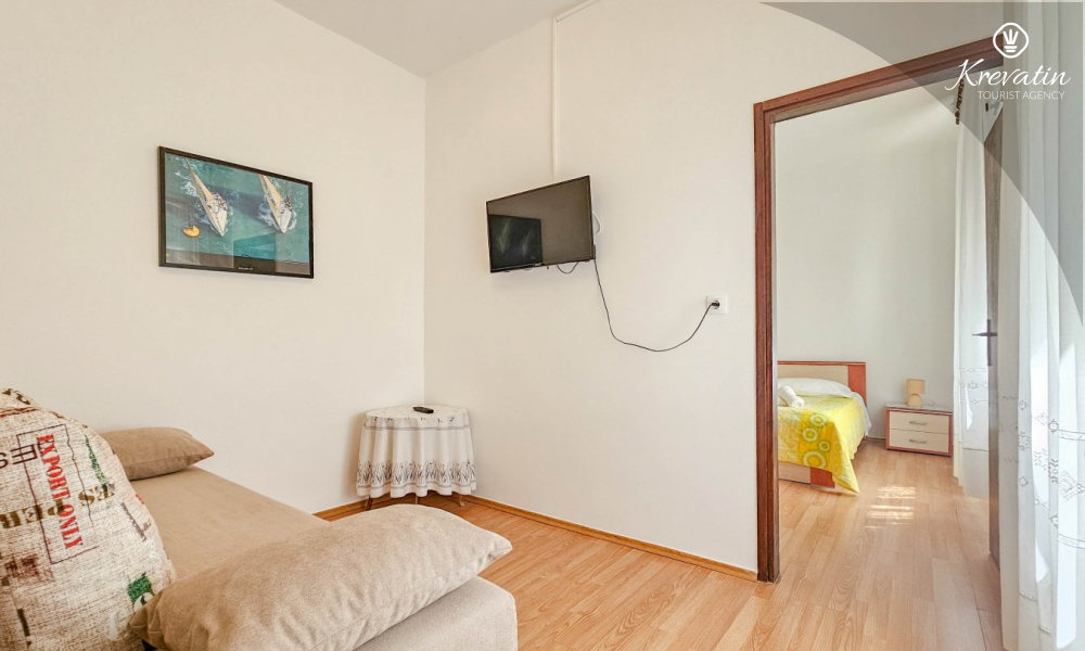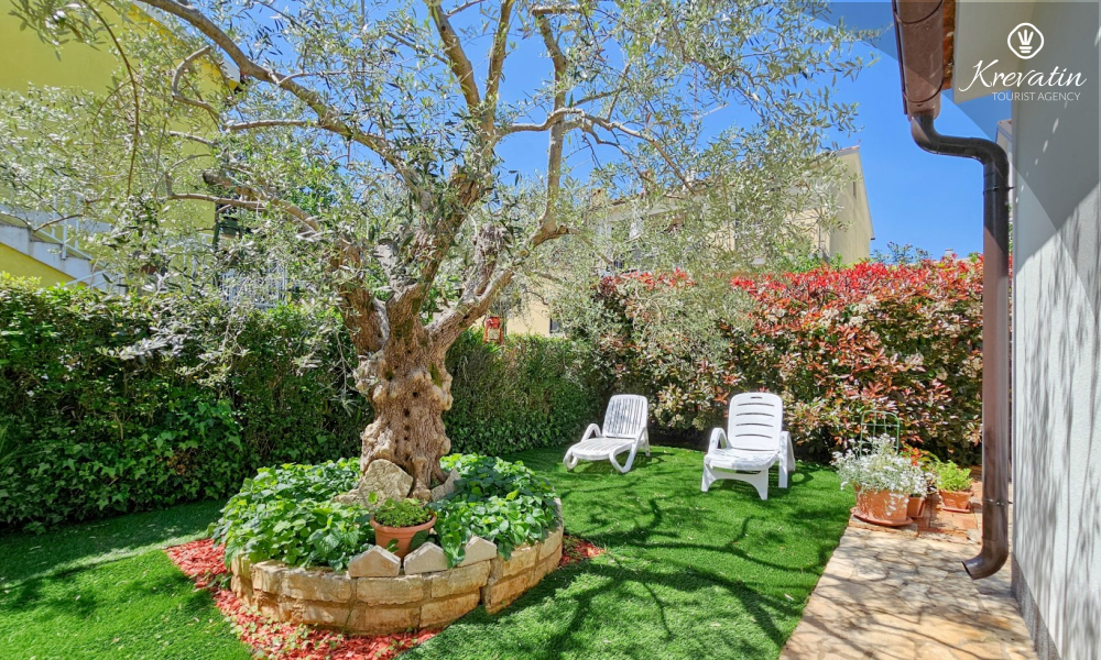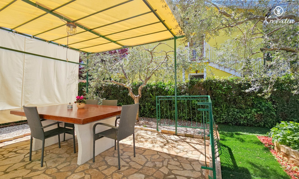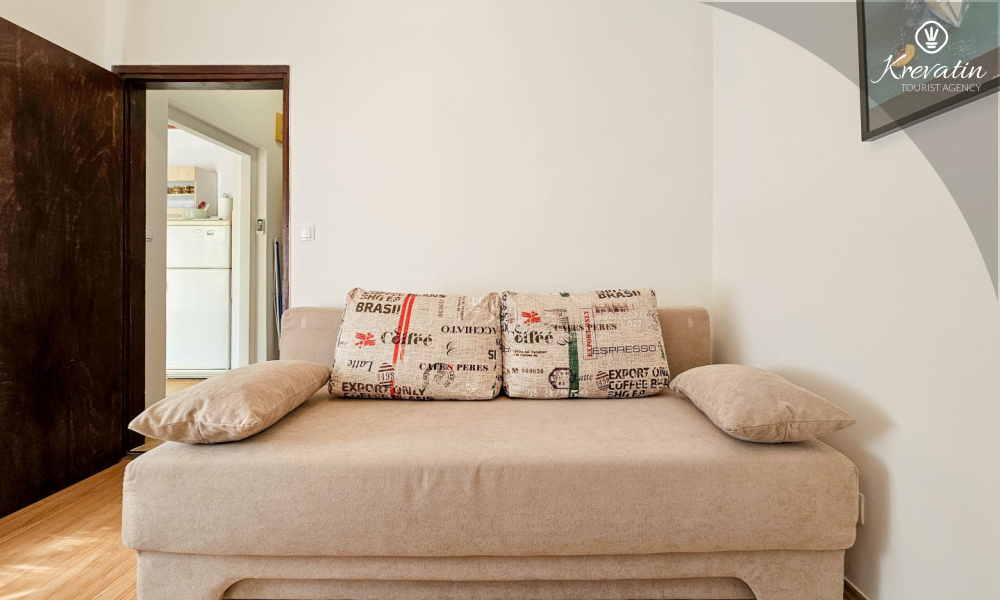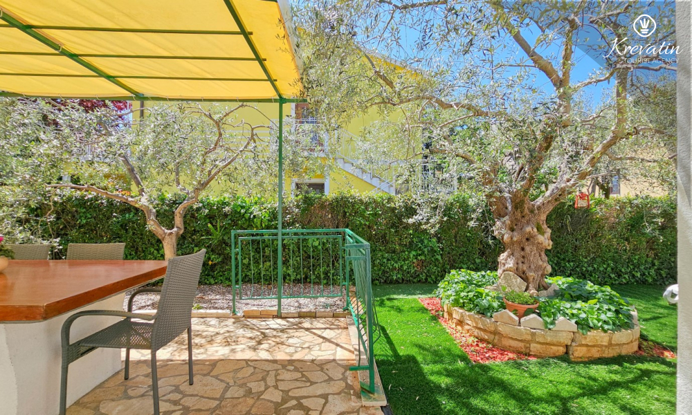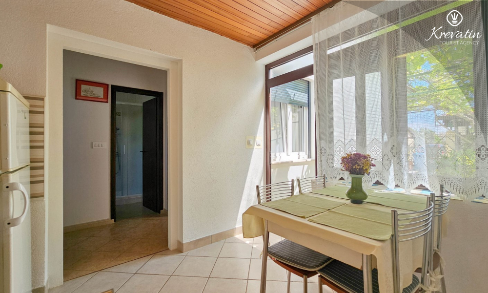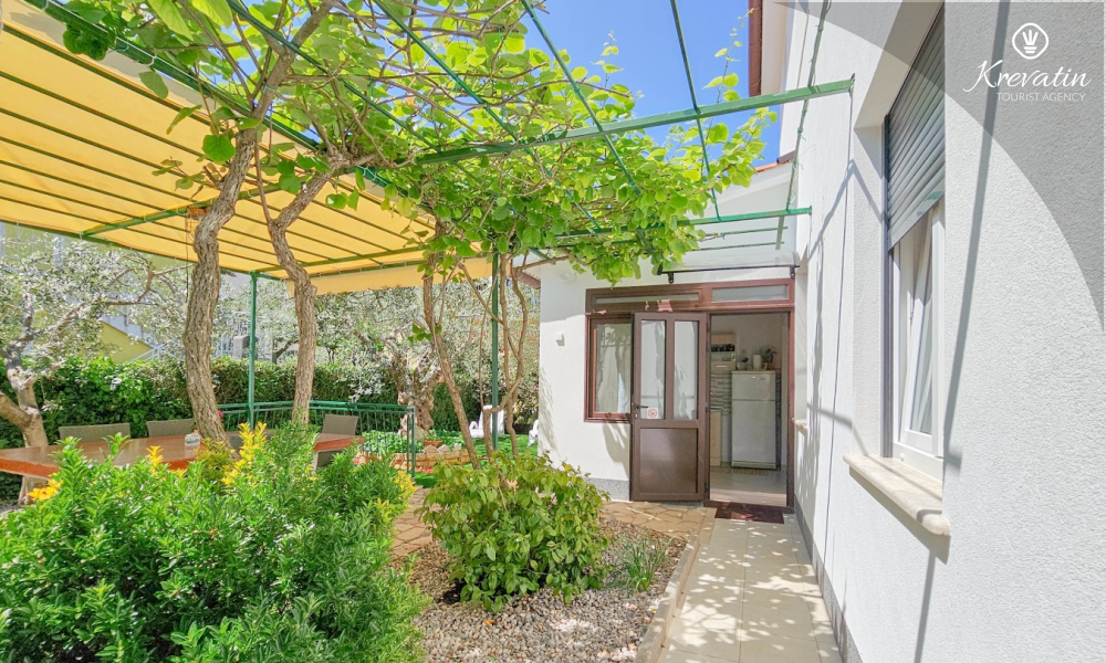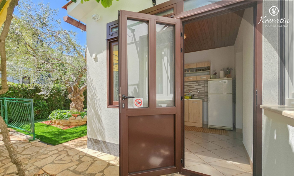 Situato al piano terra di una casa familiare, l'appartamento è composto da una camera da letto con letto matrimoniale, un soggiorno con due posti letto aggiuntivi e una cucina ben attrezzata. Inoltre, l'appartamento dispone di un bagno funzionale con doccia e WC e di un bellissimo giardino con terrazza, ideale per rilassarsi e godersi l'aria aperta.