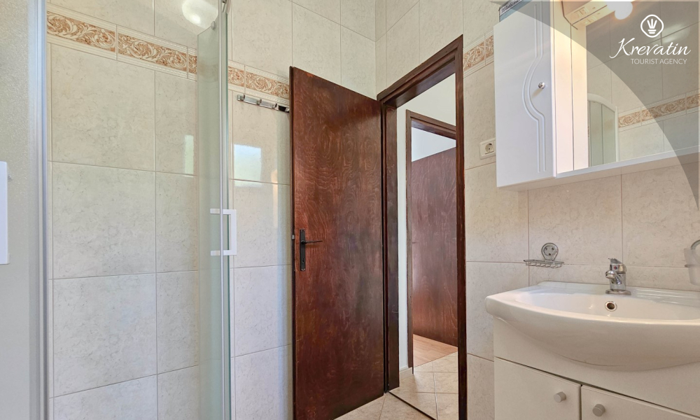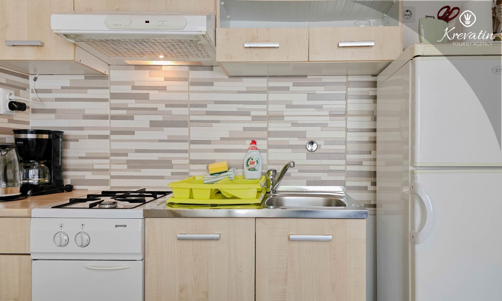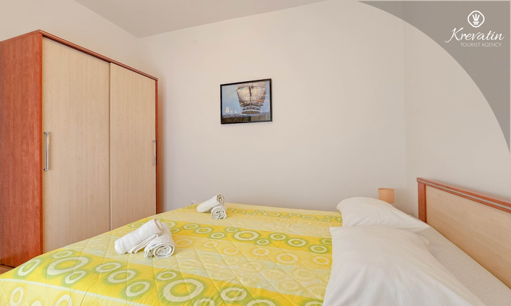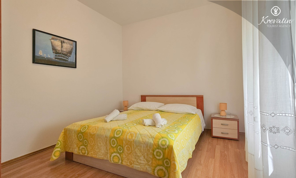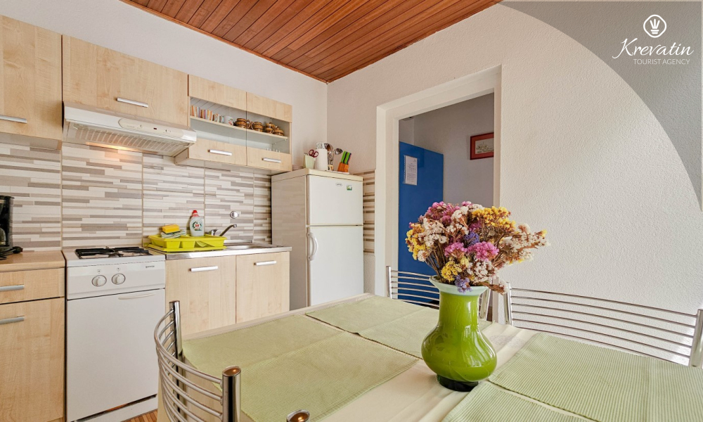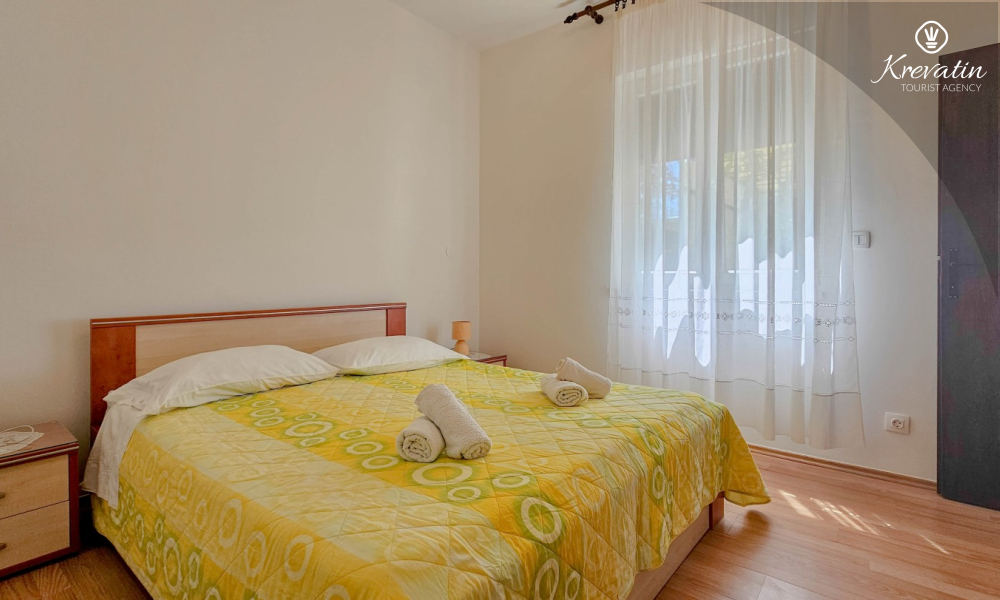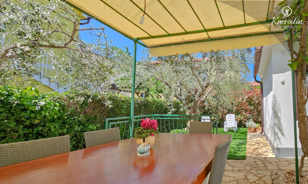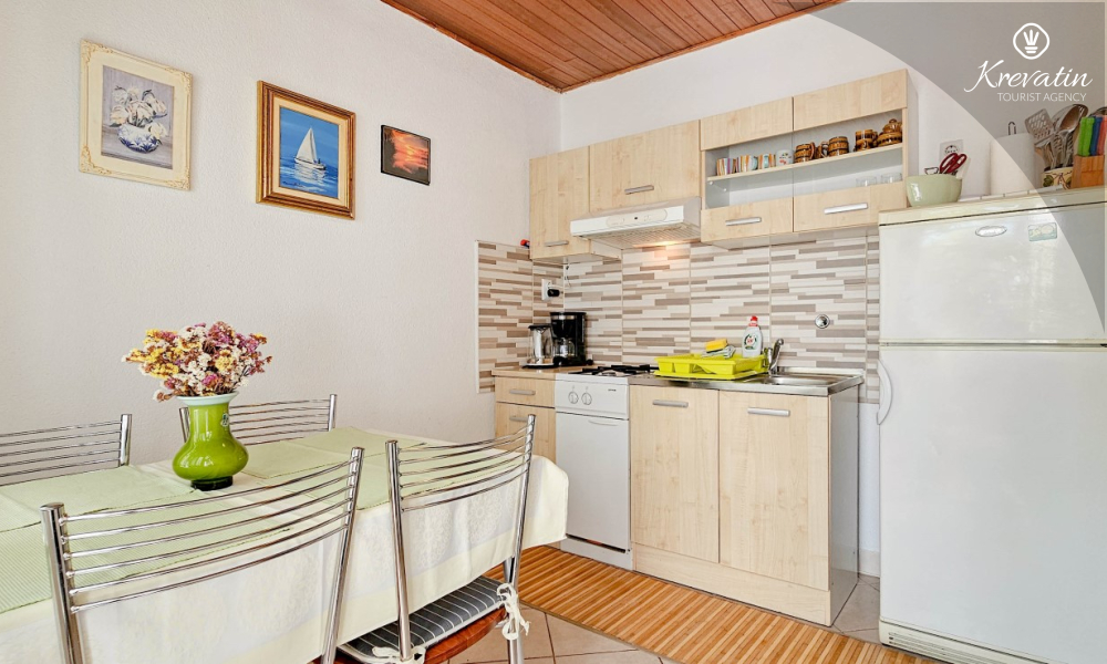 Situato al piano terra di una casa familiare, l'appartamento è composto da una camera da letto con letto matrimoniale, un soggiorno con due posti letto aggiuntivi e una cucina ben attrezzata. Inoltre, l'appartamento dispone di un bagno funzionale con doccia e WC e di un bellissimo giardino con terrazza, ideale per rilassarsi e godersi l'aria aperta.