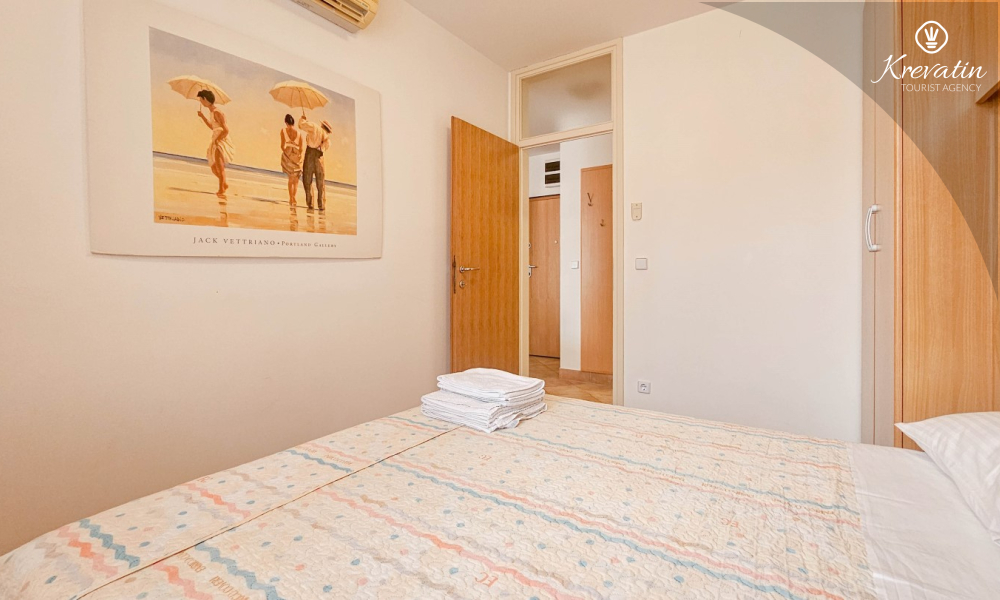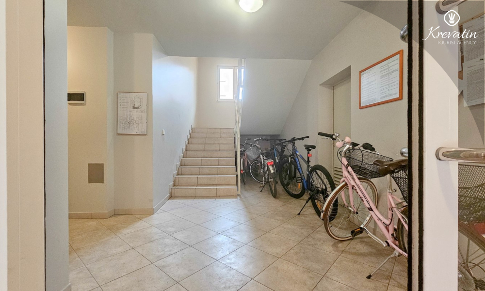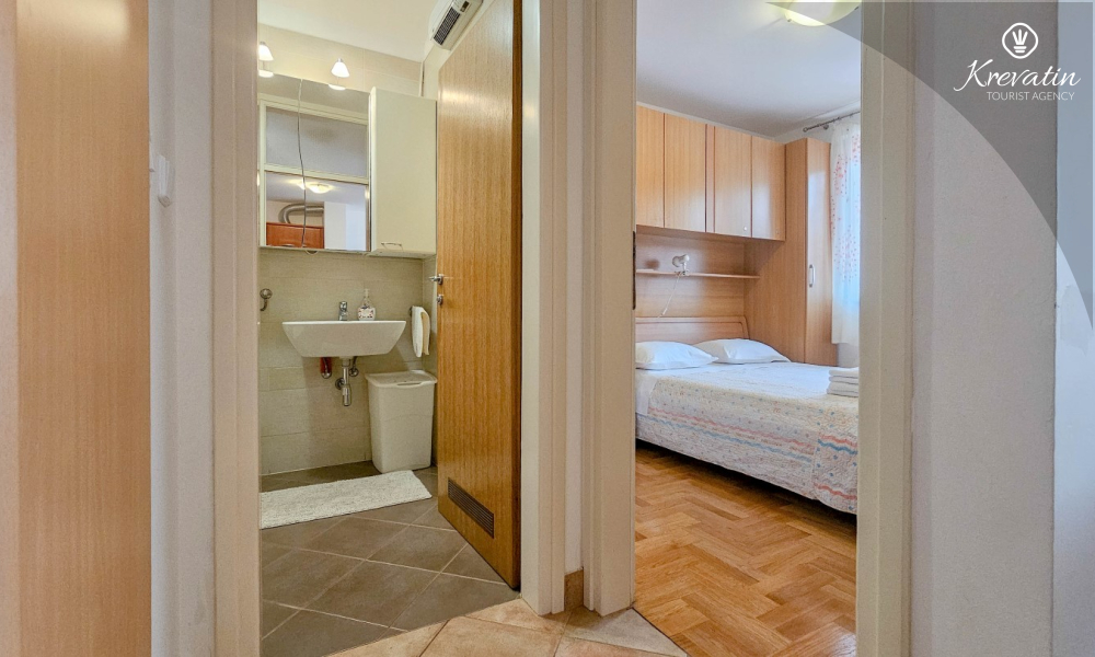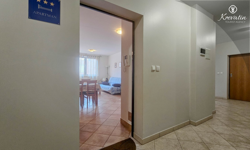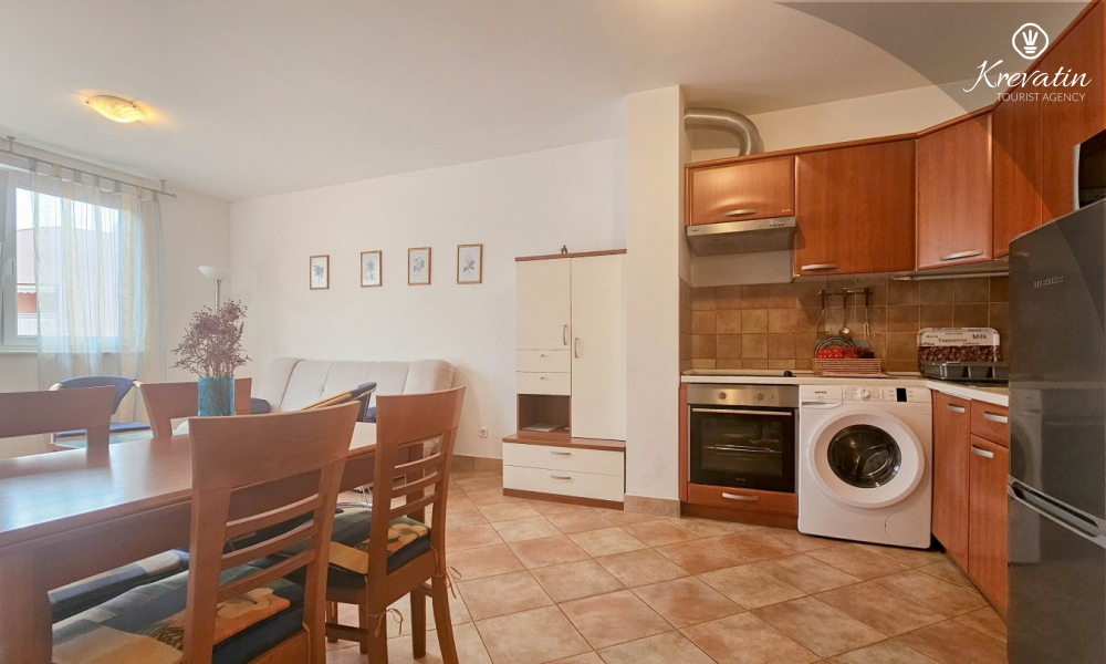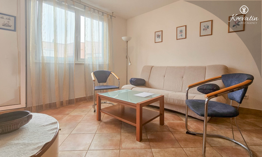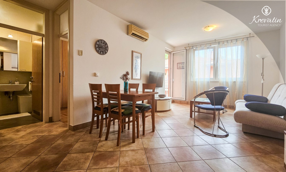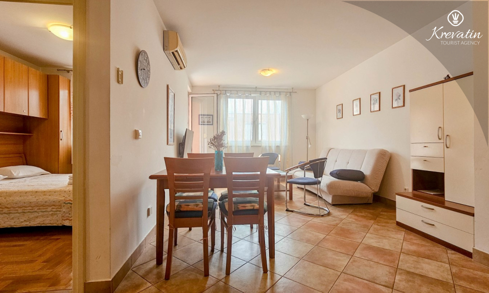 A soli 80 metri dal mare cristallino, al secondo piano di un edificio residenziale, in una zona tranquilla di Cittanova, si trova questo confortevole appartamento per 2-4 persone.