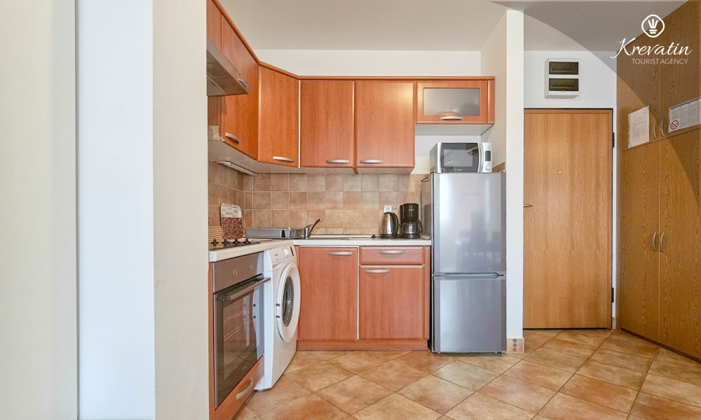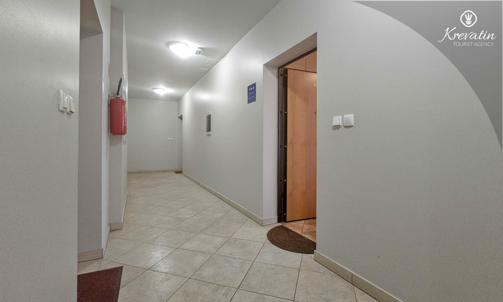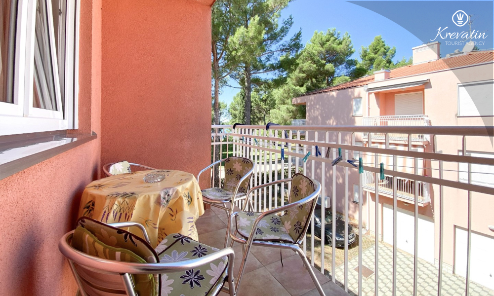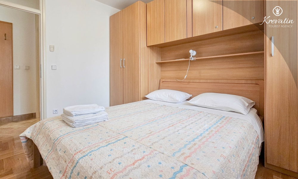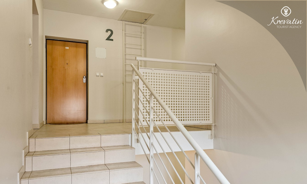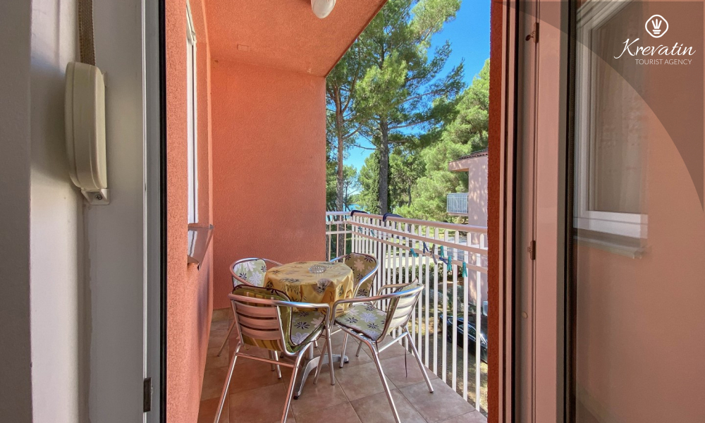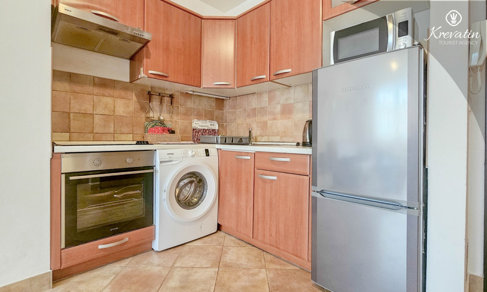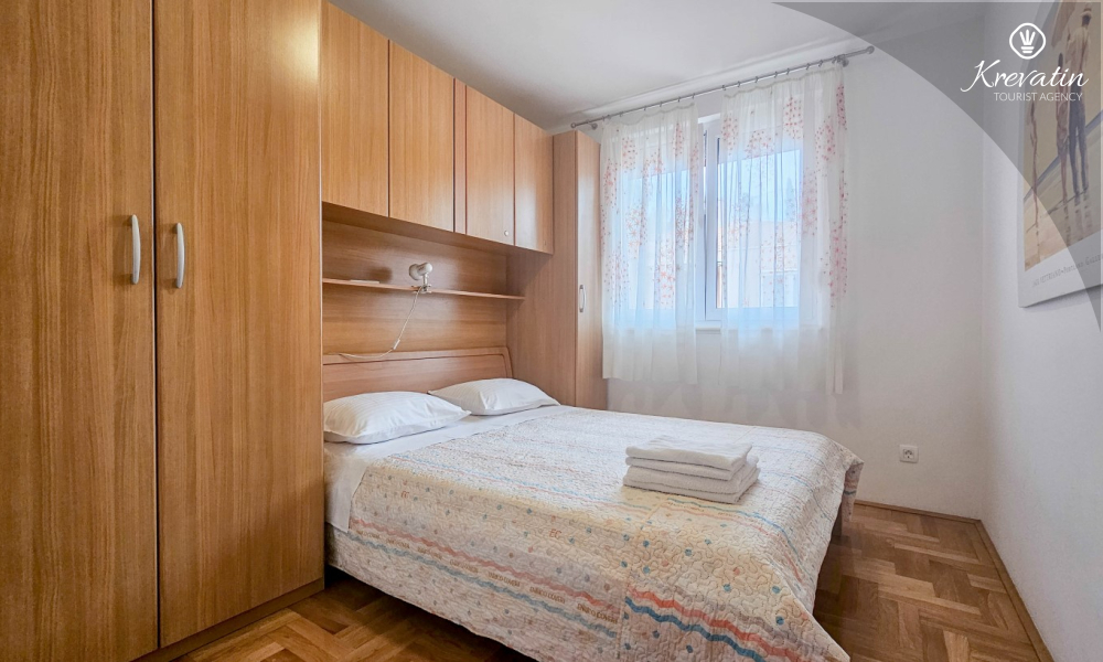 A soli 80 metri dal mare cristallino, al secondo piano di un edificio residenziale, in una zona tranquilla di Cittanova, si trova questo confortevole appartamento per 2-4 persone.