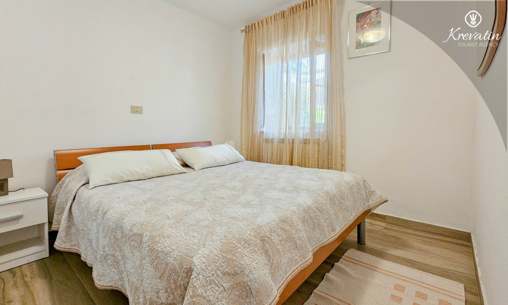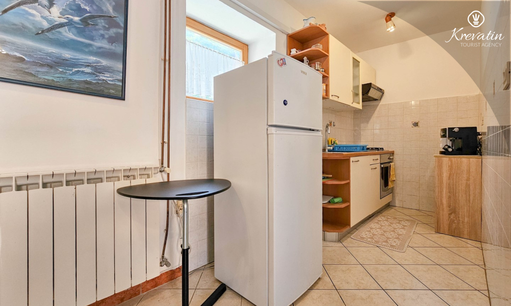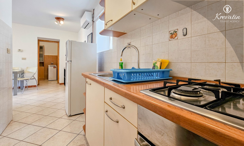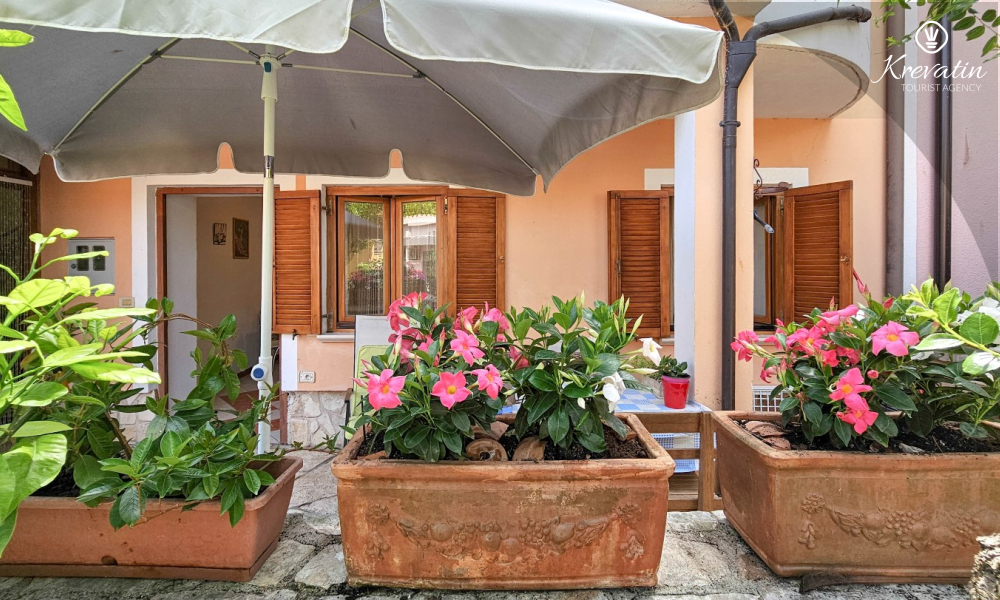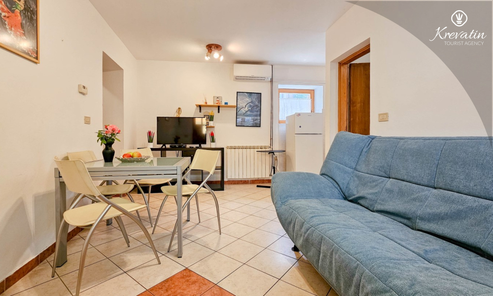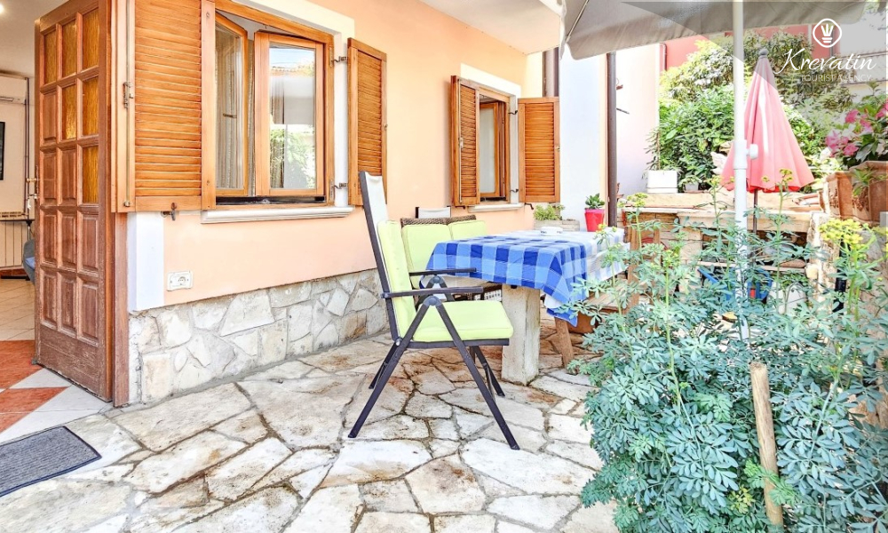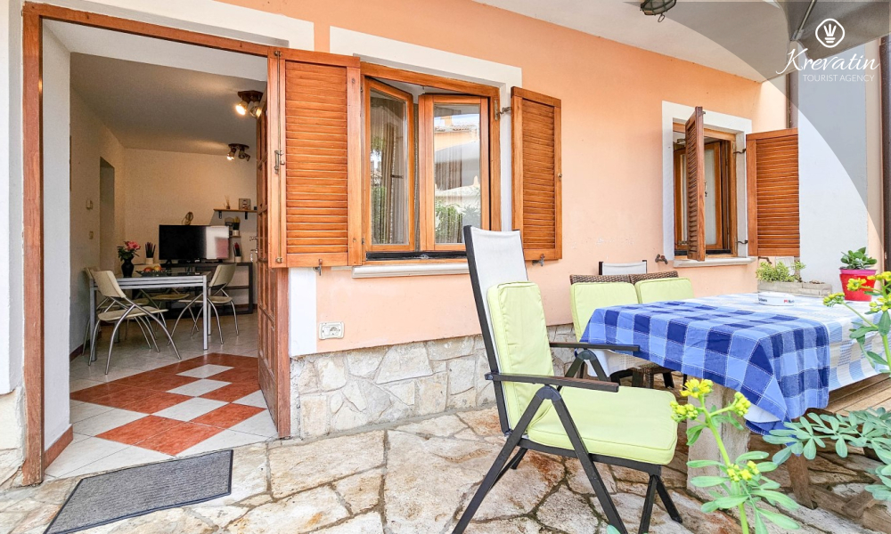 L'appartamento si trova al piano terra di una casa familiare e dispone di una camera da letto con letto matrimoniale, un soggiorno con divano letto, una cucina completamente attrezzata con tutto il necessario e un bagno con doccia e WC. Dispone inoltre di una terrazza con tavolo e sedie, il luogo ideale per un caffè mattutino o per rilassarsi la sera.
