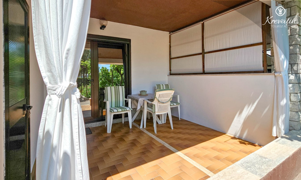 L'appartamento è composto da una camera da letto, un soggiorno con divano letto per un'ulteriore persona e una cucina attrezzata con utensili di base per la preparazione dei pasti. Dispone inoltre di un bagno con doccia e WC e di una terrazza con vista mare, perfetta per un caffè mattutino o per rilassarsi la sera ammirando il tramonto.