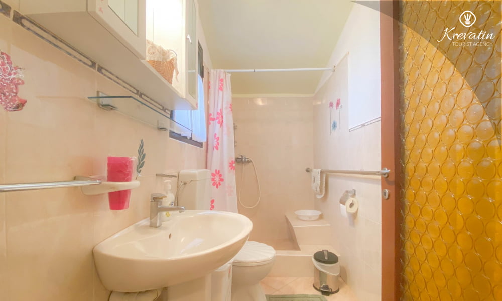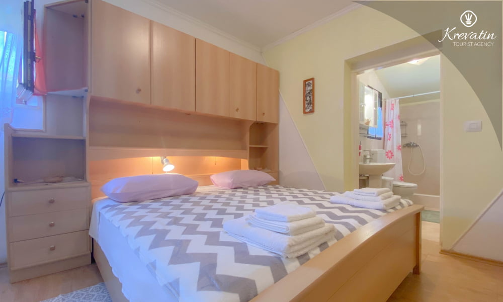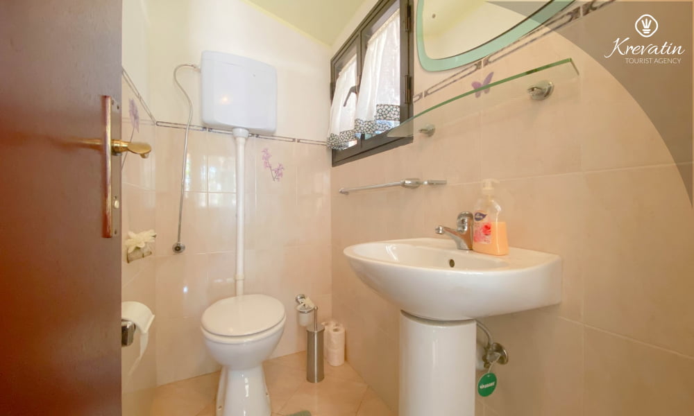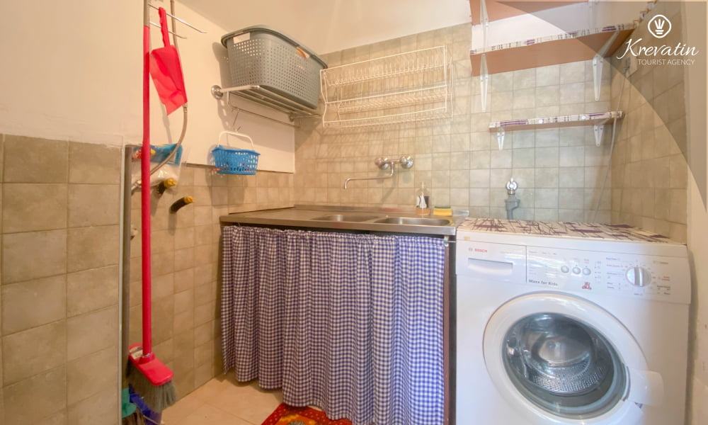 L'appartamento si trova al piano terra ed è composto da una camera da letto con letto matrimoniale, un soggiorno con divano letto e una cucina funzionale e attrezzata con servizi di base. L'appartamento dispone di un bagno con doccia e WC e di un ulteriore WC aggiuntivo. Sono inoltre disponibili una lavatrice e una lavastoviglie per un comfort aggiuntivo.