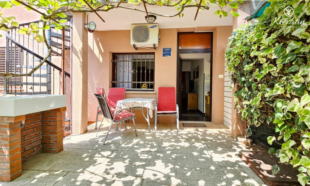 Situato in una zona tranquilla di Cittanova, questo appartamento al piano terra offre la combinazione perfetta tra comfort e relax. È ideale per le coppie ed è composto da una camera da letto accogliente, una cucina attrezzata in modo pratico con zona pranzo e un bagno con doccia. È disponibile anche una terrazza dove sorseggiare un caffè al mattino o socializzare la sera con un bicchiere di vino.