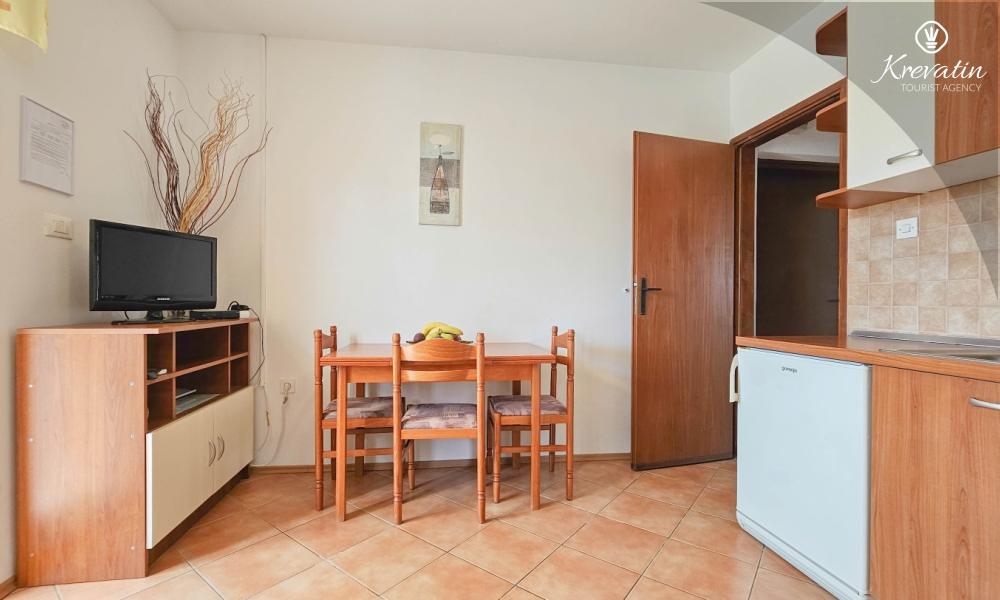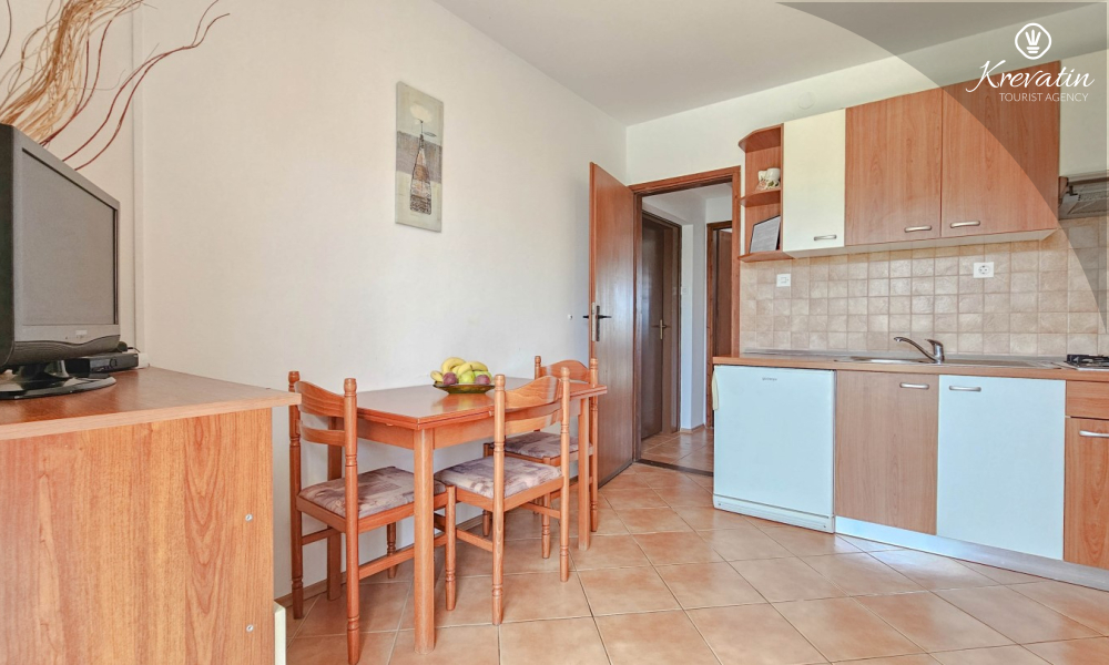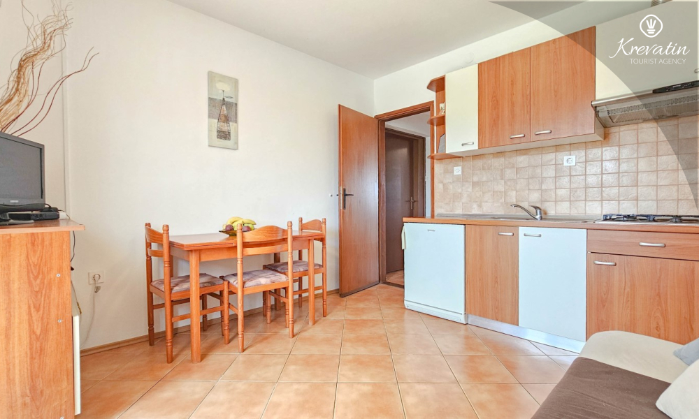Situato in una zona tranquilla di Cittanova, questo appartamento al primo piano offre la combinazione perfetta tra comfort e relax. È ideale per le coppie ed è composto da una camera da letto accogliente, una cucina attrezzata in modo pratico con zona pranzo e un bagno con doccia. C'è anche un balcone a disposizione per un caffè mattutino o per socializzare la sera con un bicchiere di vino.