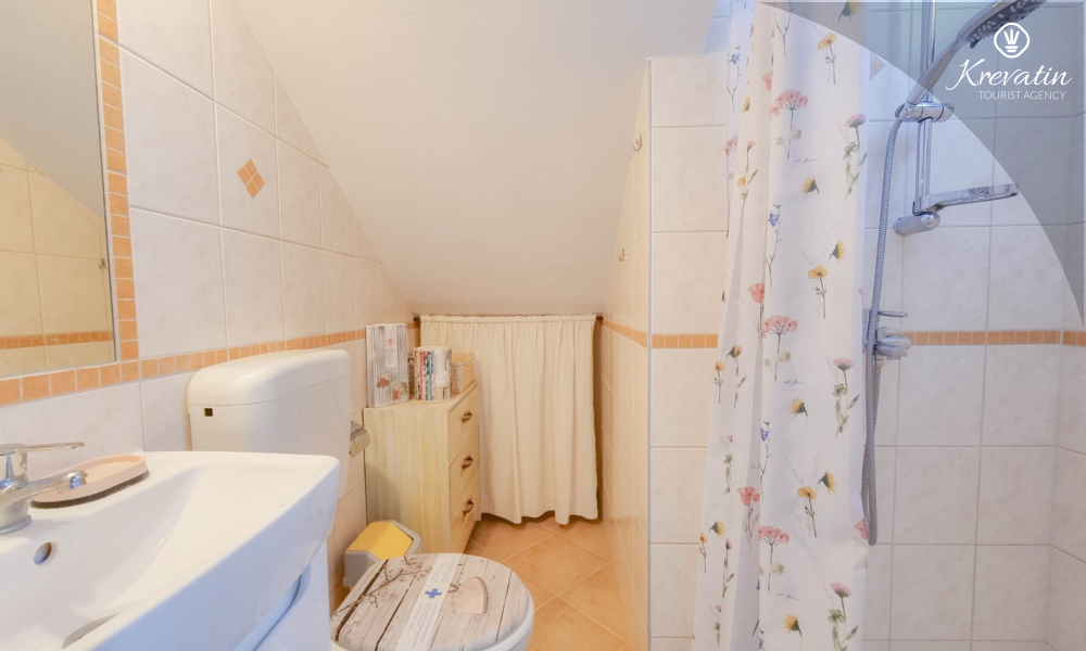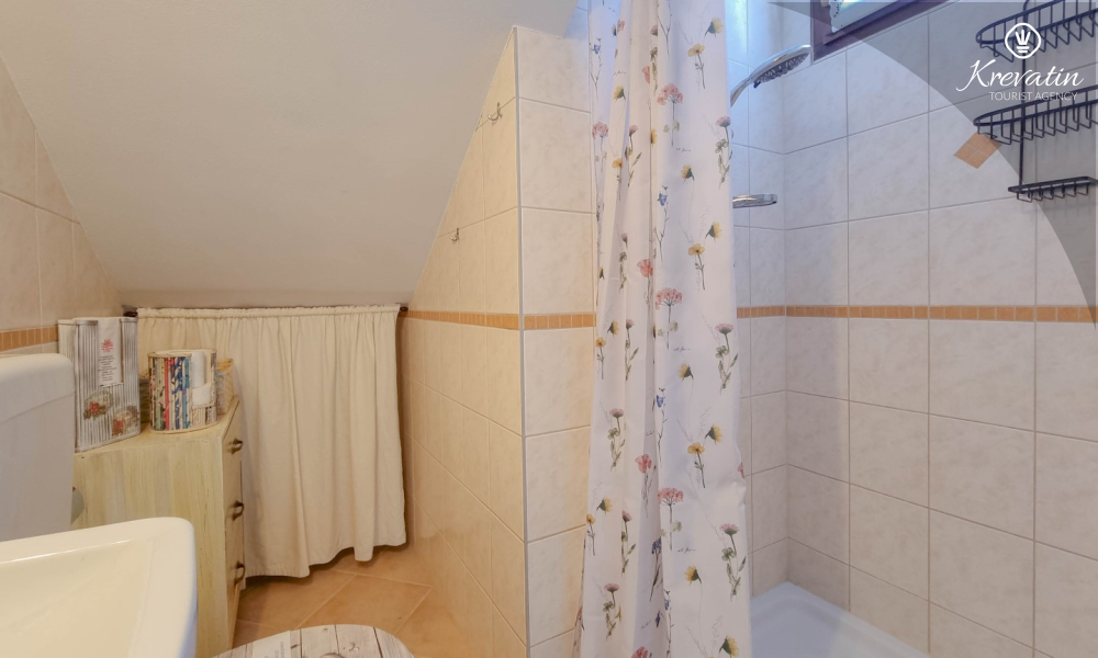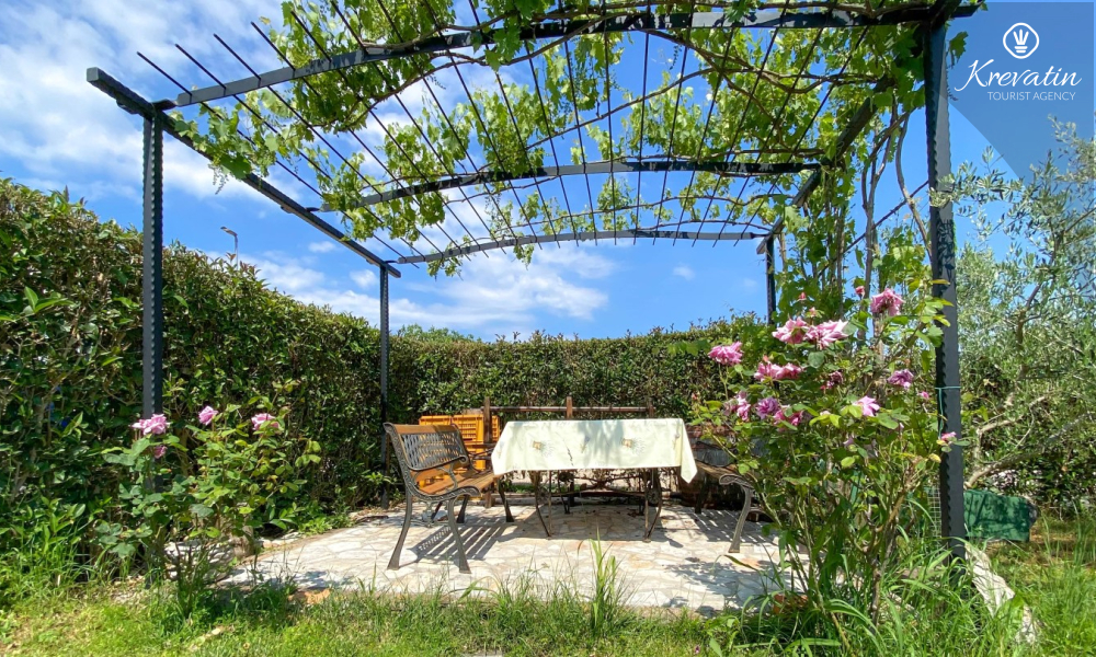 L'appartamento offre una confortevole camera da letto, una cucina con zona pranzo dotata di comfort di base e un pratico bagno con doccia e WC. Dispone di una terrazza coperta con vista sul verde giardino in comune e di una piscina esterna a disposizione di tutti gli ospiti della casa.