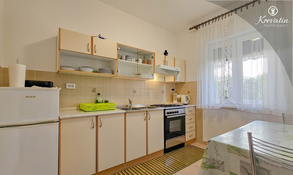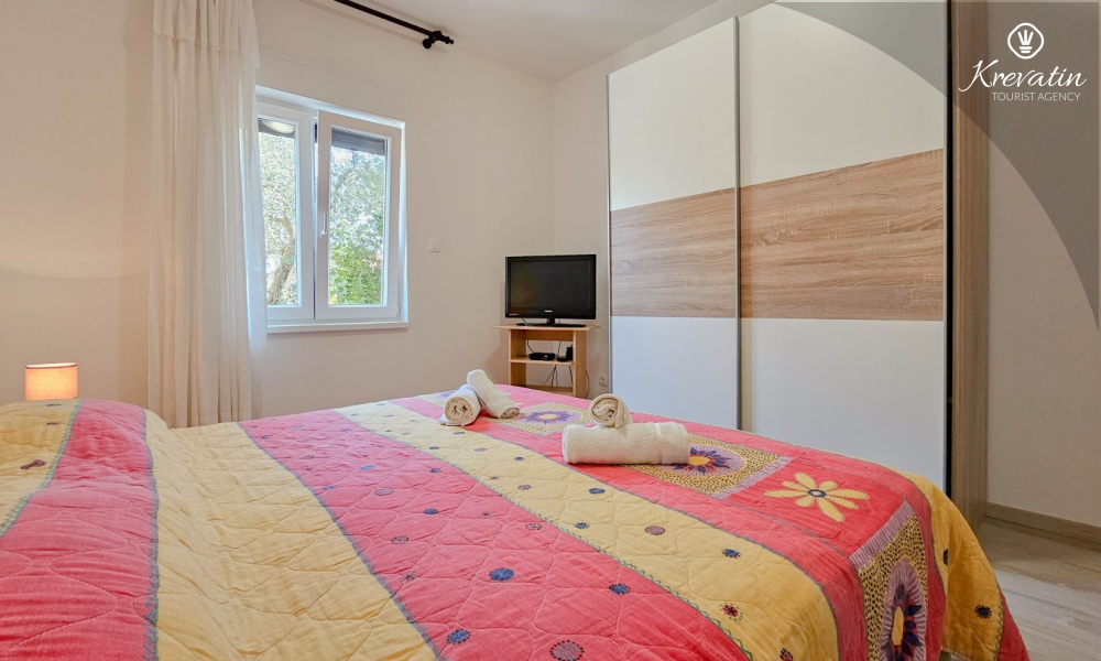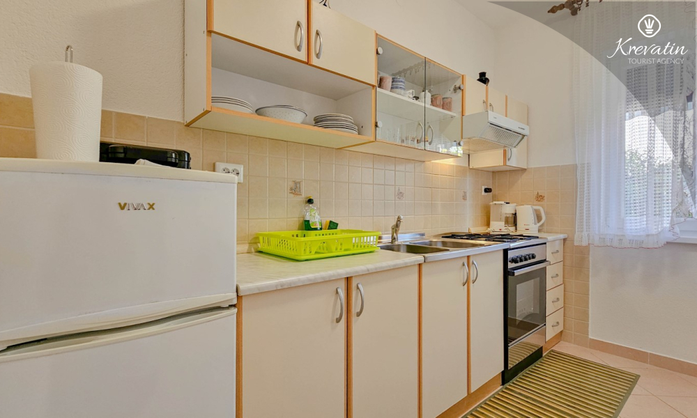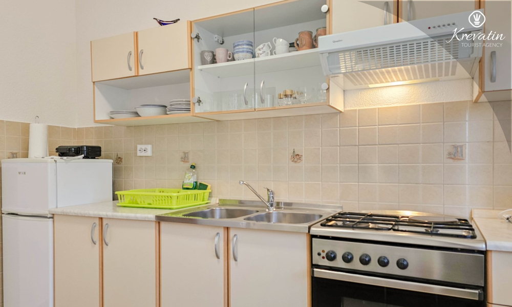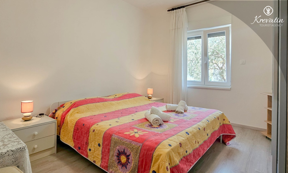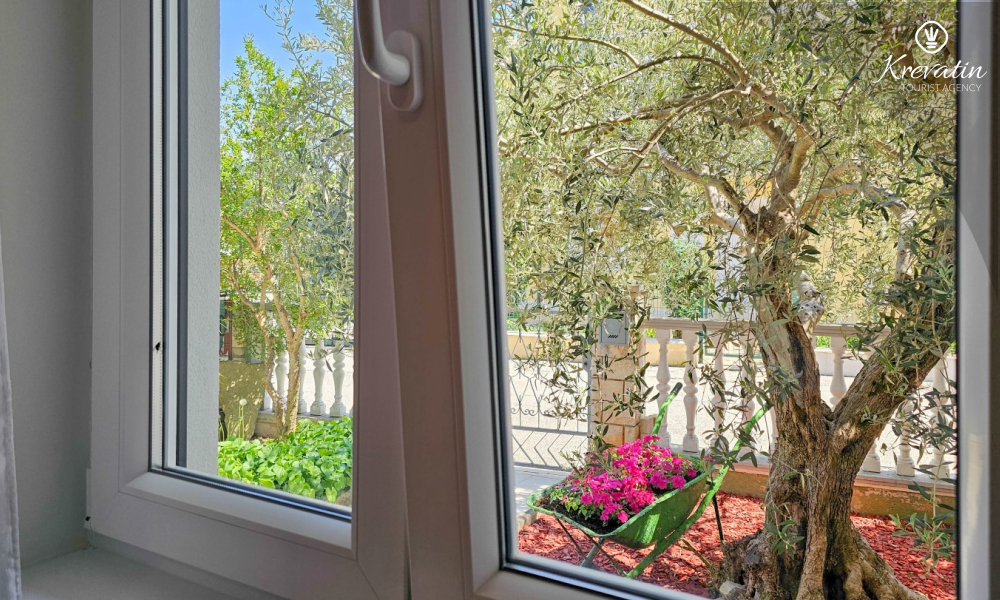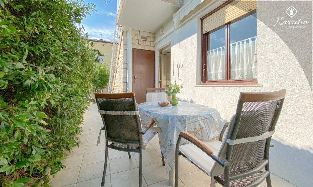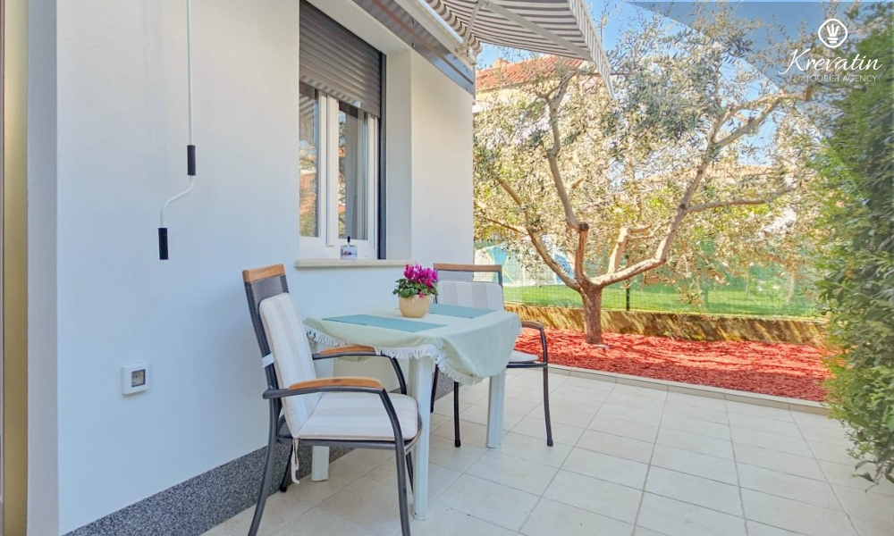 Situato al piano terra di una casa familiare, l'appartamento è composto da una camera da letto con letto matrimoniale e una cucina ben attrezzata. Inoltre, l'appartamento dispone di un bagno funzionale con doccia e WC e di una splendida terrazza con vista sul giardino circostante, attrezzata con tavolo e sedie: il luogo perfetto per rilassarsi con un caffè mattutino o per socializzare la sera.