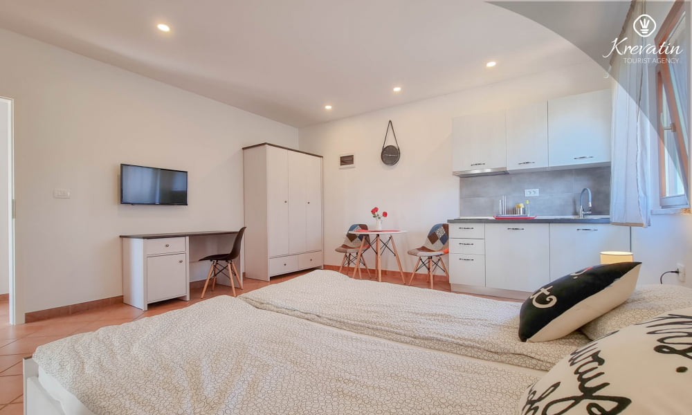 Benvenuti nel nostro monolocale nel cuore di Umago. Situato al piano terra, questo appartamento offre comfort e praticità per un massimo di due persone.