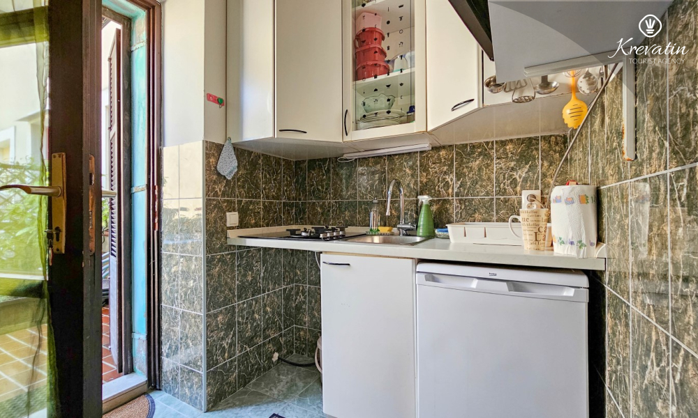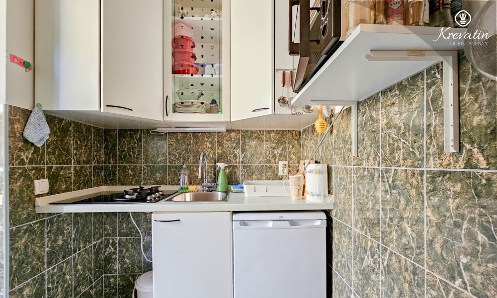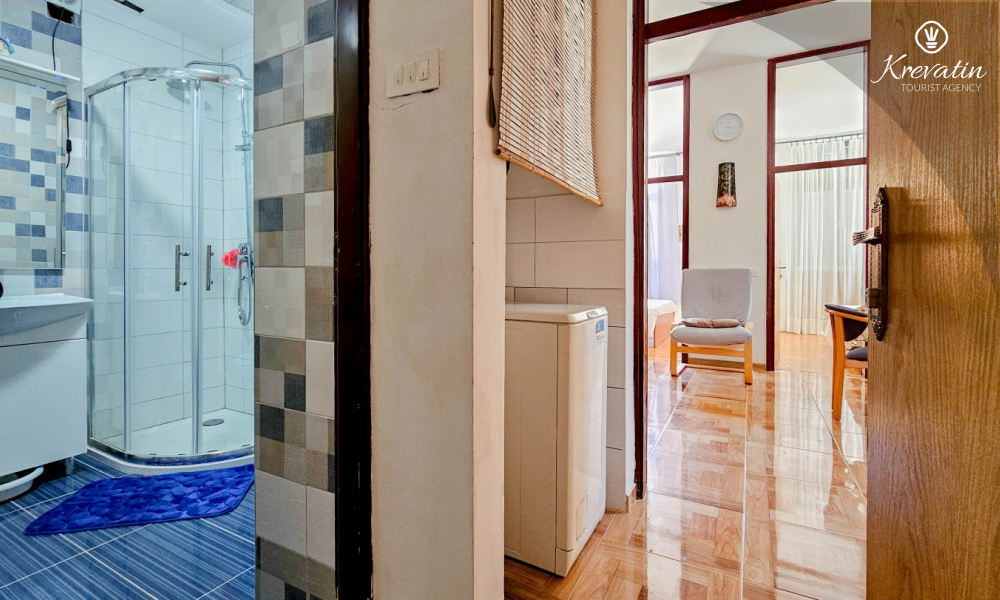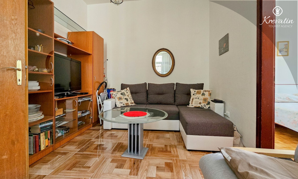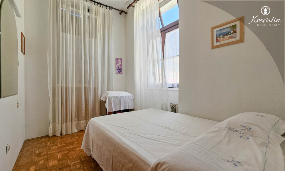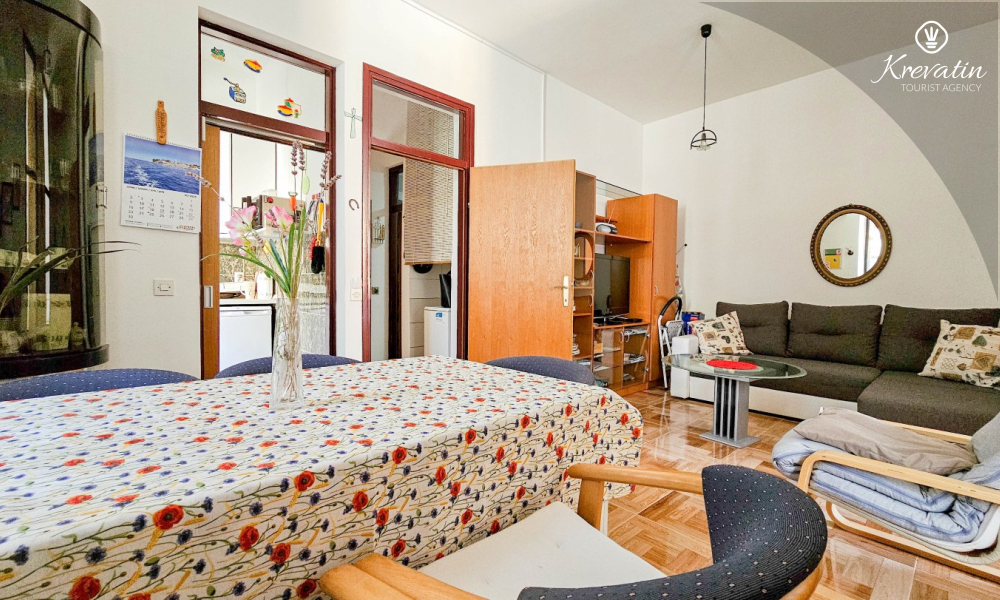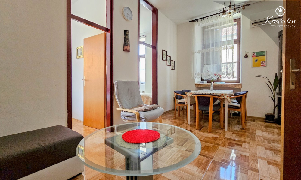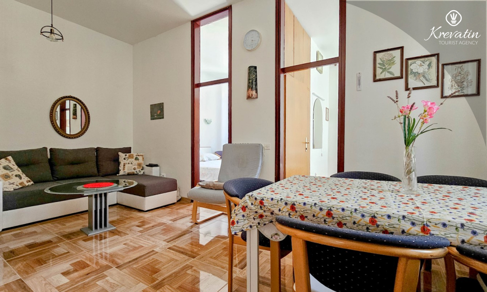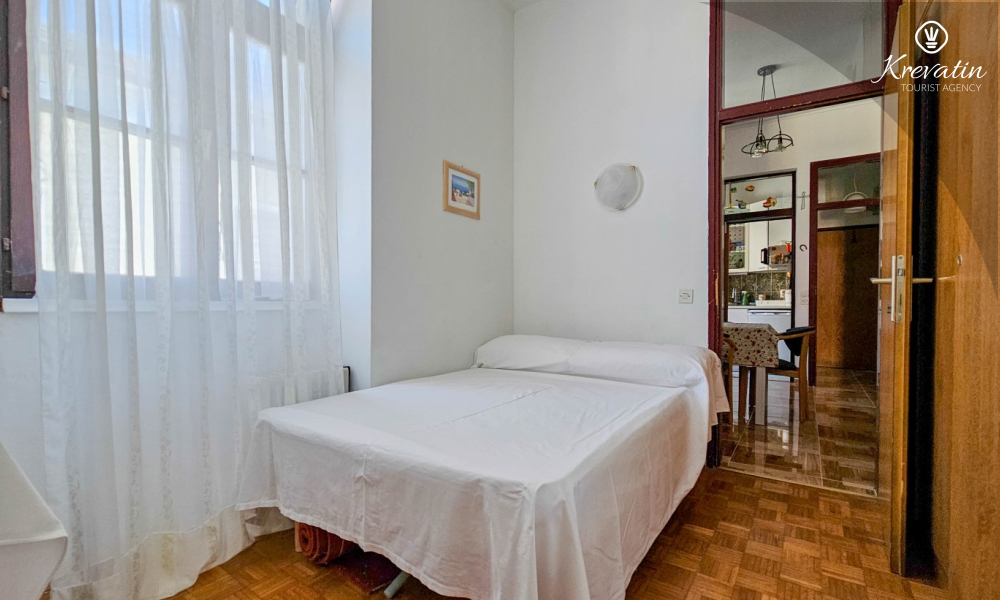 L'appartamento si trova al primo piano ed è ideale per un massimo di 4 persone. È composto da due camere da letto – una con letto matrimoniale e l'altra con un letto singolo – e nel soggiorno si trova un comodo divano letto che può ospitare un'altra persona.