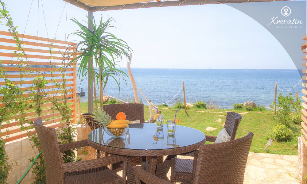 Situato direttamente sul mare, questo appartamento per 2 a 5 persone a due piani è composto da due camere da letto da qualli una con letto matrimoniale e una con due letti singoli situata sul primo piano-galleria, un soggiorno con divano letto per 1 persona e una cucina. La cucina è attrezzata con piano cottura elettrico, frigorifero e lavastoviglie. C'è anche un bagno con la doccia e una splendida terrazza con mobili e vista sul mare, che conduce direttamente alla spiaggia.
