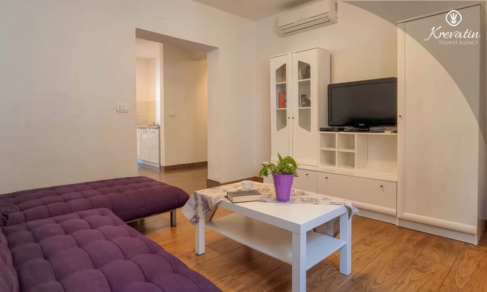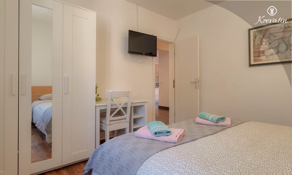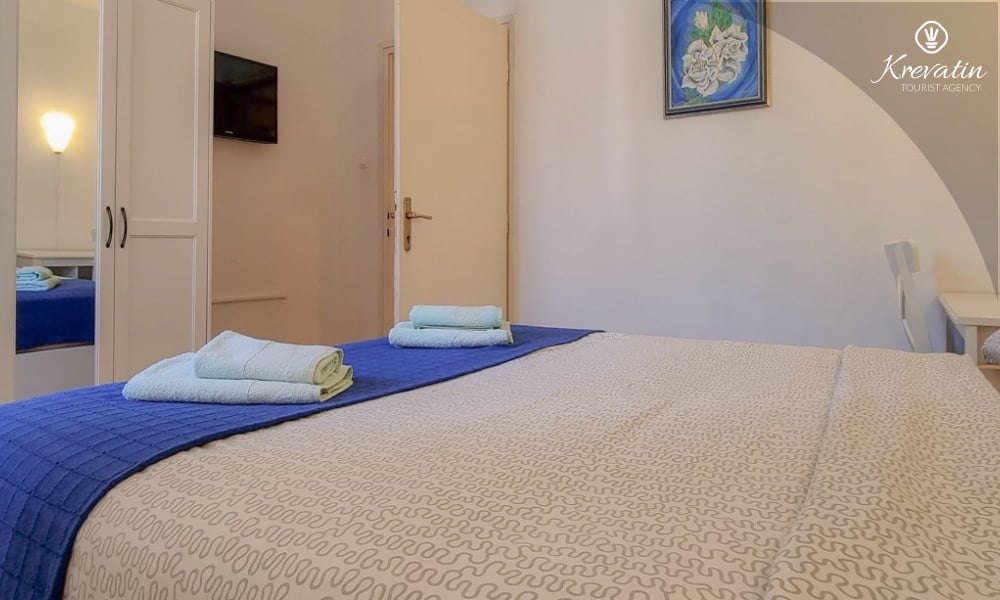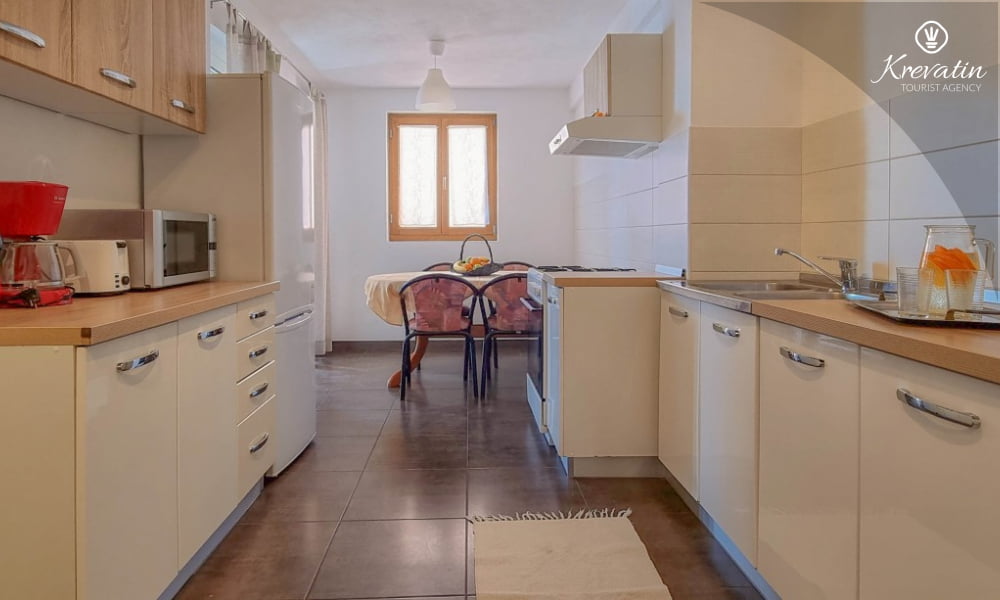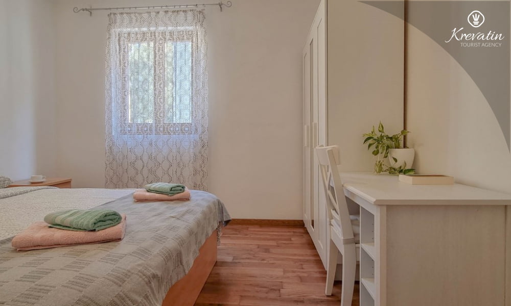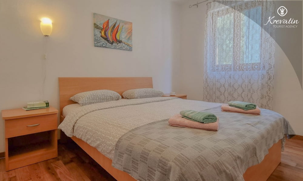È composto da due camere da letto, un soggiorno con un letto aggiuntivo e una cucina con zona pranzo attrezzata per preparare pasti semplici. Sono inoltre presenti due bagni con doccia e WC, nonché una terrazza con vista mare.Gli ospiti hanno a disposizione TV satellitare, aria condizionata, Wi-Fi, biancheria da letto e asciugamani, tutto incluso nel prezzo. Gli animali domestici sono ammessi con un supplemento.