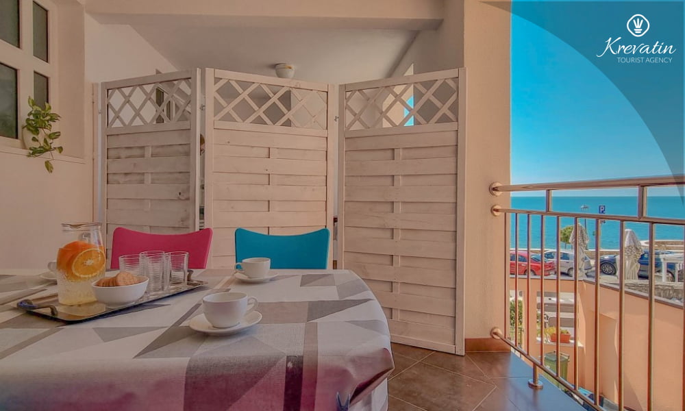 A soli 20 metri dal mare cristallino, questo spazioso appartamento al primo piano è la scelta perfetta per 4 o 5 persone.