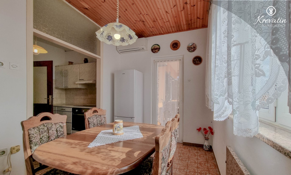 Questo appartamento per un massimo di 4 persone si trova al primo piano ed è composto da due camere da letto, un soggiorno e una cucina con sala da pranzo. La cucina è attrezzata con fornelli elettrici, forno, frigorifero e macchina per il caffè. Inoltre c'è un bagno con doccia e WC. SAT-TV, aria condizionata, WLAN, lenzuola e asciugamani sono inclusi nel prezzo, gli animali domestici sono i benvenuti a pagamento.