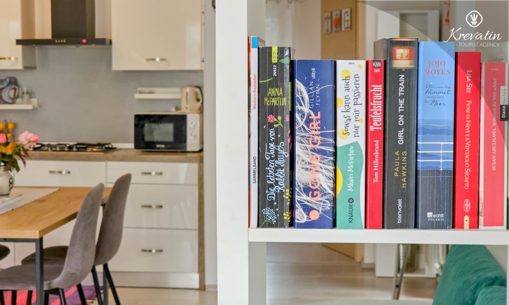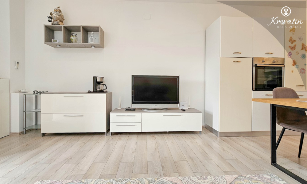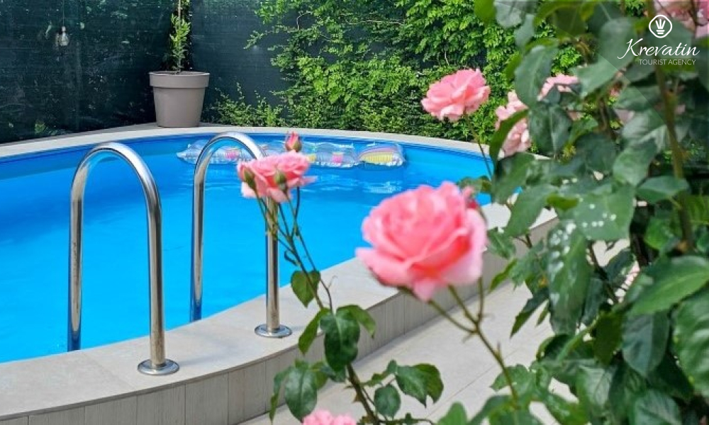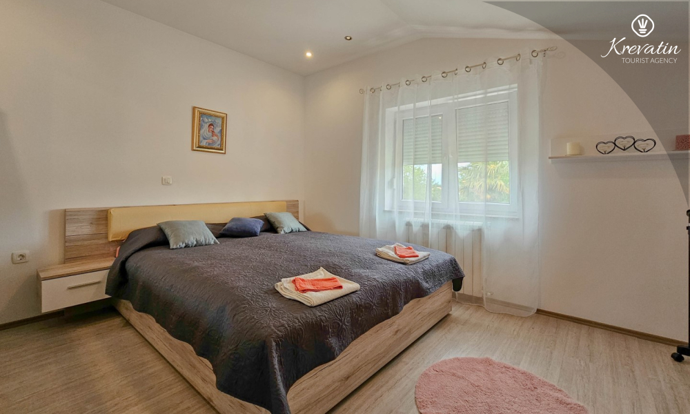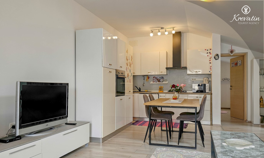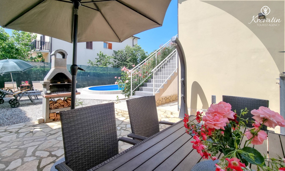 L'appartamento è composto da due comode camere da letto, un ampio soggiorno, un balcone con una bellissima vista e una cucina moderna dotata di tutti gli elettrodomestici necessari, tra cui fornello a gas/elettrico, forno, lavastoviglie, frigorifero, forno a microonde e macchina per il caffè. Nel nostro cortile recintato troverete una piscina privata con sedie a sdraio, doccia esterna e barbecue, il luogo perfetto per godersi le giornate soleggiate e le calde serate.