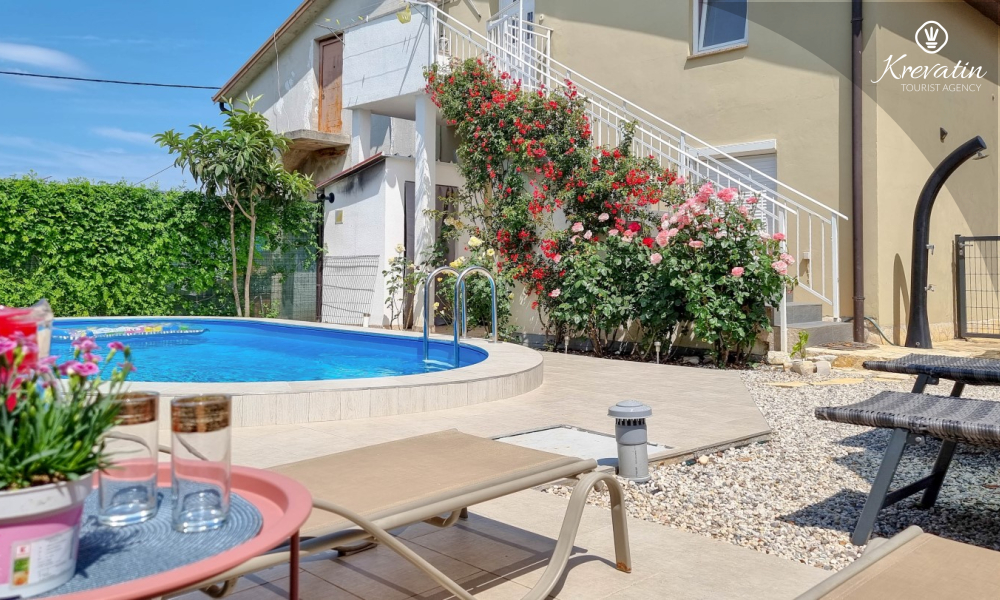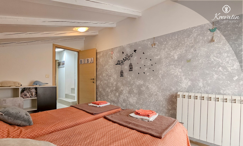 Benvenuti nel nostro grazioso appartamento a Juricani, un luogo idilliaco vicino a Umago, perfetto per rilassarsi e godersi la bellezza naturale dell'Istria. Situato al primo piano di una villa bifamiliare, questo spazioso appartamento può ospitare fino a 5 persone, offrendo la sistemazione ideale per famiglie o piccoli gruppi di amici.