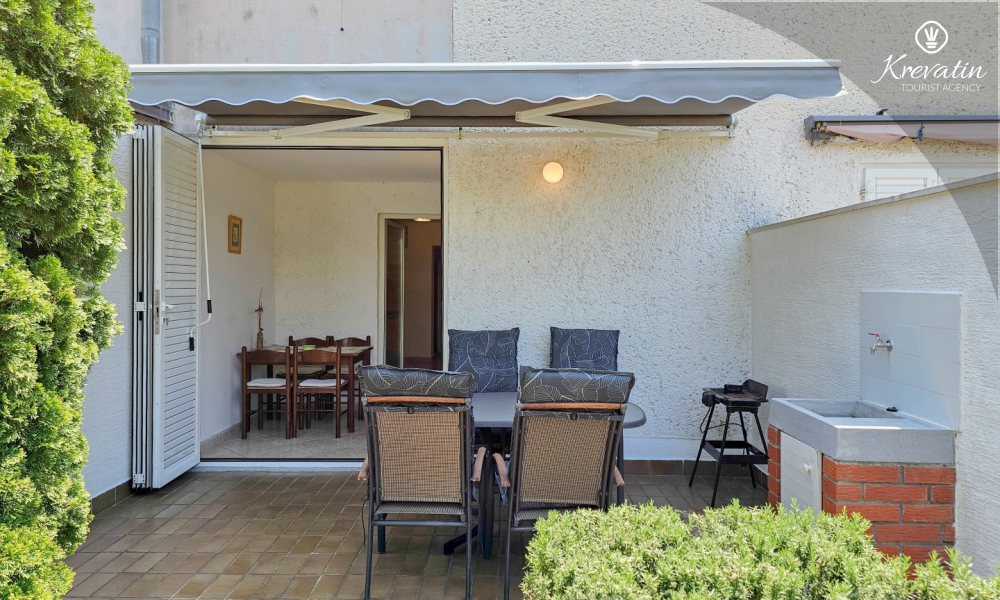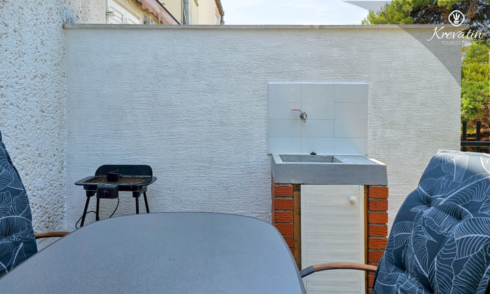 Uno dei vantaggi di questo appartamento è la sua vicinanza al mare. Puoi goderti l'aria fresca e gli odori del Mediterraneo perché la spiaggia è a pochi minuti a piedi. Inoltre, l'appartamento dispone di un piccolo cortile con barbecue, dove è possibile preparare deliziosi pasti all'aperto e rilassarsi con la famiglia o gli amici.