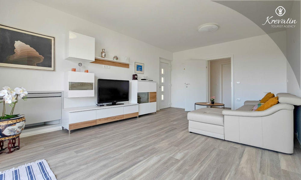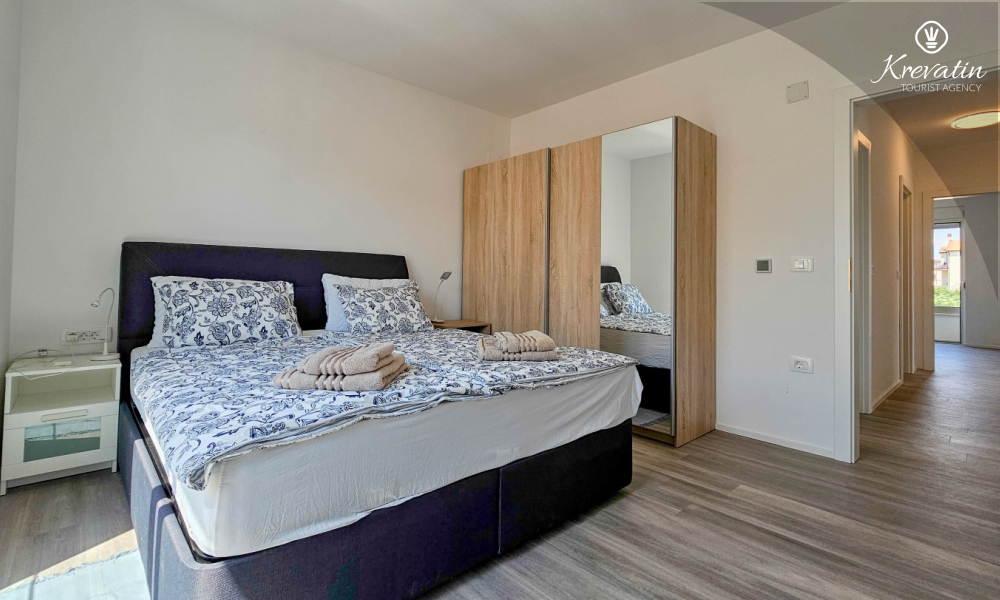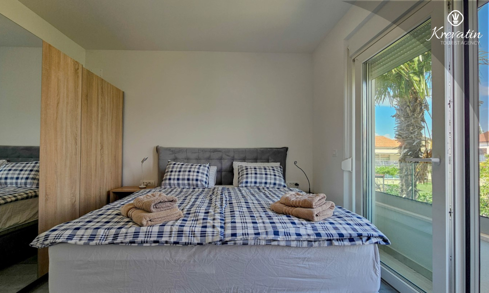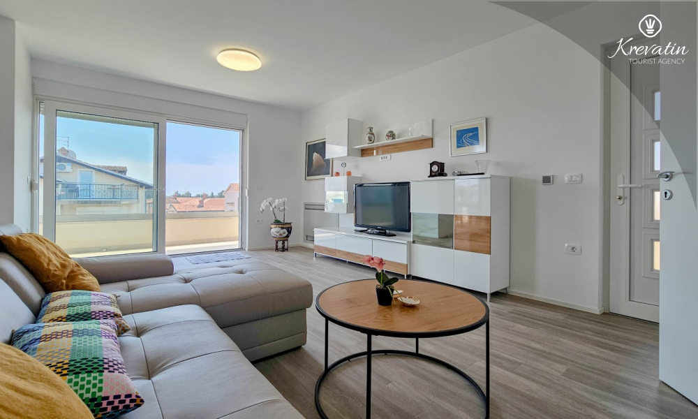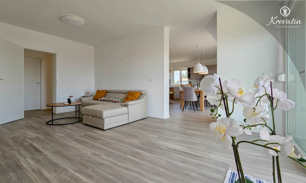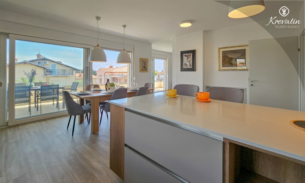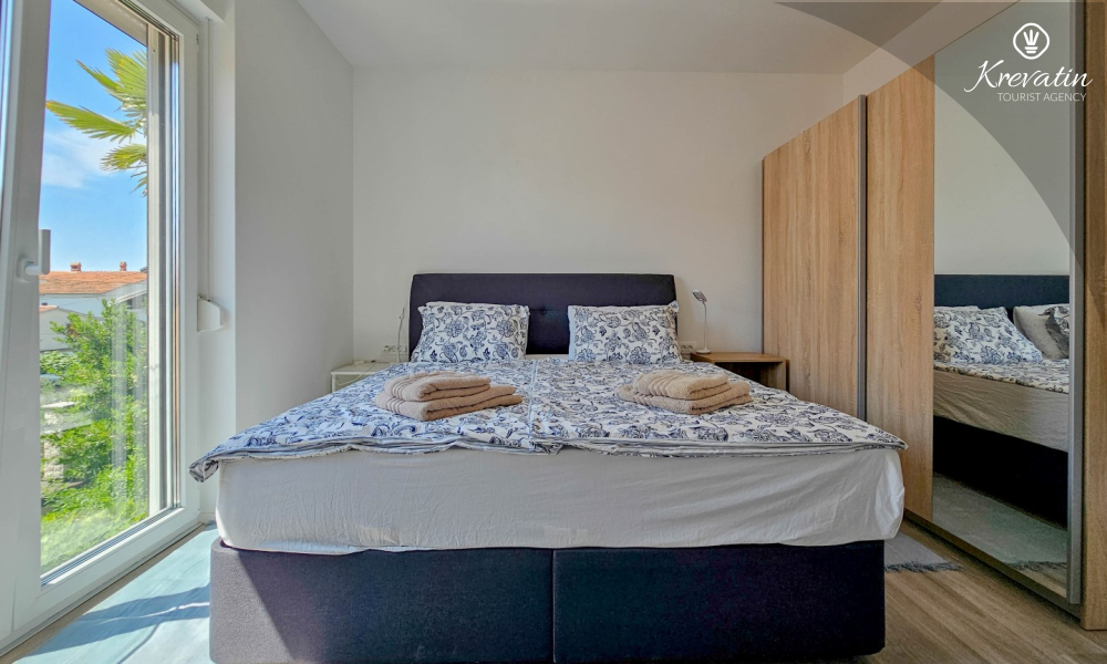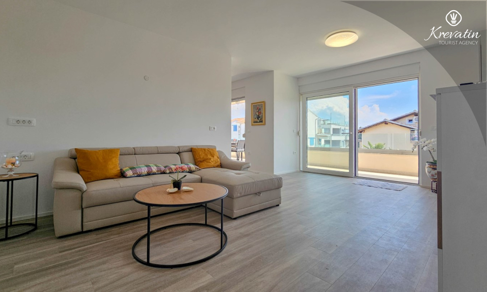 Scopri il comfort e lo stile contemporaneo nel nostro appartamento situato al secondo piano di una casa a Cittanova. Completamente ristrutturato, questo appartamento offre spazi appena arredati con tocchi moderni. Dispone di due comode camere da letto con letti matrimoniali e un divano letto che offre posti letto aggiuntivi per altre due persone. Goditi un soggiorno splendidamente decorato e una cucina completamente attrezzata che soddisferà tutte le tue esigenze. In termini di comfort e praticità, l'appartamento dispone di due bagni per garantire privacy e comodità a tutti gli ospiti. Il nostro balcone con comodi posti a sedere ti dà l'opportunità di goderti l'aria fresca e goderti la vista dei dintorni. Benvenuti nel nostro appartamento a Cittanova, la scelta ideale per un soggiorno rilassante e confortevole. Nota: nel periodo dal 01.10. fino al 01.04. questo appartamento può essere prenotato per un periodo più lungo (mensile) ad un prezzo speciale. Contattateci per maggiori informazioni.