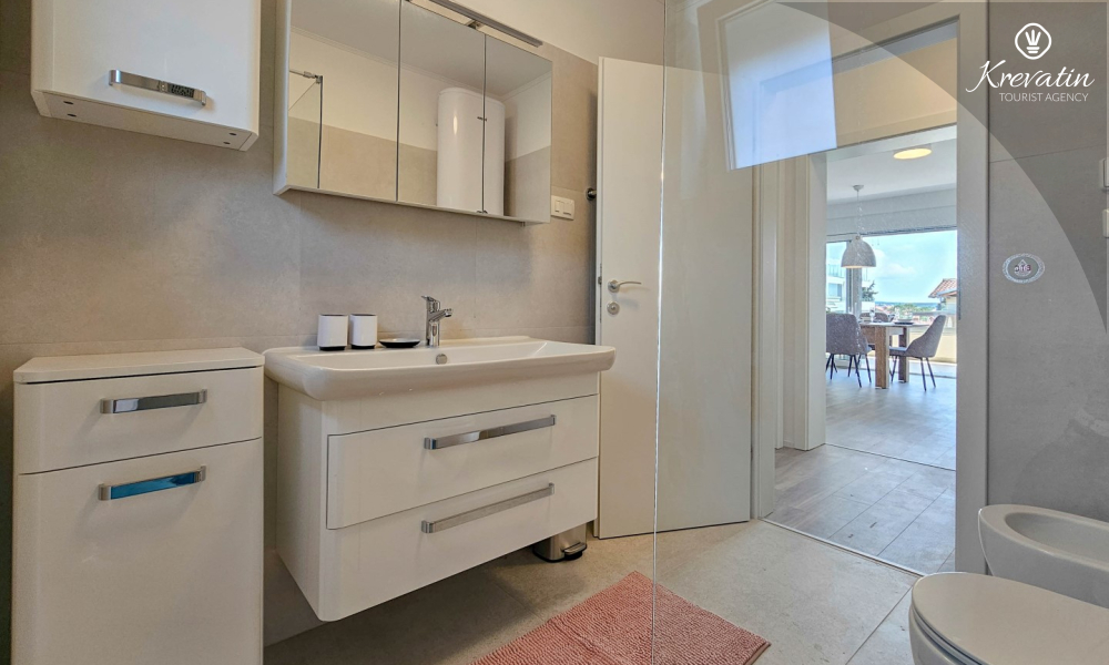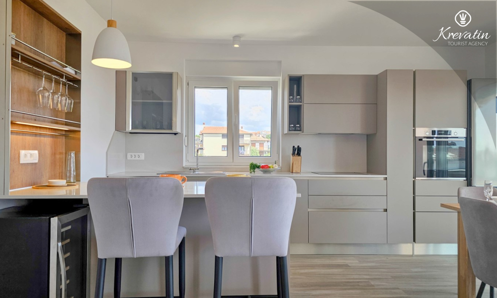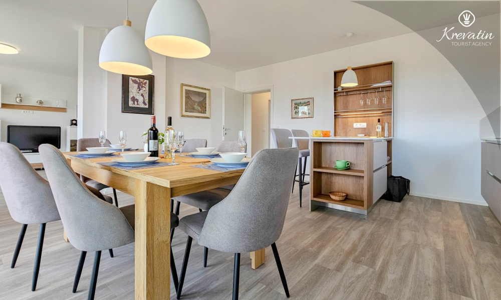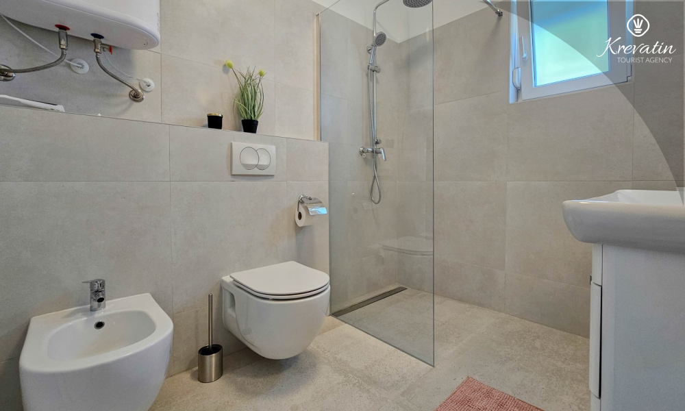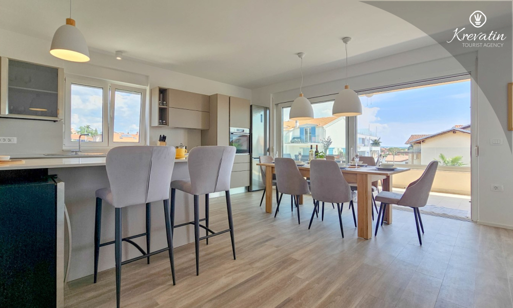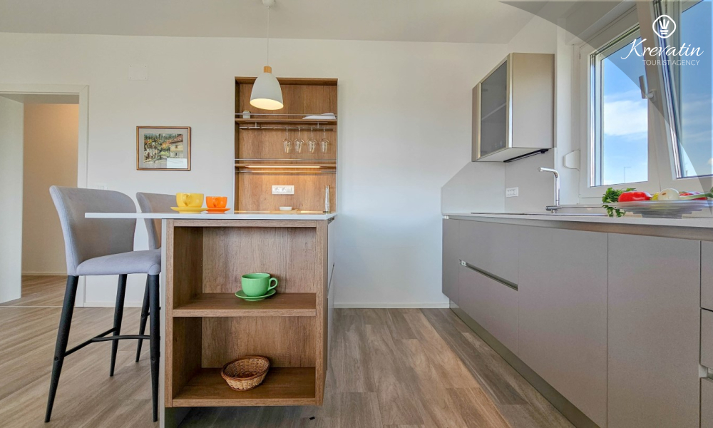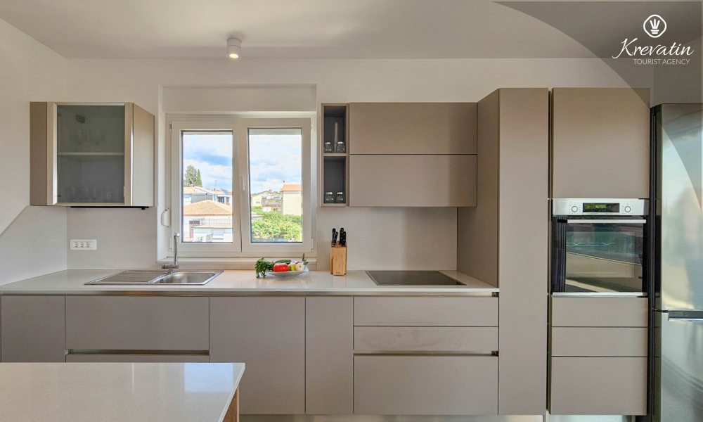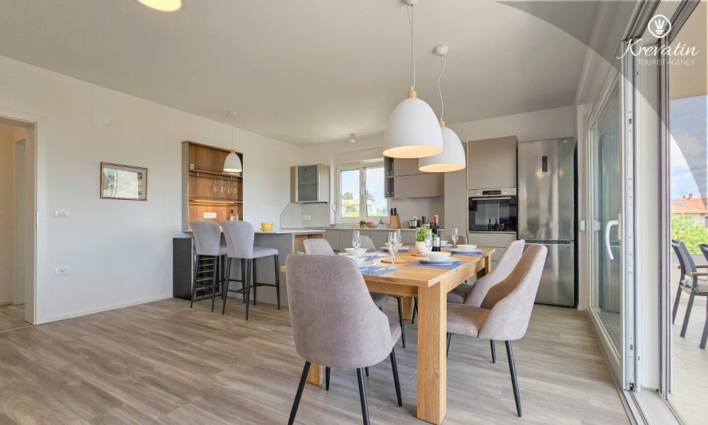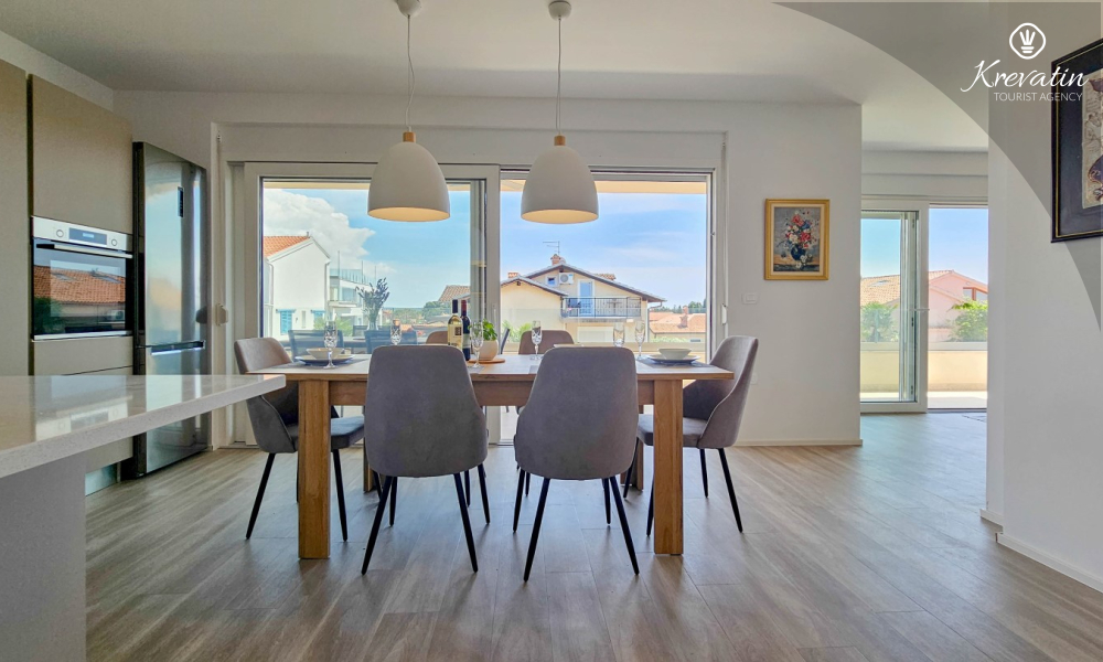 Scopri il comfort e lo stile contemporaneo nel nostro appartamento situato al secondo piano di una casa a Cittanova. Completamente ristrutturato, questo appartamento offre spazi appena arredati con tocchi moderni. Dispone di due comode camere da letto con letti matrimoniali e un divano letto che offre posti letto aggiuntivi per altre due persone. Goditi un soggiorno splendidamente decorato e una cucina completamente attrezzata che soddisferà tutte le tue esigenze. In termini di comfort e praticità, l'appartamento dispone di due bagni per garantire privacy e comodità a tutti gli ospiti. Il nostro balcone con comodi posti a sedere ti dà l'opportunità di goderti l'aria fresca e goderti la vista dei dintorni. Benvenuti nel nostro appartamento a Cittanova, la scelta ideale per un soggiorno rilassante e confortevole. Nota: nel periodo dal 01.10. fino al 01.04. questo appartamento può essere prenotato per un periodo più lungo (mensile) ad un prezzo speciale. Contattateci per maggiori informazioni.