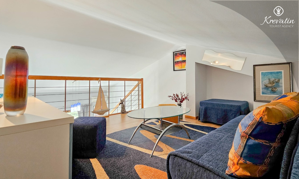 Inoltre, sul soppalco al piano superiore si trova un'area salotto che può essere trasformata in un letto supplementare per altre 2 persone.