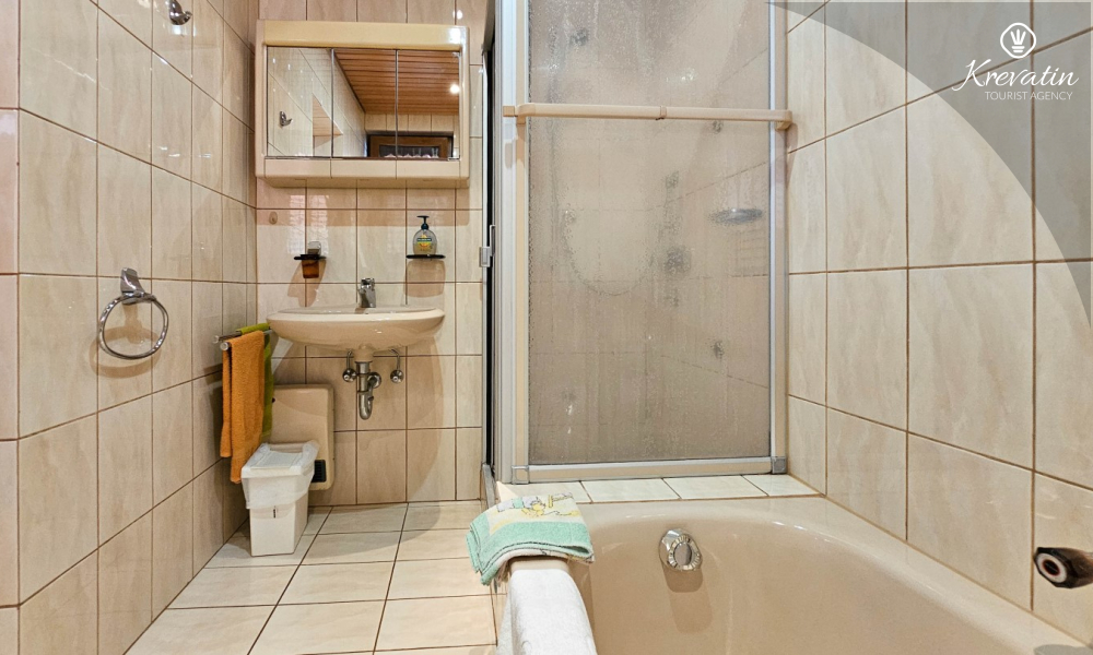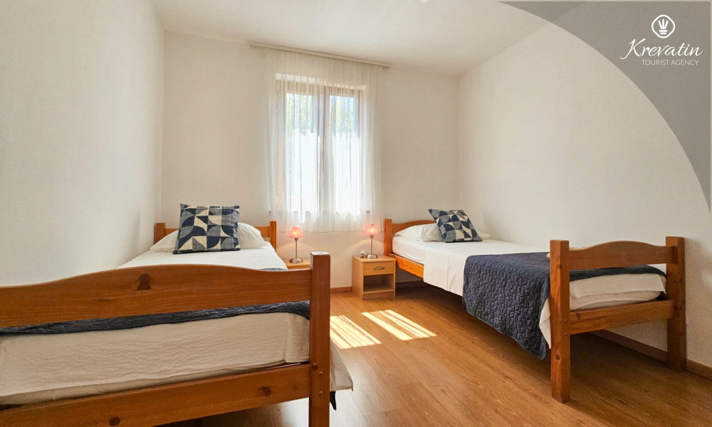 L'appartamento dispone di 2 comode camere da letto, un ampio soggiorno e una cucina con sala da pranzo. La cucina è dotata di tutto il necessario per facilitare la preparazione dei pasti con ingredienti freschi locali. Il bagno è dotato di cabina doccia, vasca e WC per un comfort extra. Una spaziosa terrazza con tavolo e sedie vi regalerà momenti di relax con un caffè mattutino o incontri serali.
