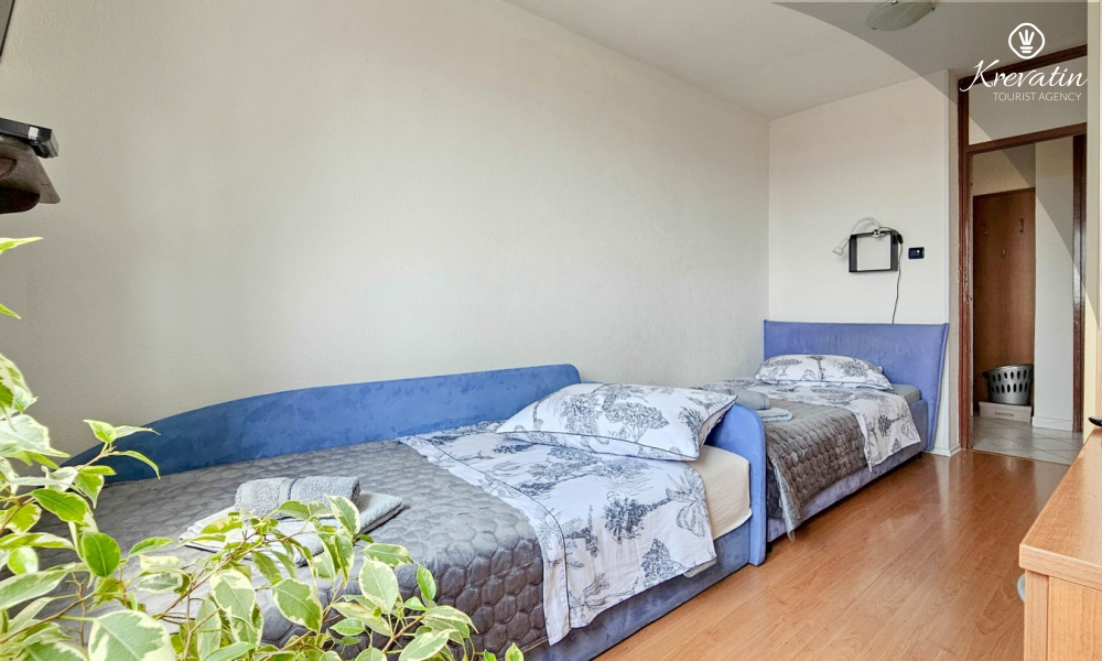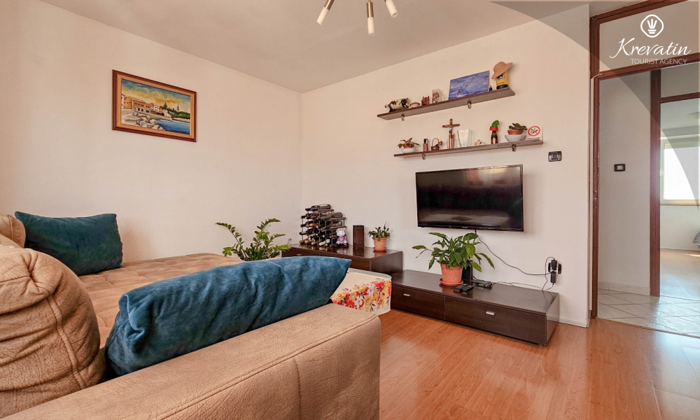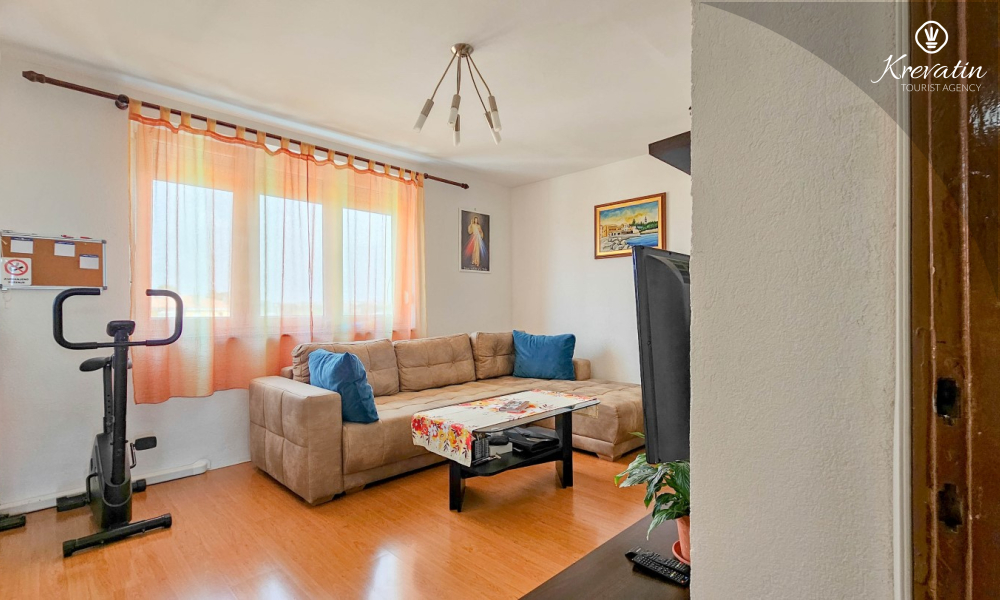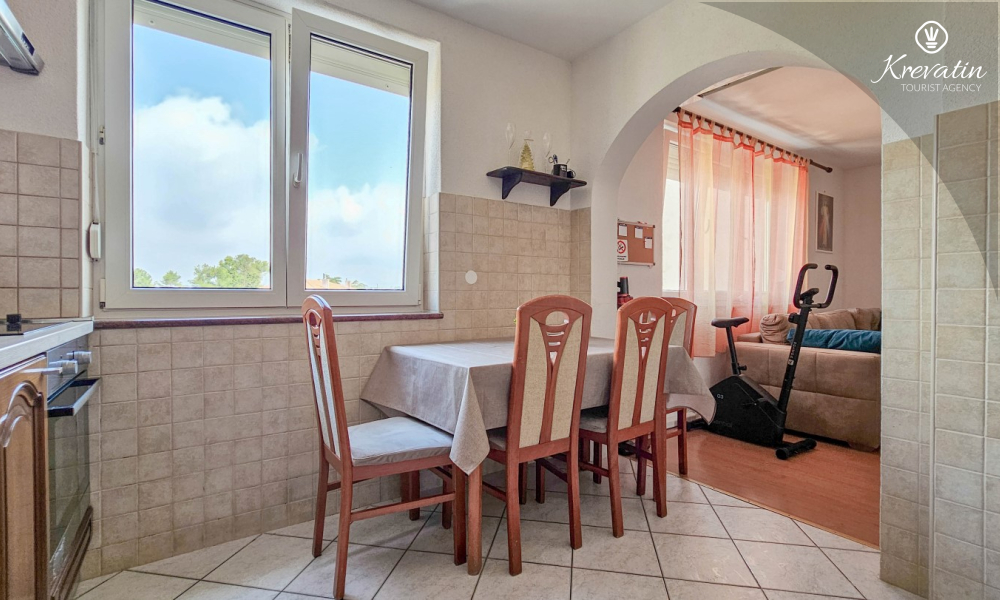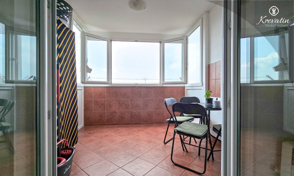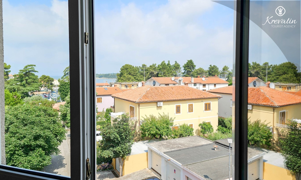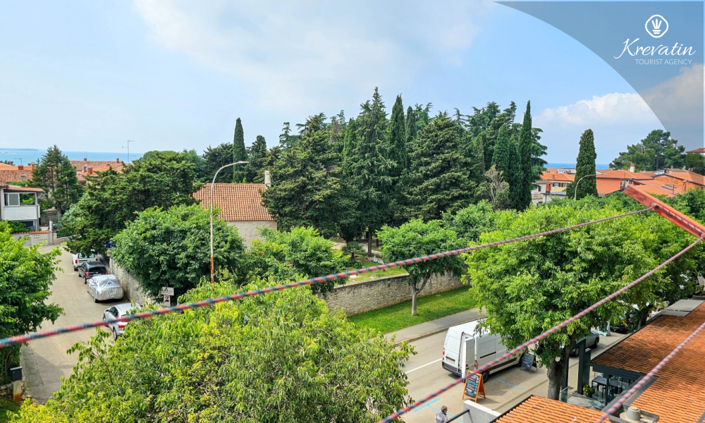 Situato al terzo piano di un edificio residenziale nel centro di Cittanova, questo arioso appartamento può ospitare comodamente fino a 4 persone.