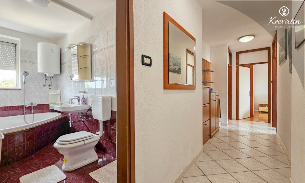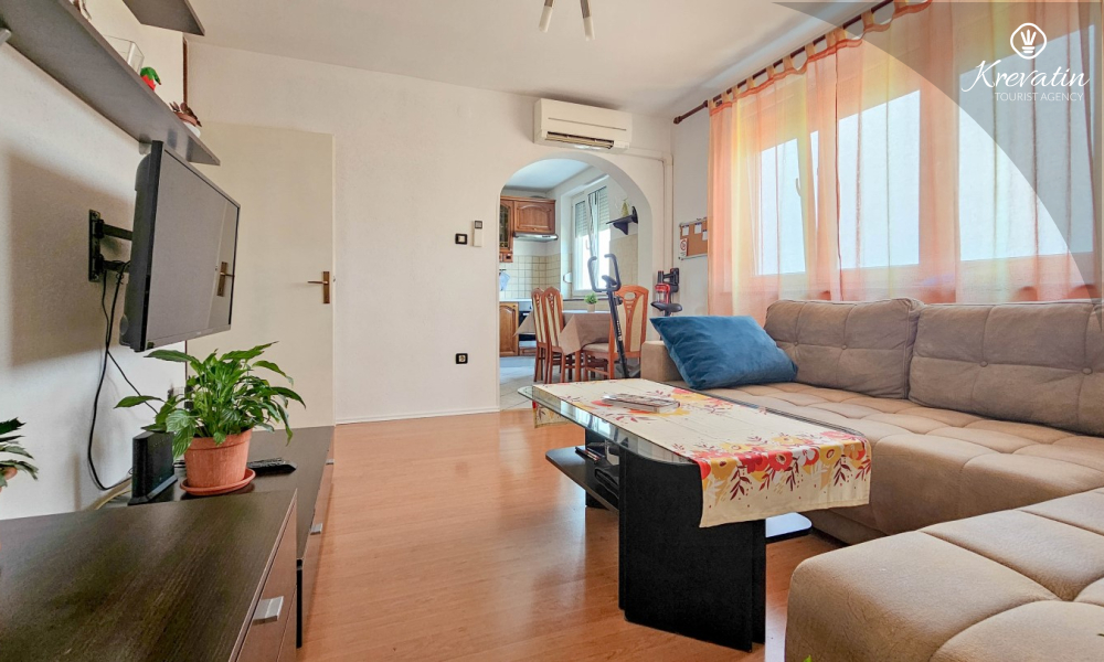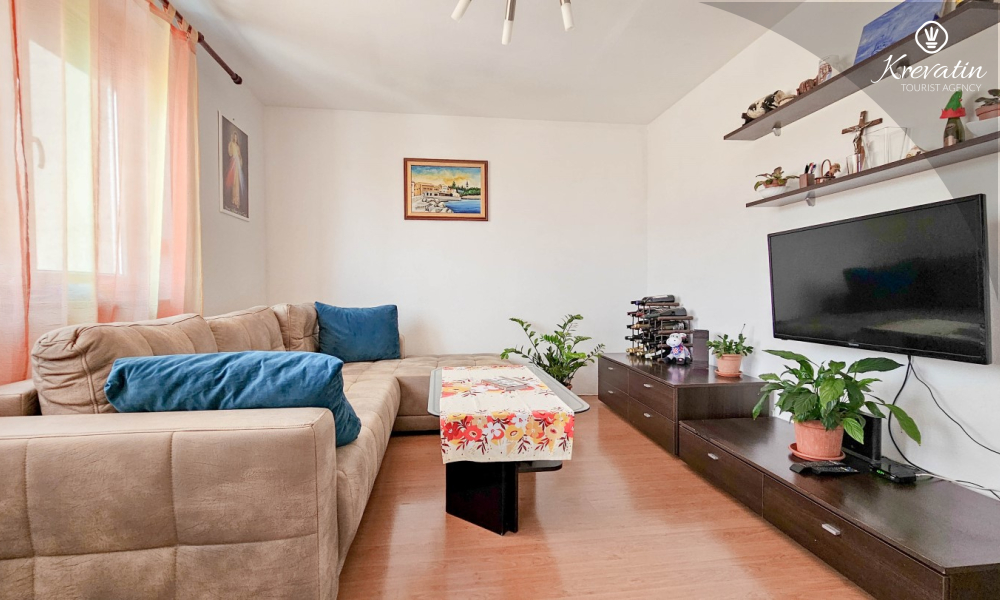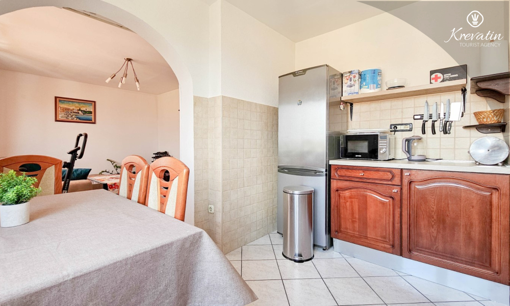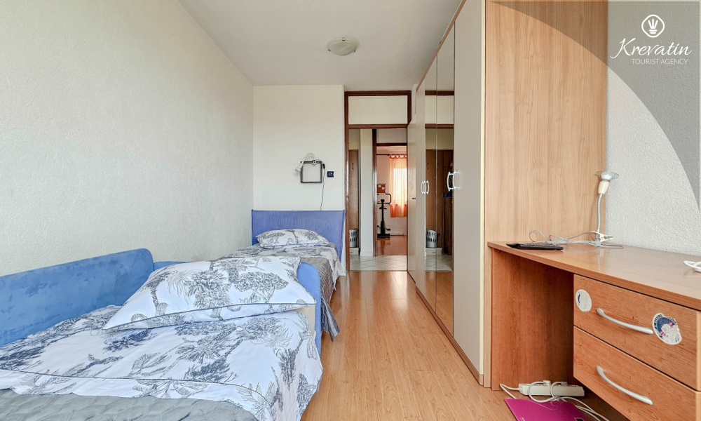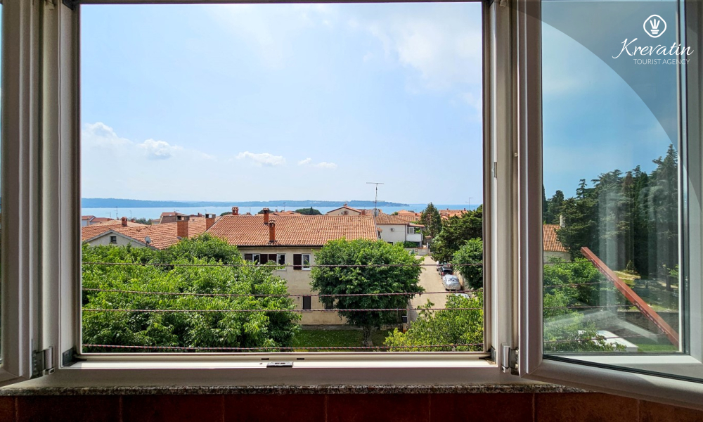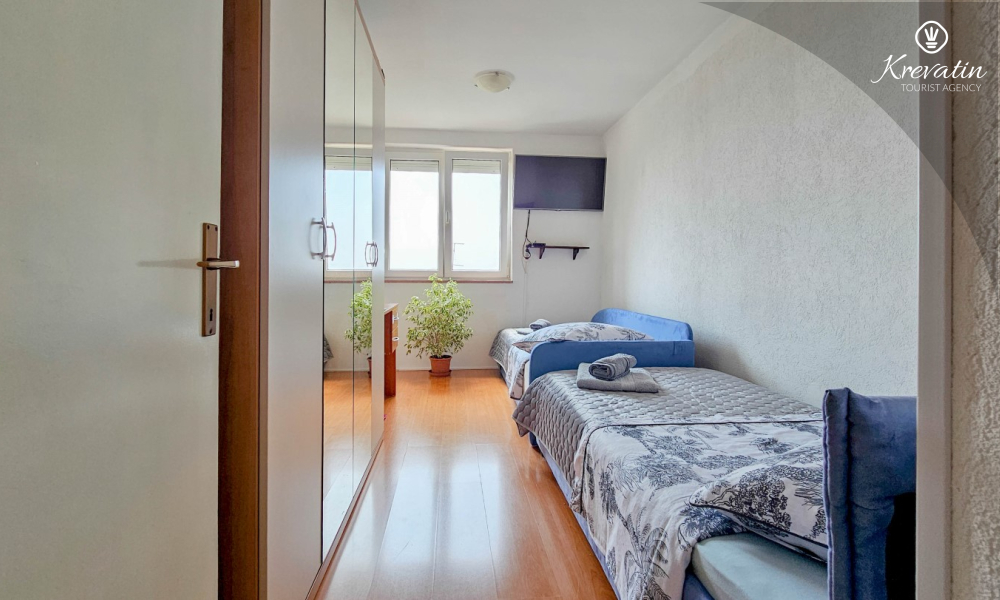 Situato al terzo piano di un edificio residenziale nel centro di Cittanova, questo arioso appartamento può ospitare comodamente fino a 4 persone.