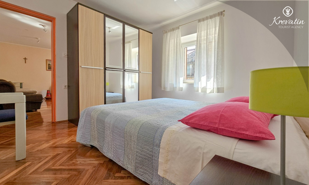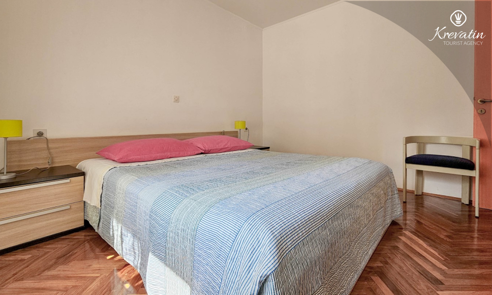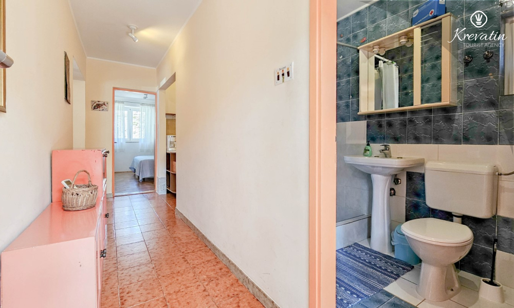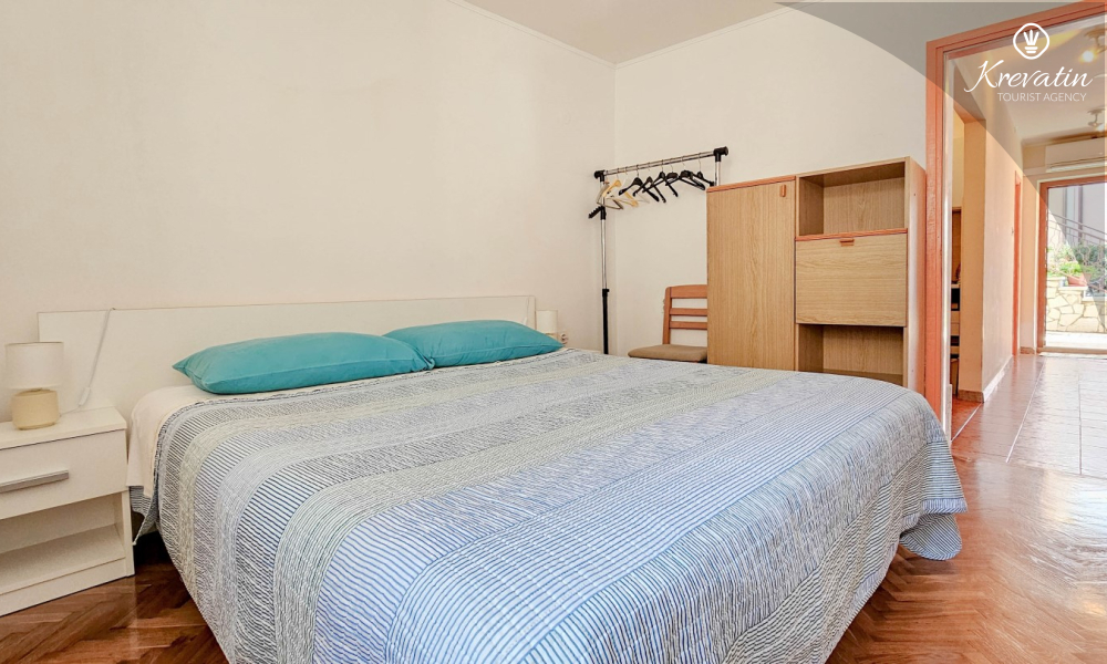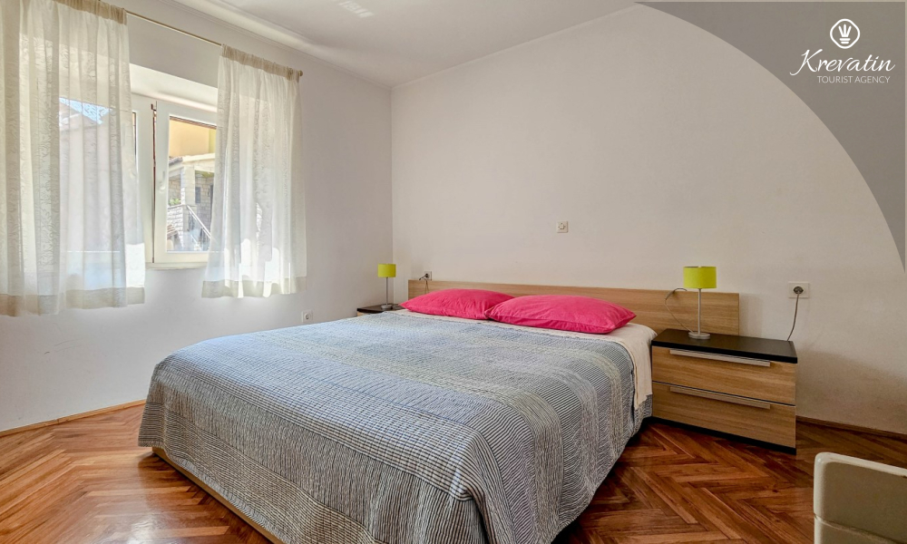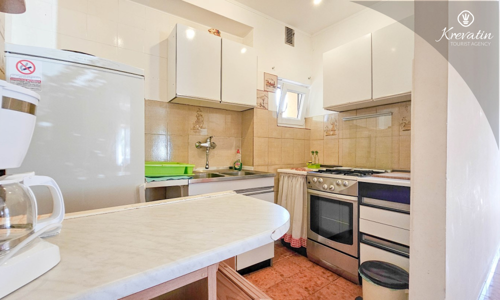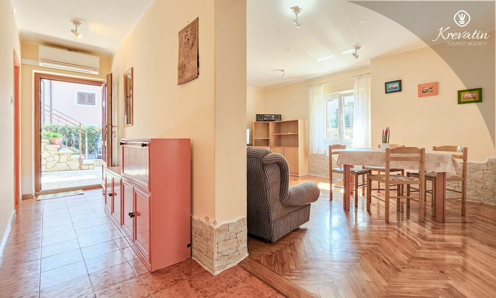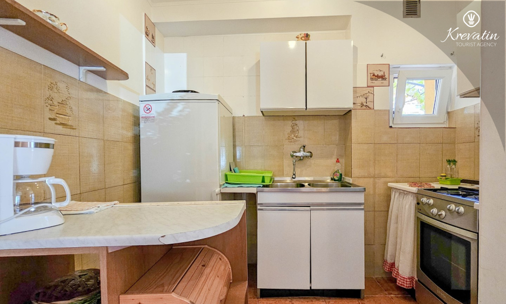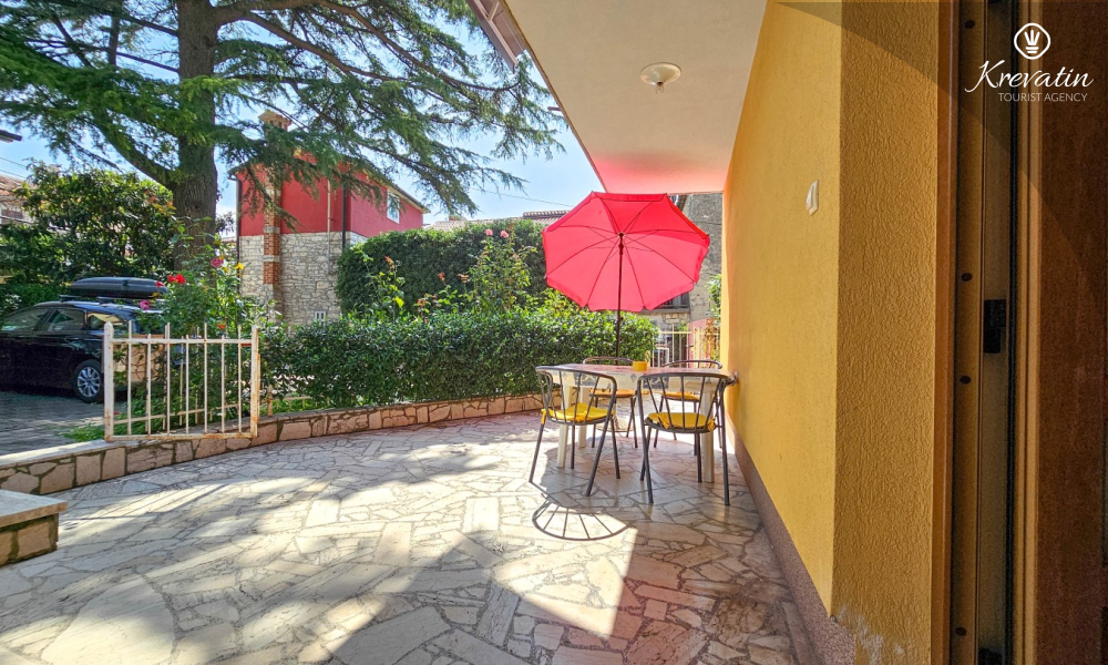 L'appartamento si trova al piano terra di una casa familiare e dispone di 2 camere da letto con letti matrimoniali, un soggiorno con zona pranzo, una cucina attrezzata con servizi di base e un bagno con doccia e WC. C'è anche un'ampia terrazza con tavolo e sedie, il luogo perfetto per il caffè del mattino o per il relax serale.