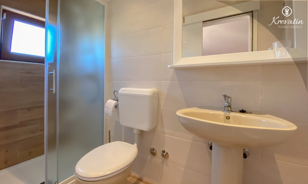 L'appartamento dispone di due comode camere da letto, ciascuna con il proprio bagno con doccia e WC, che garantisce privacy e comfort a tutti gli ospiti. La cucina con sala da pranzo è dotata di tutto l'essenziale per la preparazione dei pasti ed è ideale per cene in famiglia o per uscire con gli amici.