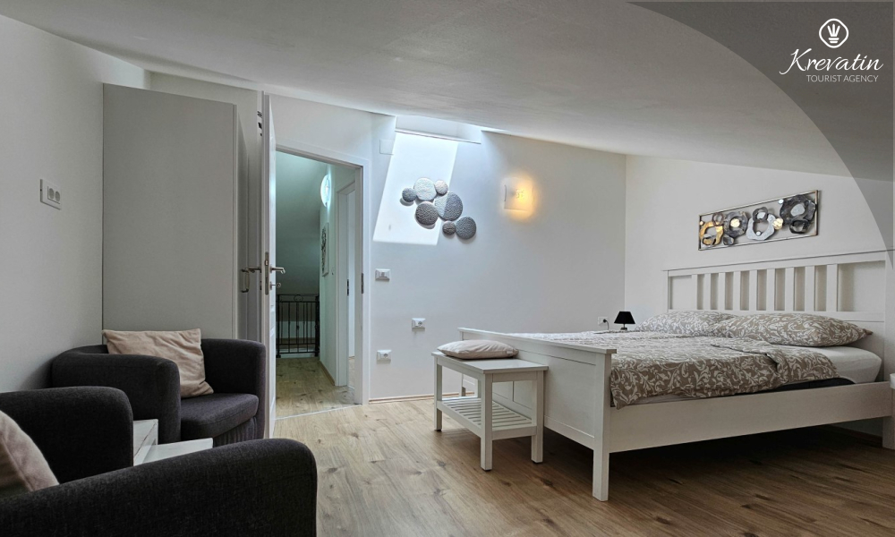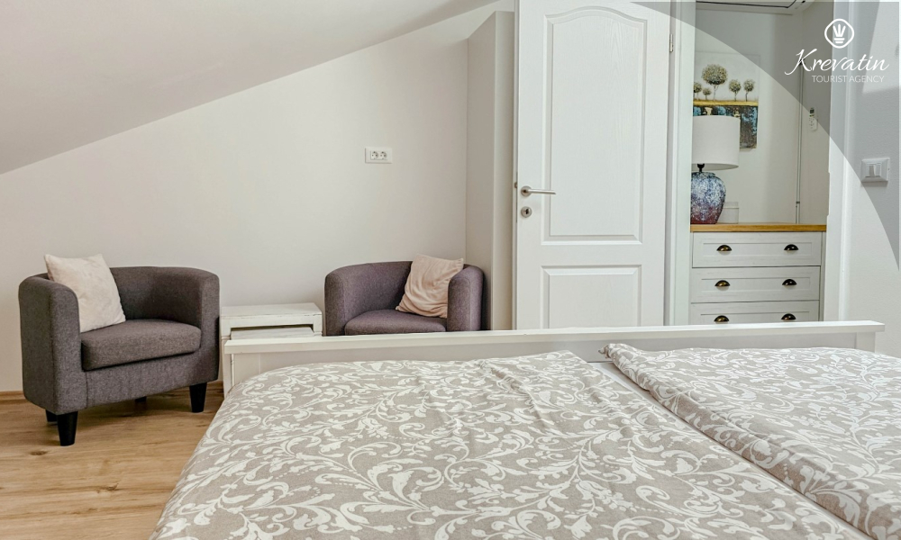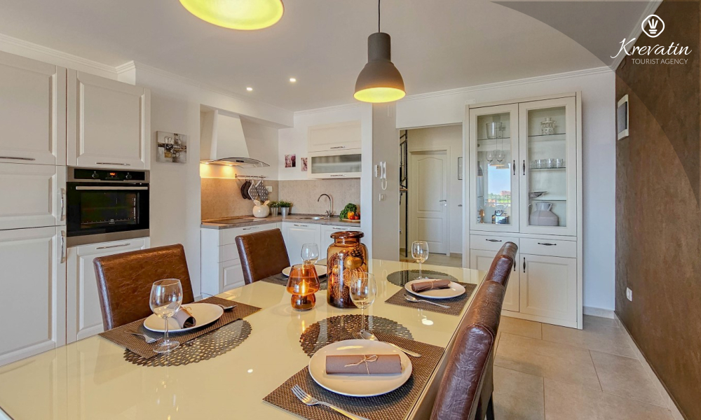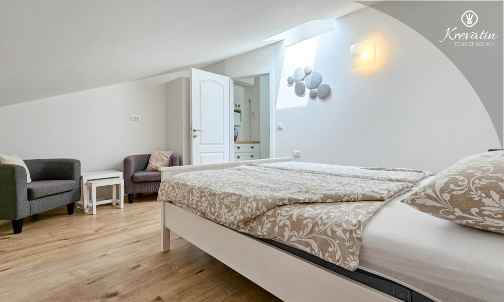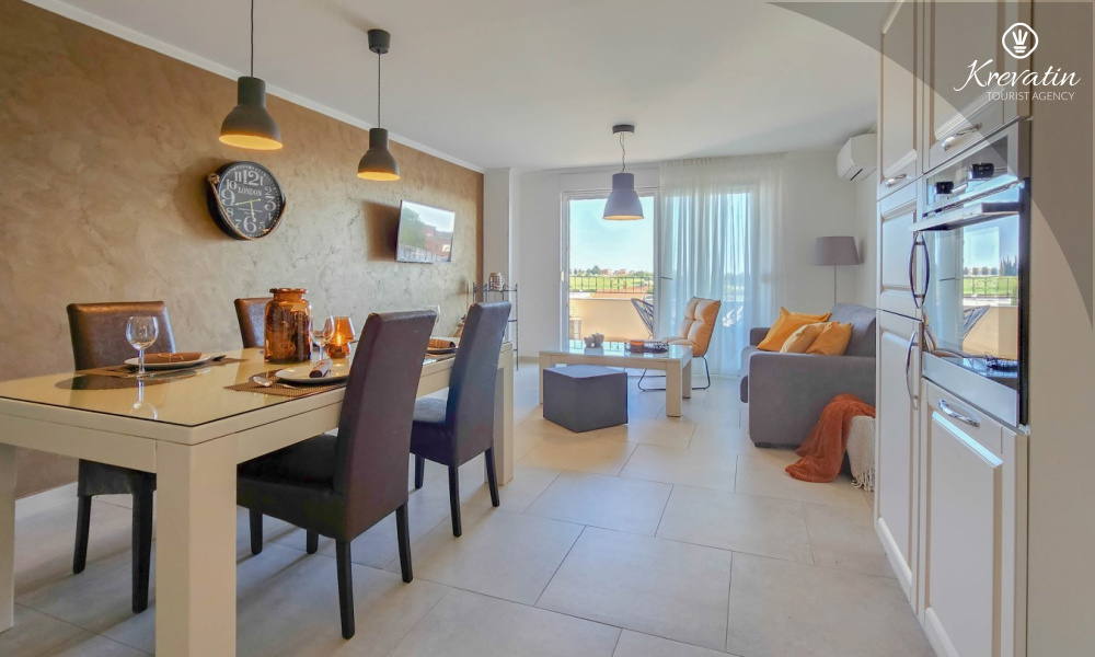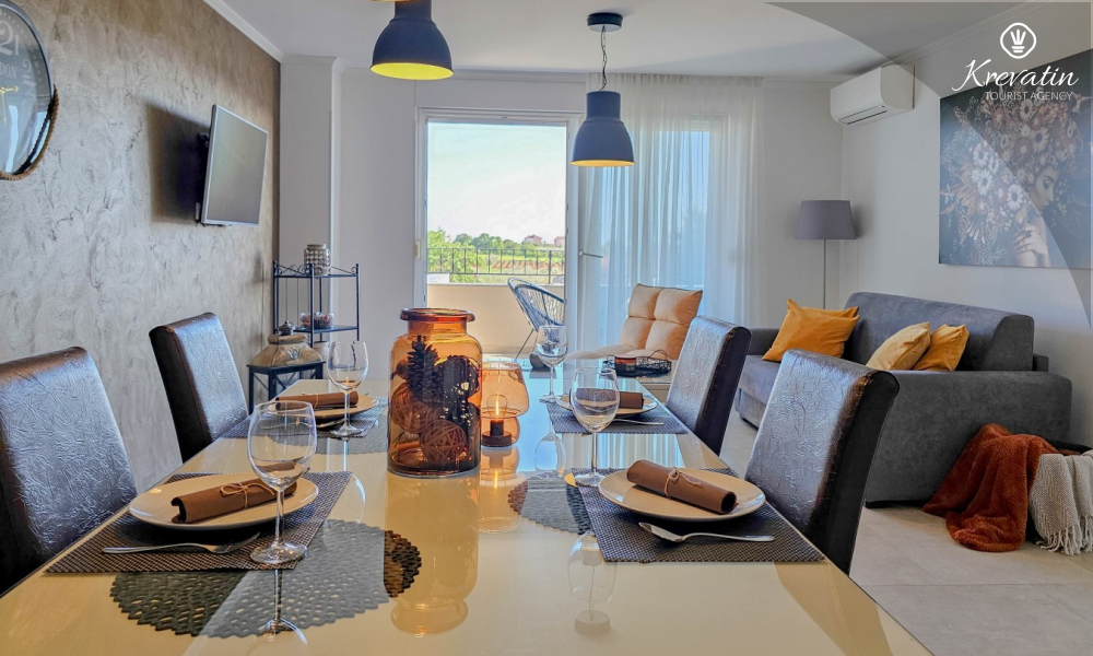 Questo spazioso appartamento per 4 persone si trova a Cittanova, in Istria, si sviluppa su due piani (primo e secondo) e offre una sistemazione confortevole per il vostro soggiorno.