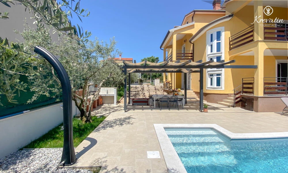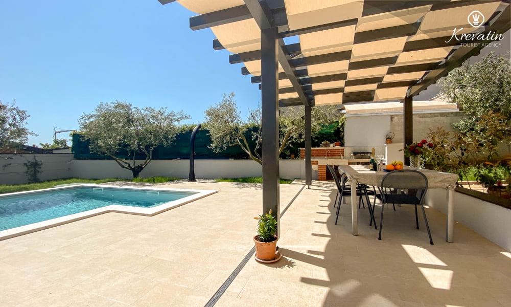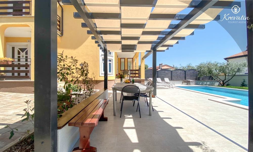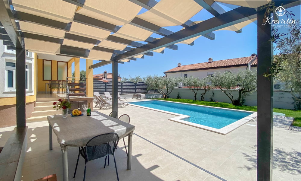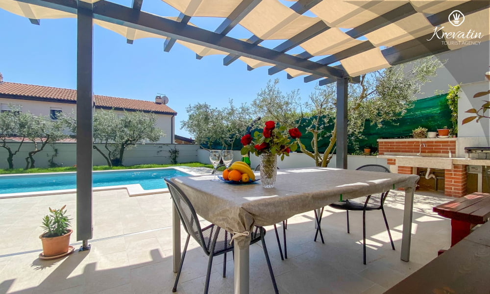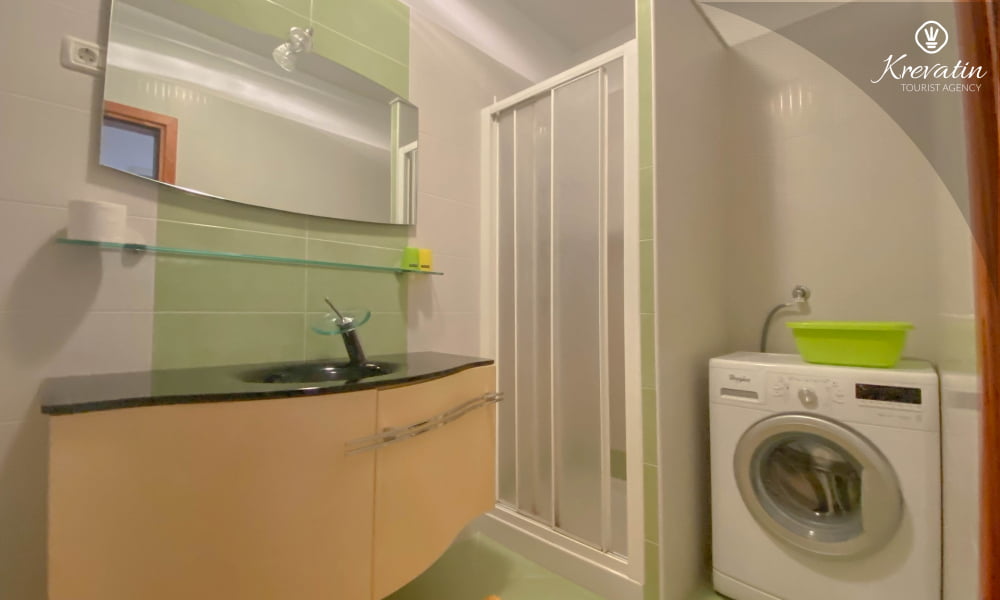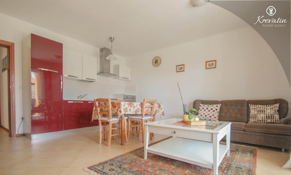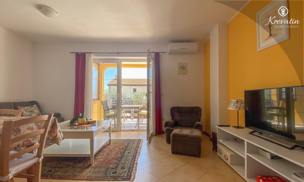 Questo appartamento per 4 persone si trova al piano terra ed è composto da due camere da letto, un soggiorno e una cucina. La cucina è attrezzata con fornelli a gas/elettrici, forno, microonde, lavastoviglie, frigorifero e caffettiera. Inoltre c'è un bagno con doccia e servizi igienici e una bella terrazza con mobili. C'è anche una terrazza con barbecue e una piscina ad uso comune. SAT-TV, aria condizionata, WLAN, biancheria da letto e da bagno sono inclusi nel prezzo.