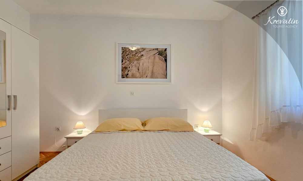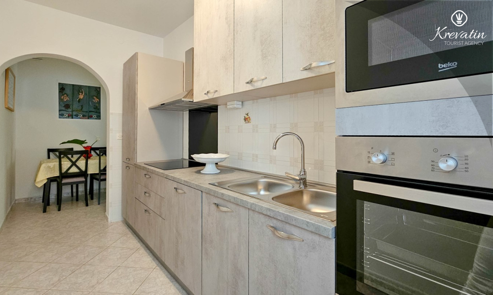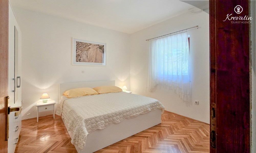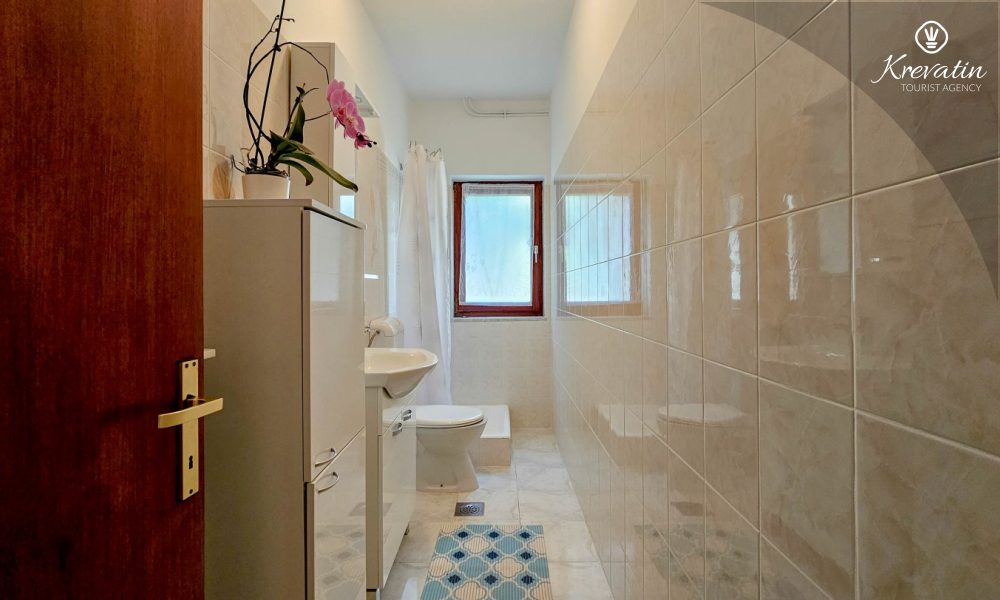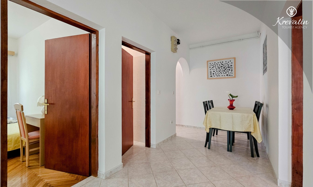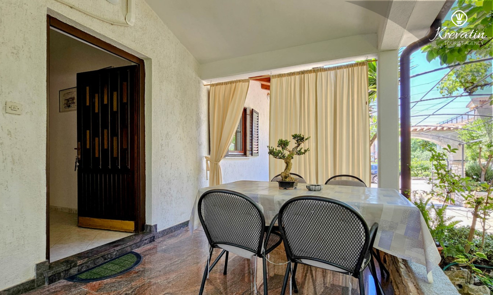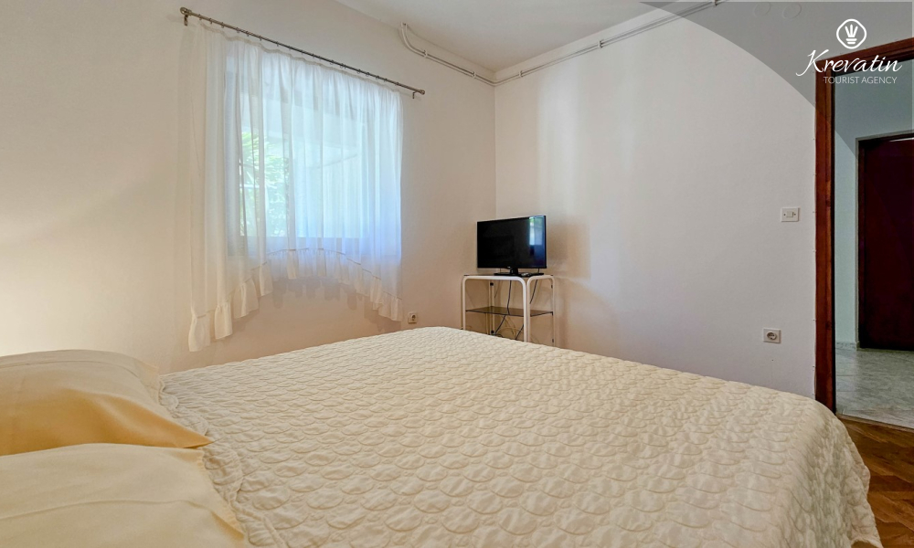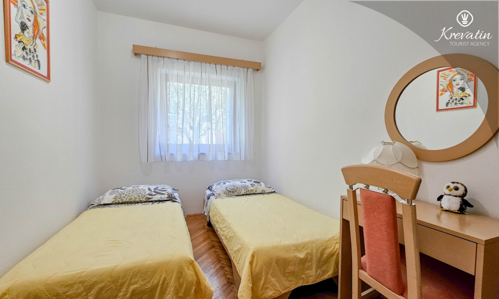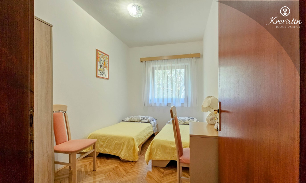 Si trova al piano terra di una casa familiare ed è composto da due camere da letto, una cucina funzionale con sala da pranzo dotata di servizi di base e un bagno con doccia e WC. L'appartamento dispone di una terrazza coperta con mobili da giardino e gli ospiti possono anche utilizzare un giardino in comune con barbecue, perfetto per le riunioni estive all'ombra.