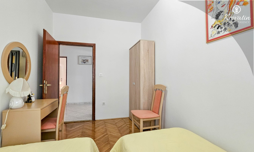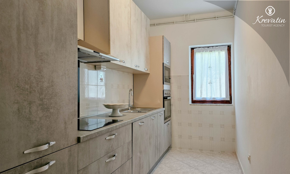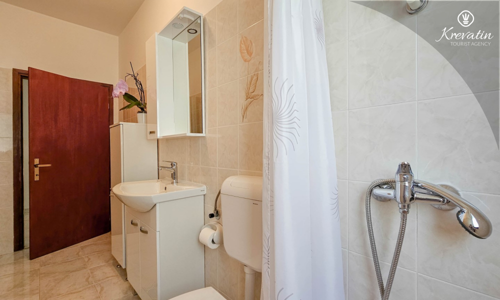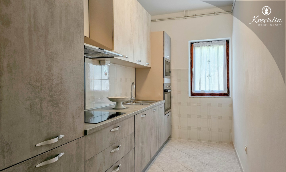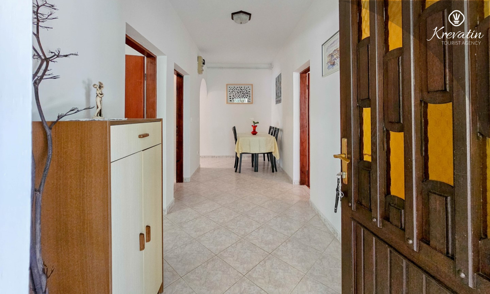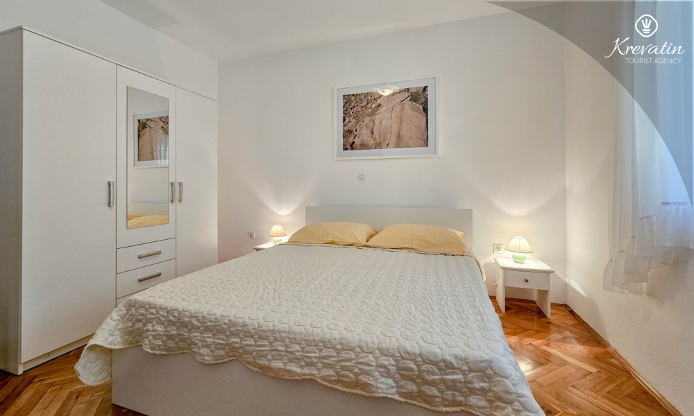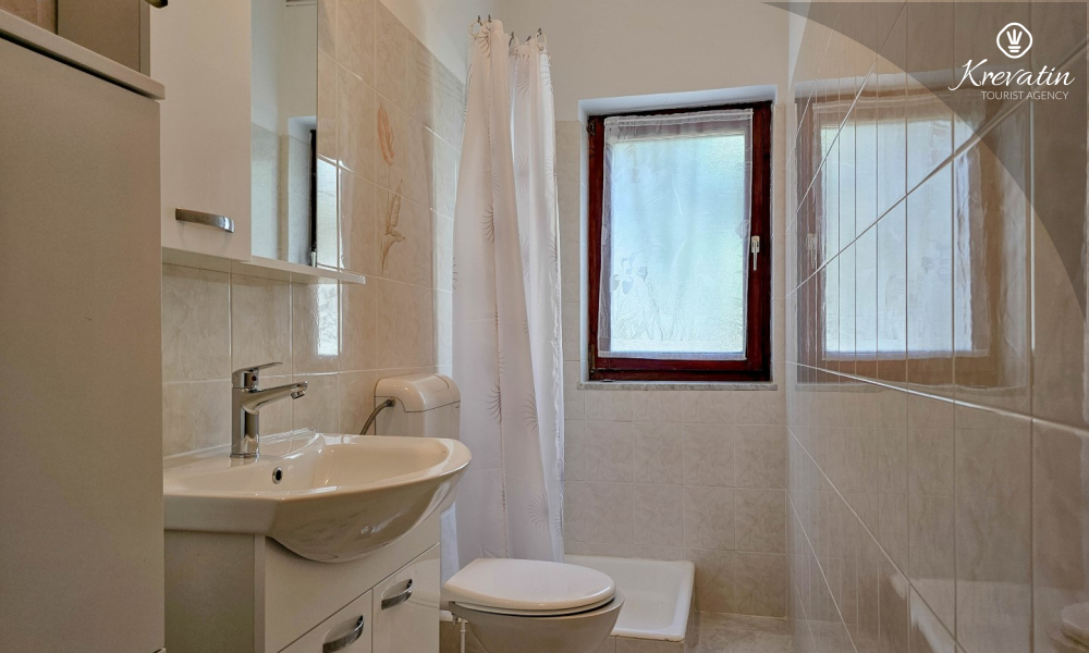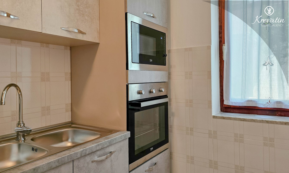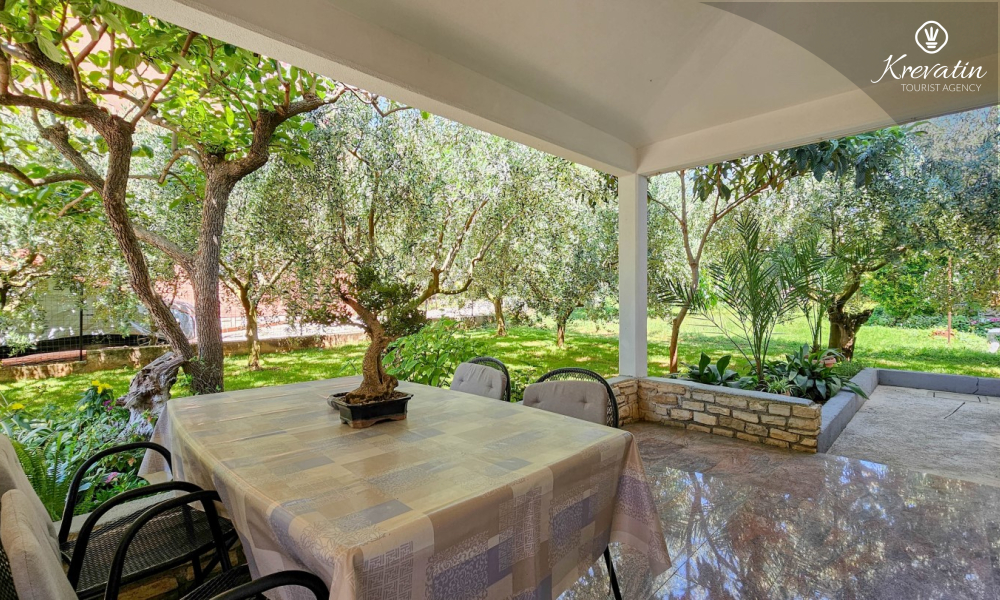Si trova al piano terra di una casa familiare ed è composto da due camere da letto, una cucina funzionale con sala da pranzo dotata di servizi di base e un bagno con doccia e WC. L'appartamento dispone di una terrazza coperta con mobili da giardino e gli ospiti possono anche utilizzare un giardino in comune con barbecue, perfetto per le riunioni estive all'ombra.