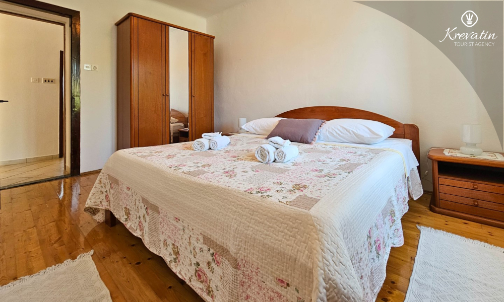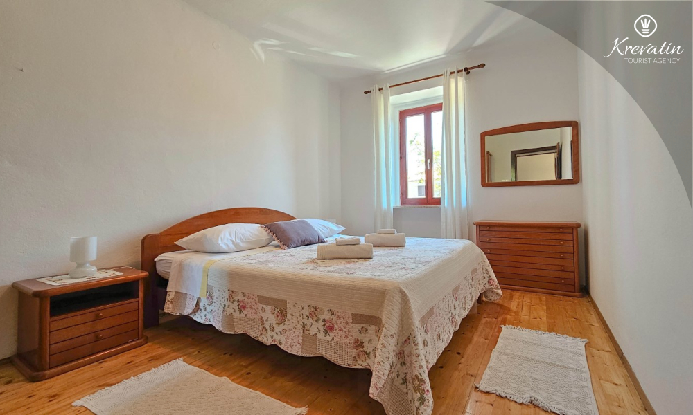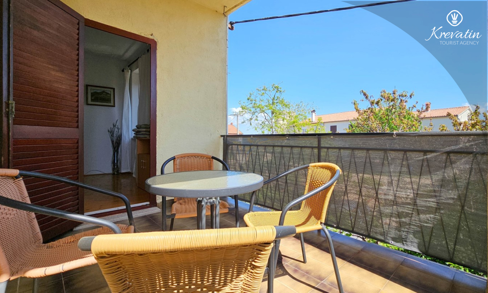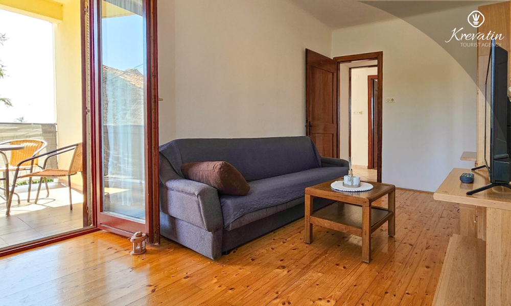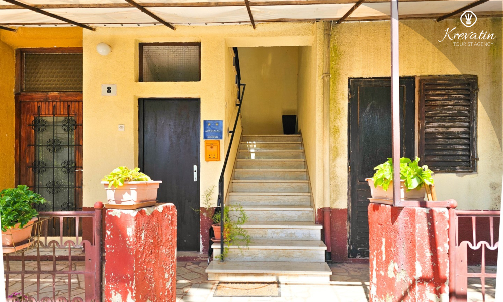 Situato al primo piano della casa, è composto da due camere da letto, un soggiorno e una cucina funzionale attrezzata con tutto il necessario per preparare i pasti. Dispone inoltre di un bagno con doccia e WC e di un balcone con tavolo e sedie, ideale per un caffè mattutino o per rilassarsi all'aria aperta la sera.