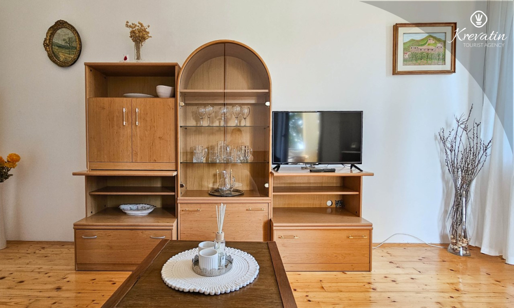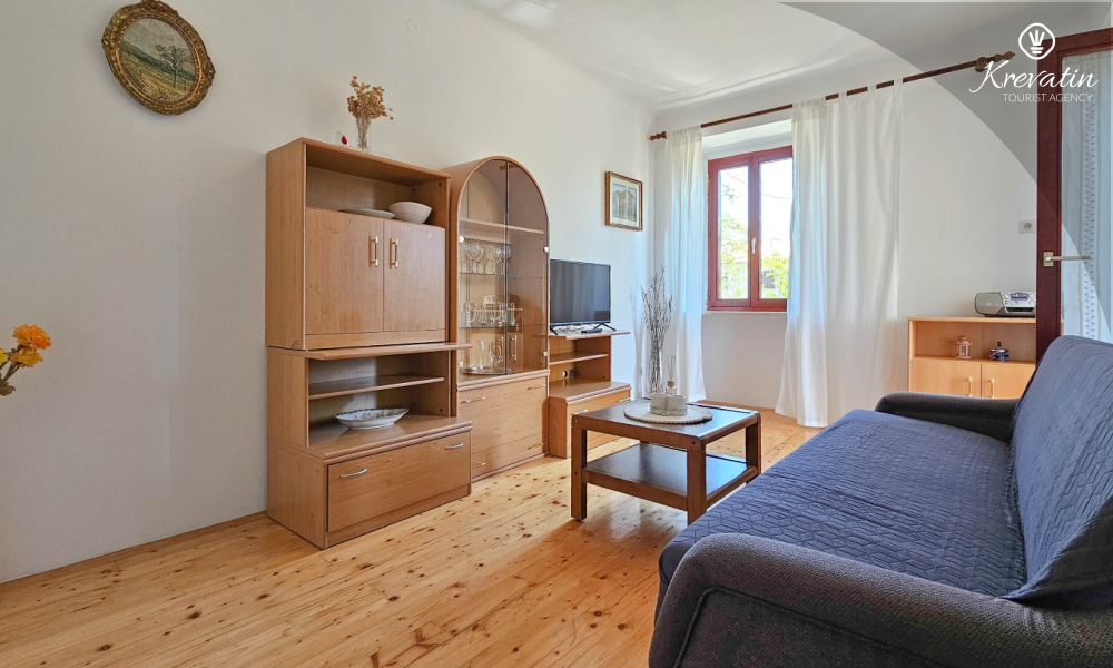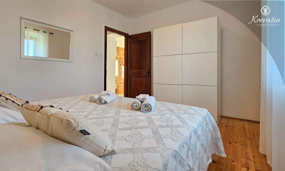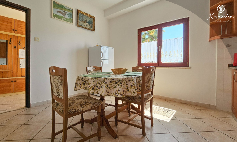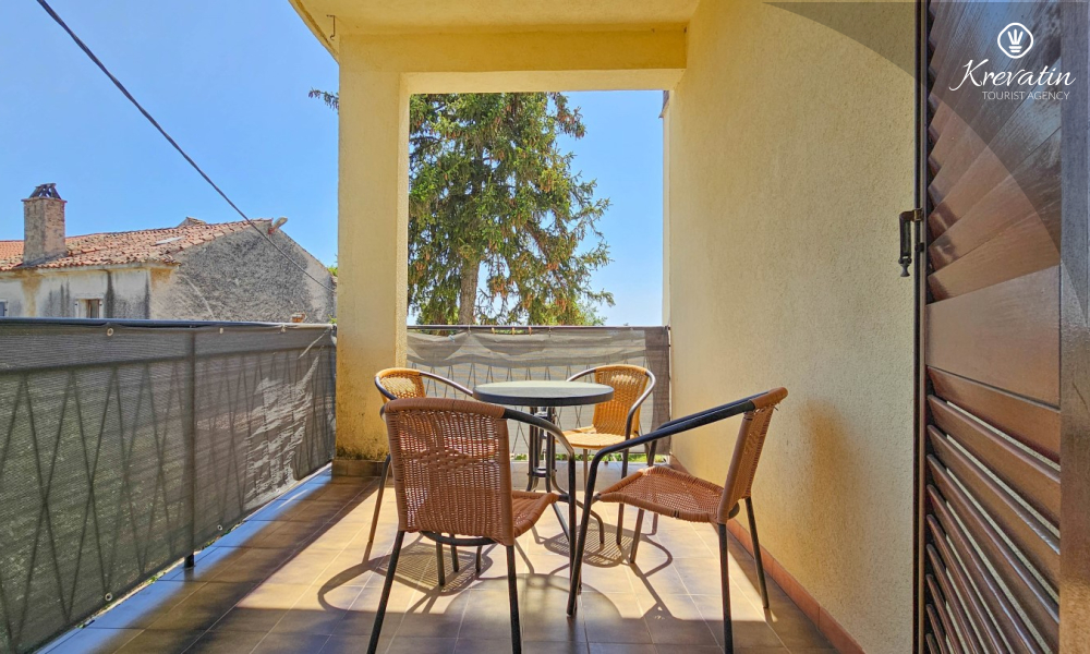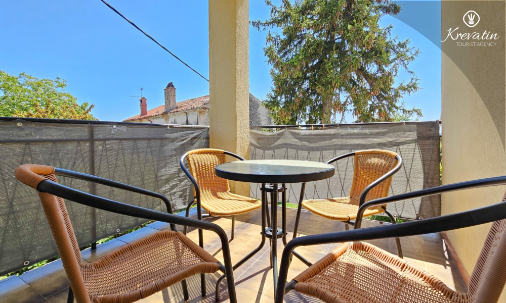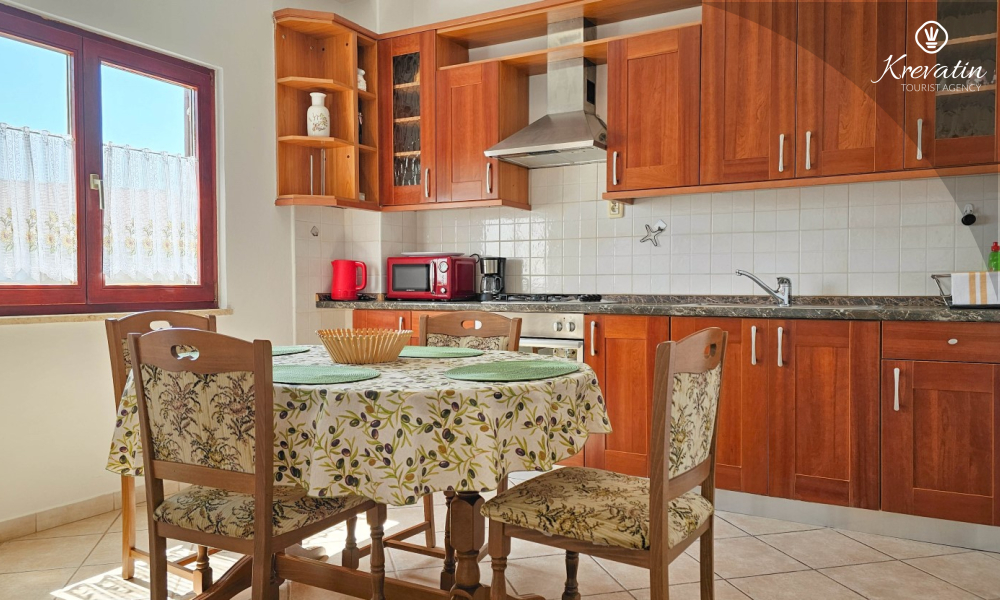 Immerso nel verde del tranquillo quartiere di Mareda, questo appartamento per quattro persone offre tutto il necessario per una vacanza rilassante sulla costa istriana.