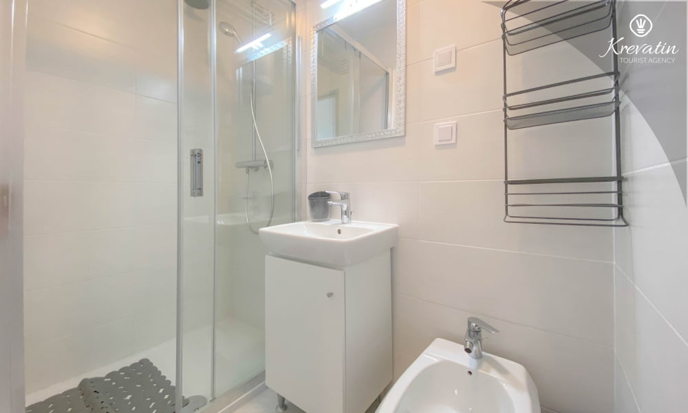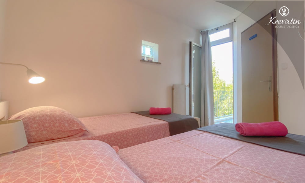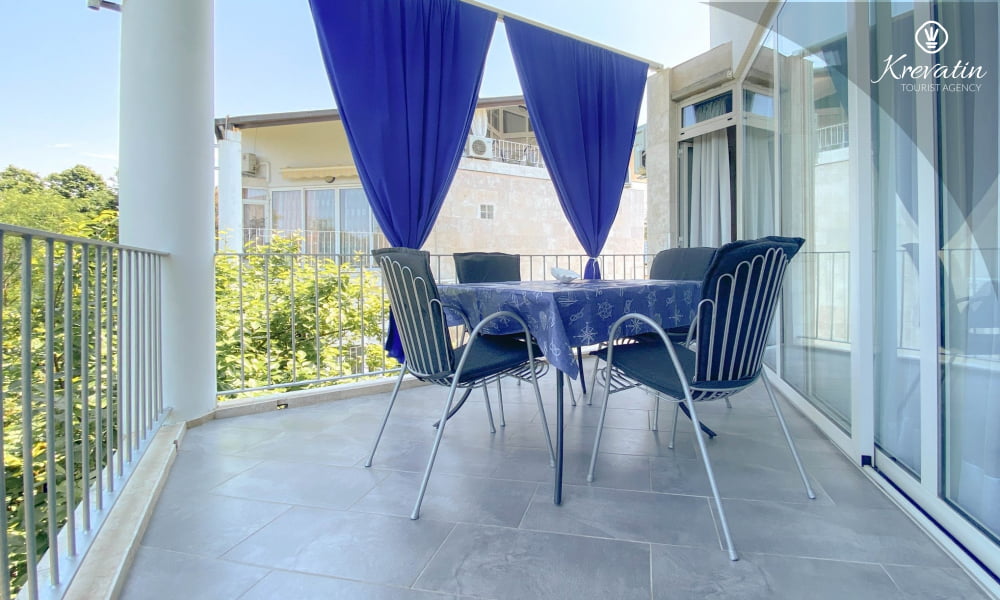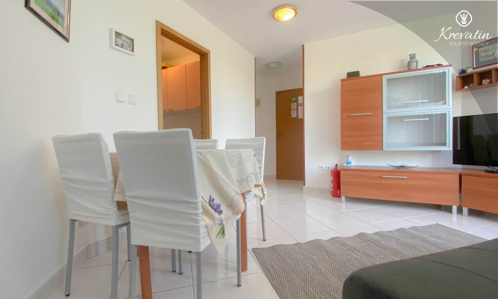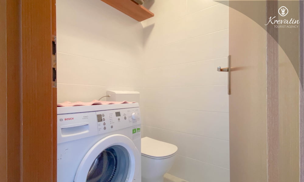 Si trova al secondo piano ed è composto da un soggiorno, una cucina con zona pranzo, due camere da letto, un bagno con doccia e un WC separato con lavatrice. La cucina è completamente attrezzata con servizi di base e potrete gustare il vostro caffè mattutino o socializzare la sera sul grazioso balcone.