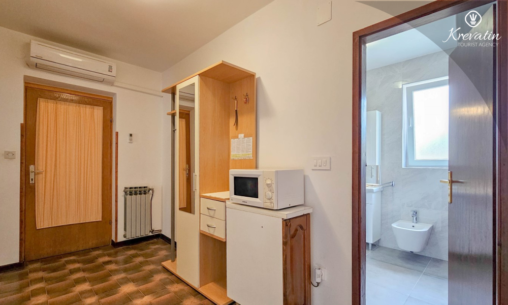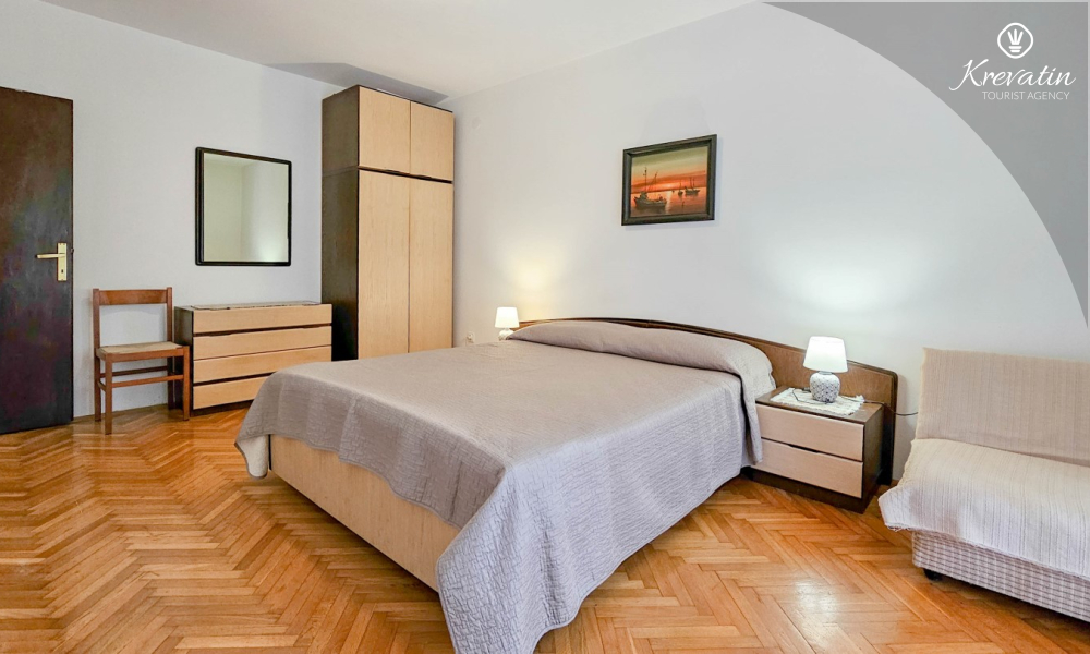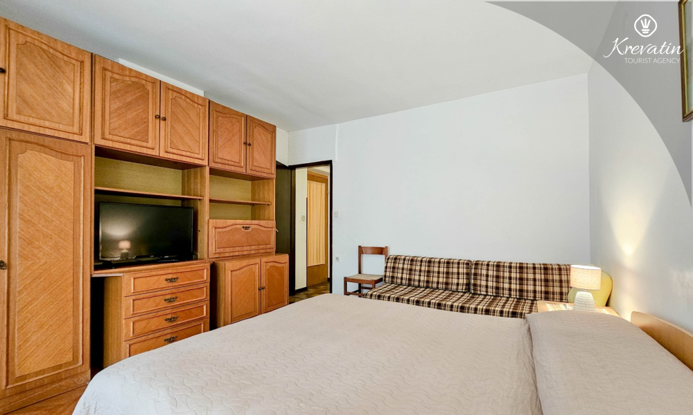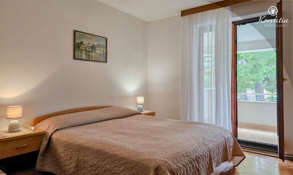 Questo appartamento per 4 persone, situato al primo piano, è composto da due camere da letto e una cucina con sala da pranzo. La cucina è attrezzata con piano cottura elettrico, forno, frigorifero, forno a microonde e macchina per il caffè. C'è anche un bagno con la vasca e un balcone con mobili. SAT-TV, aria condizionata, WLAN, lenzuola e asciugamani sono inclusi nel prezzo. Animali domestici non sono ammessi.