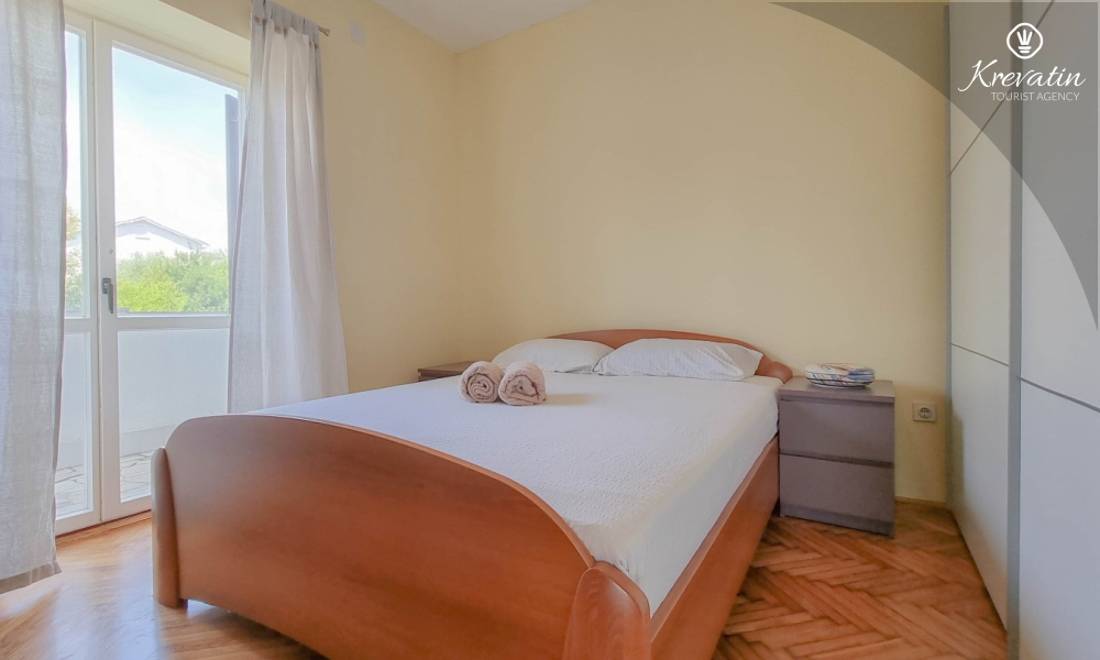 È composto da due camere da letto con letti matrimoniali, un soggiorno e una cucina attrezzata con tutto il necessario per preparare pasti fatti in casa. Dispone inoltre di un bagno con doccia e WC e di un'ampia terrazza con mobili da giardino, ideale per un caffè mattutino o per socializzare la sera.